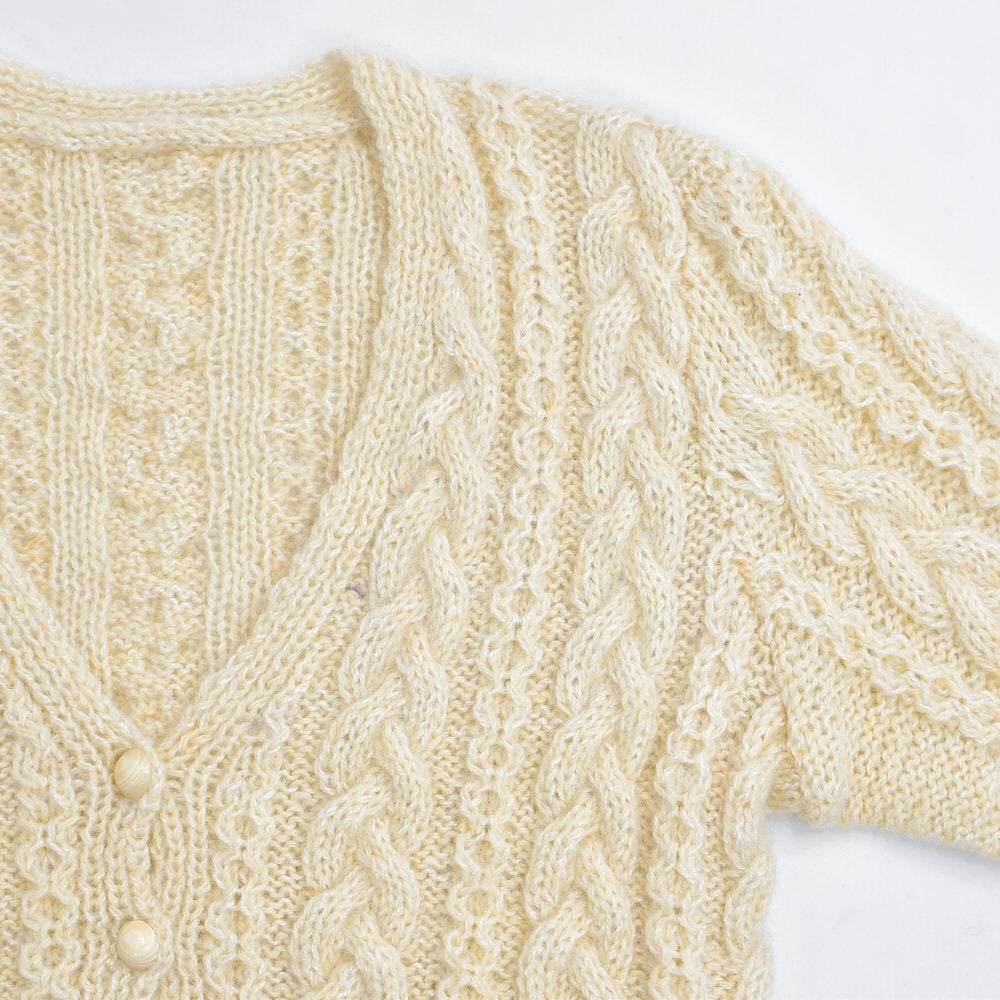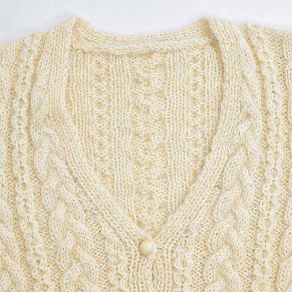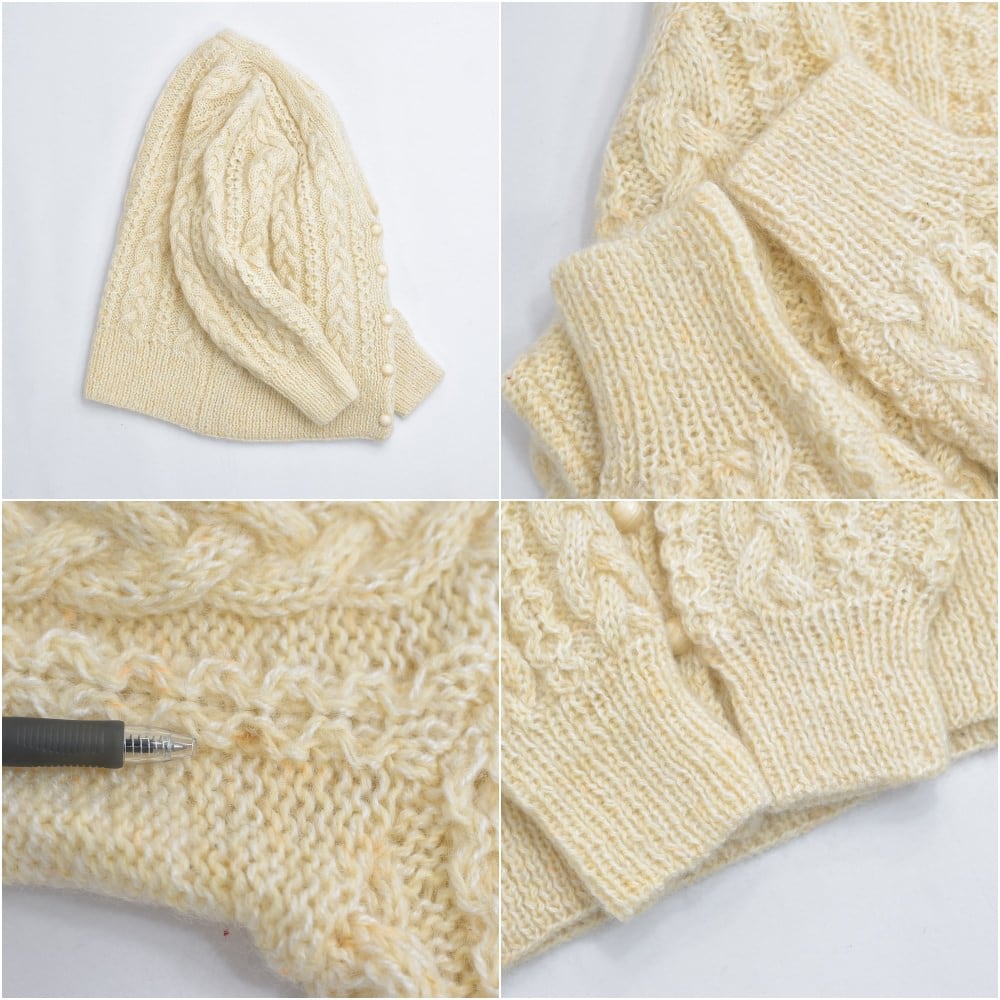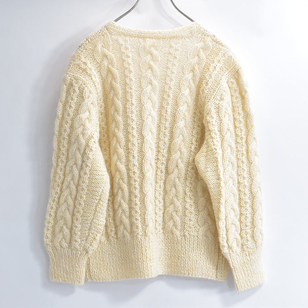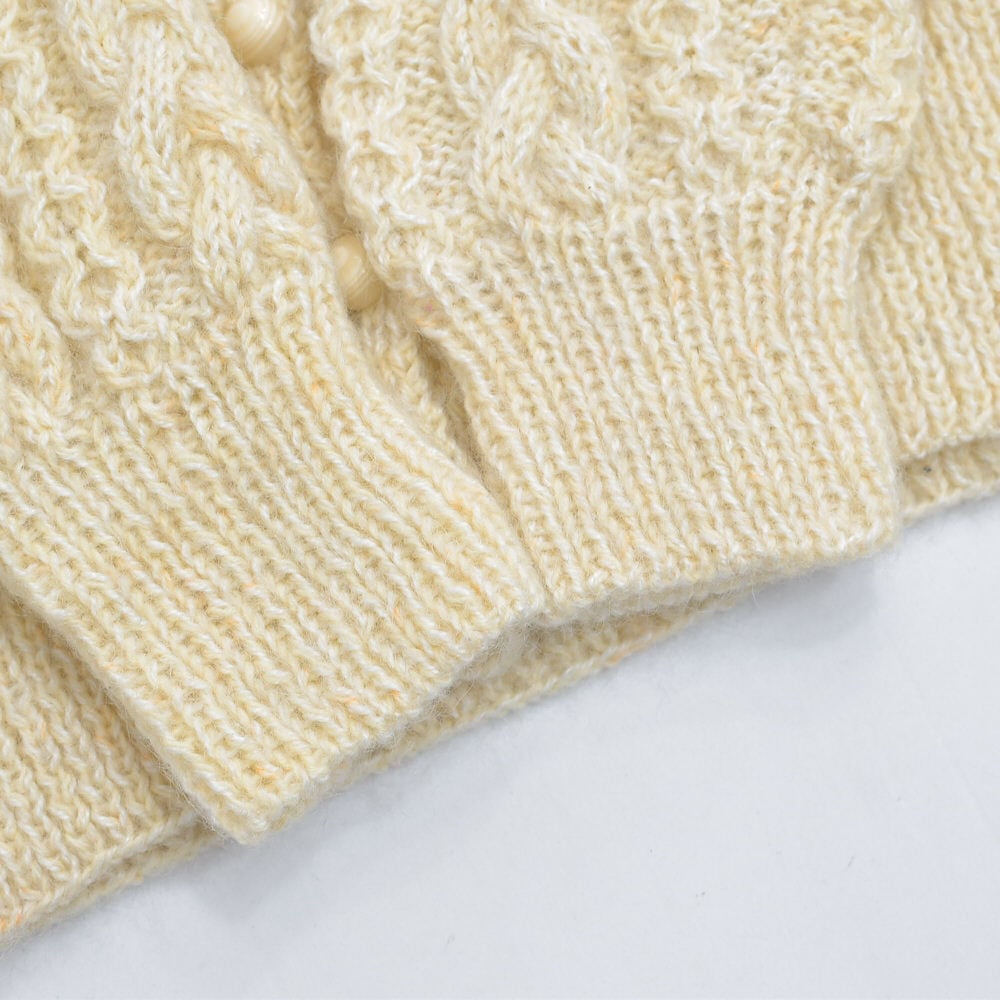 Hand Made フィッシャーマン ケーブル編み アラン模様 ネップ ニット カーディガン セーター ミックスカラー ヴィンテージ ビンテージ 古着 レディースM相当