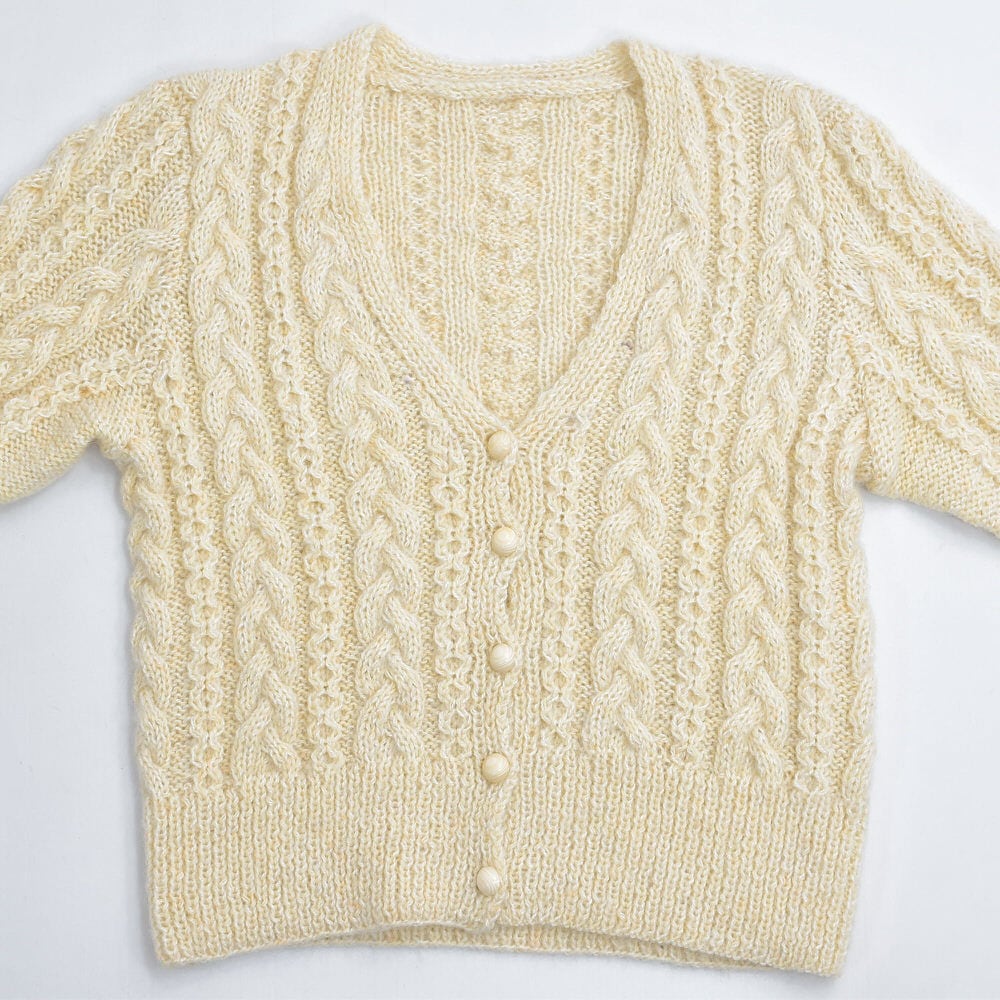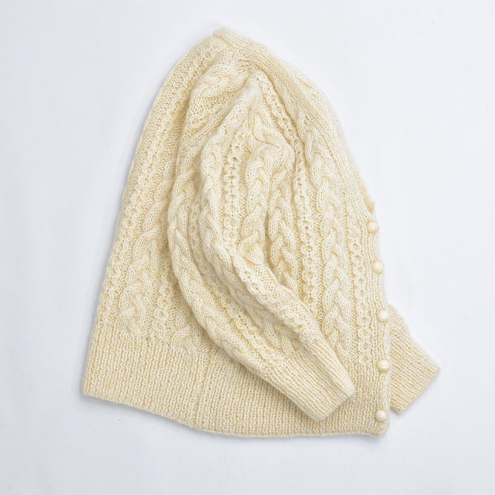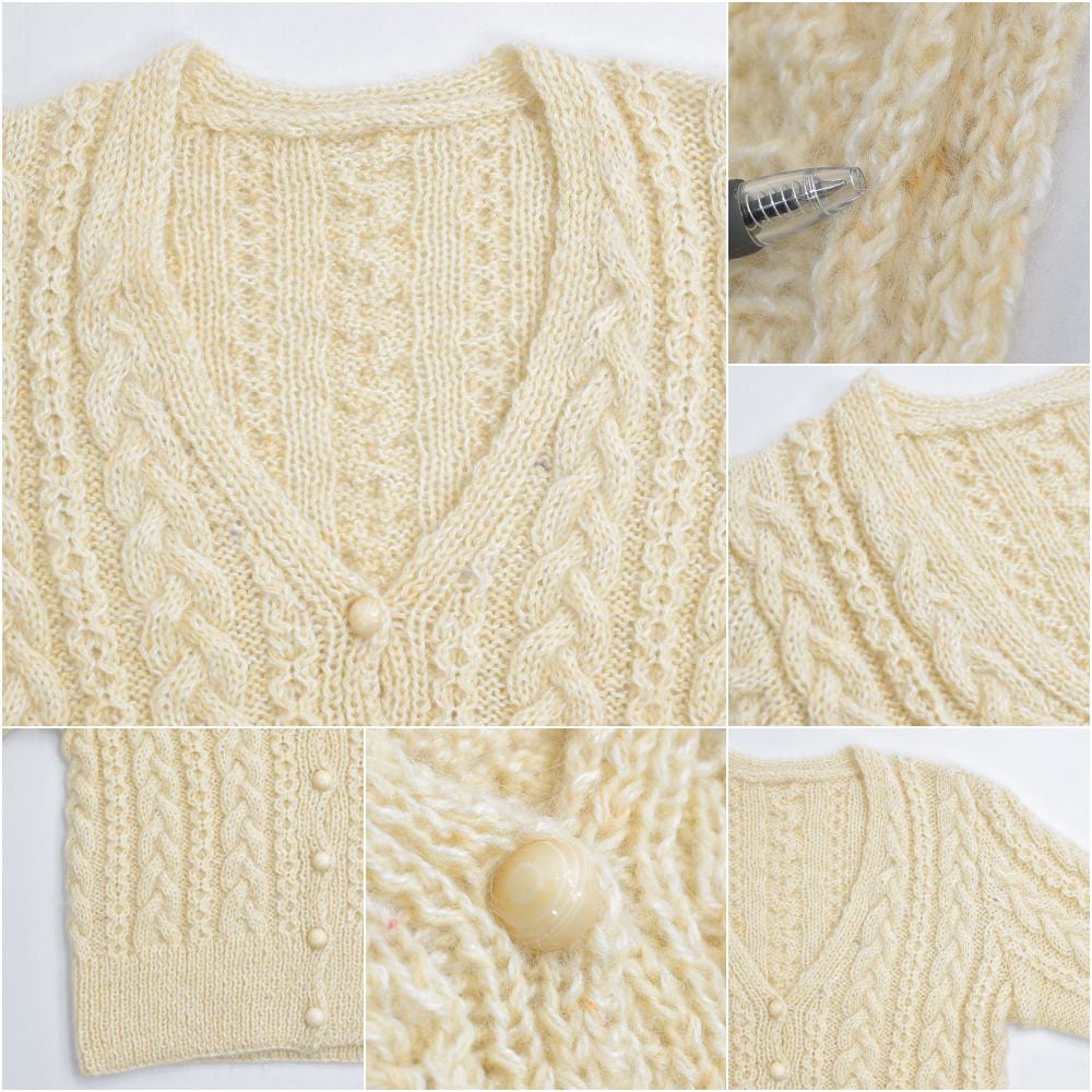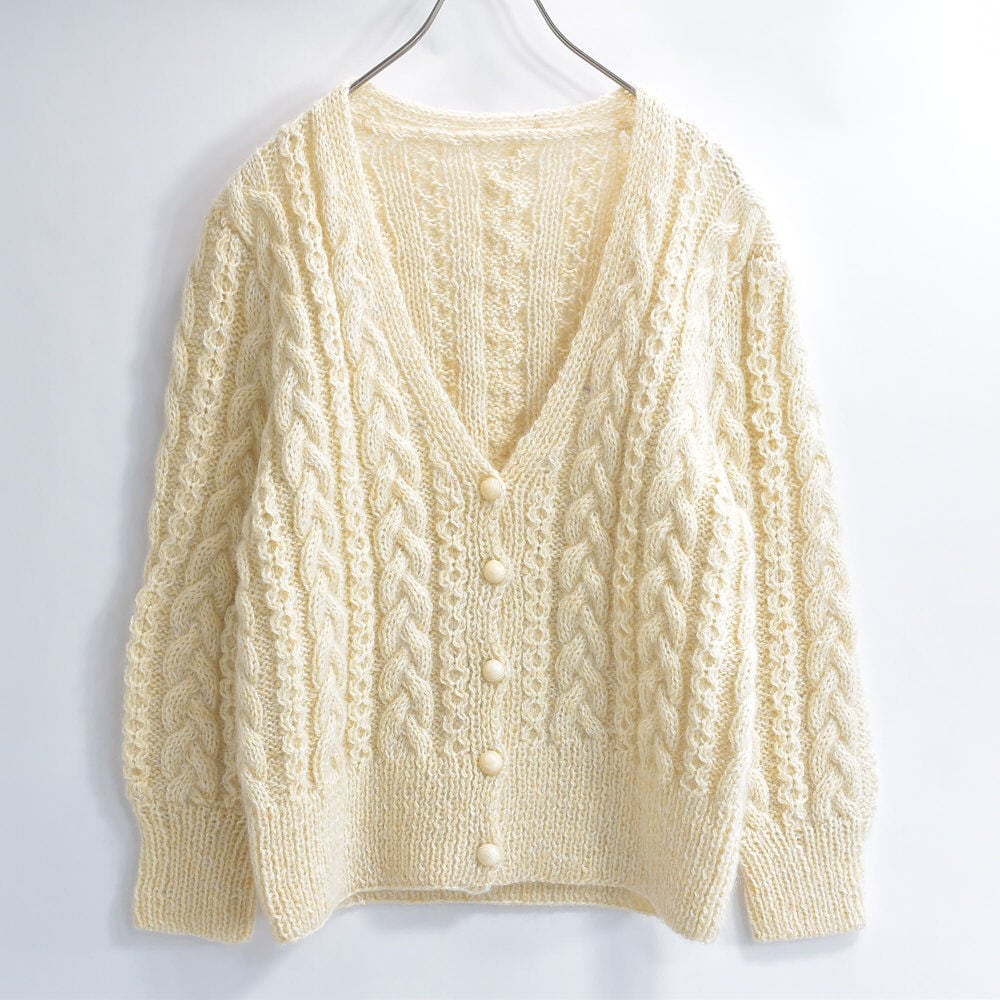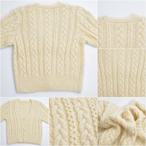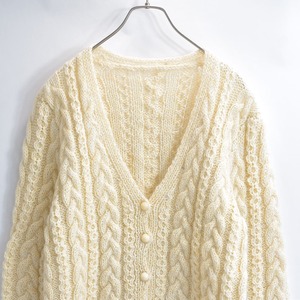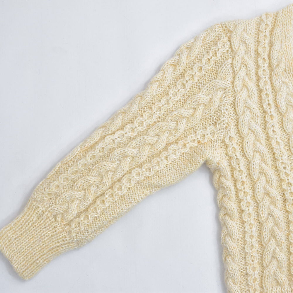 Hand Made フィッシャーマン ケーブル編み アラン模様 ネップ ニット カーディガン セーター ミックスカラー ヴィンテージ ビンテージ 古着 レディースM相当