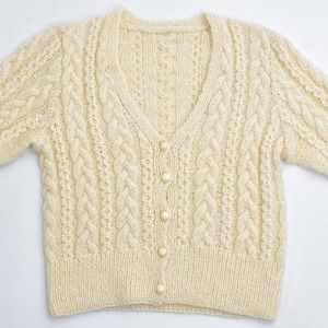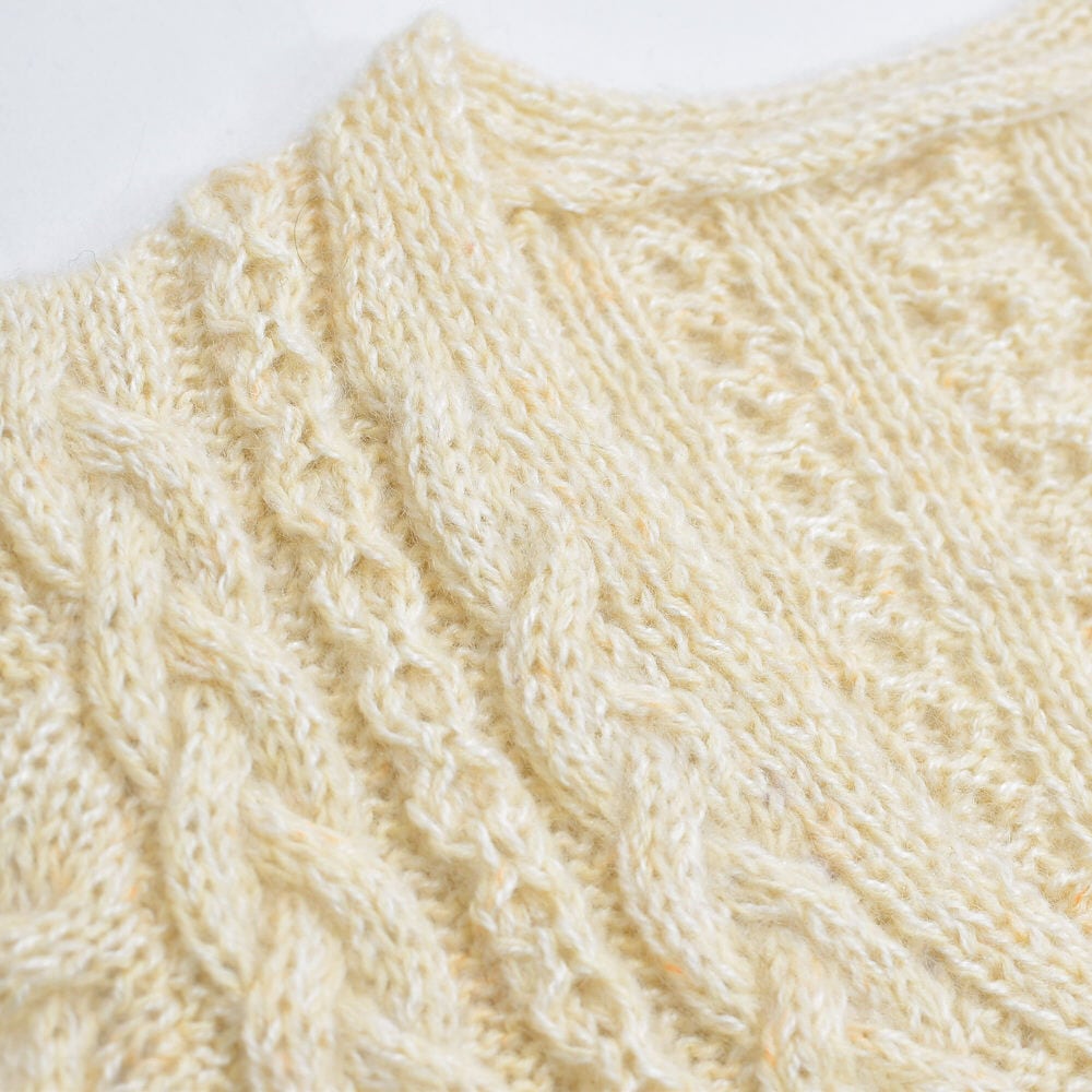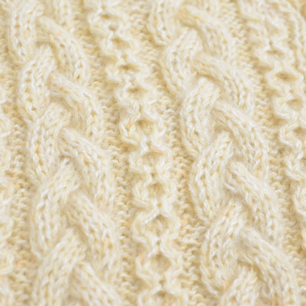 フロントを飾る立体的なケーブル編みは、北欧の伝統的なアランニットを彷彿とさせる贅沢な仕上がり