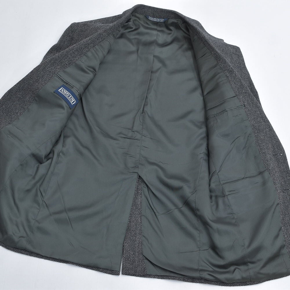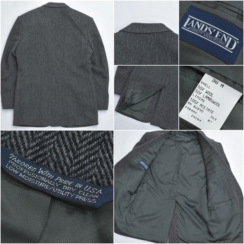 90s USA製 LANDS' END ランズエンド ヘリンボーン ストライプ ウール テーラードジャケット ヴィンテージ ビンテージ アメリカ古着 メンズL相当