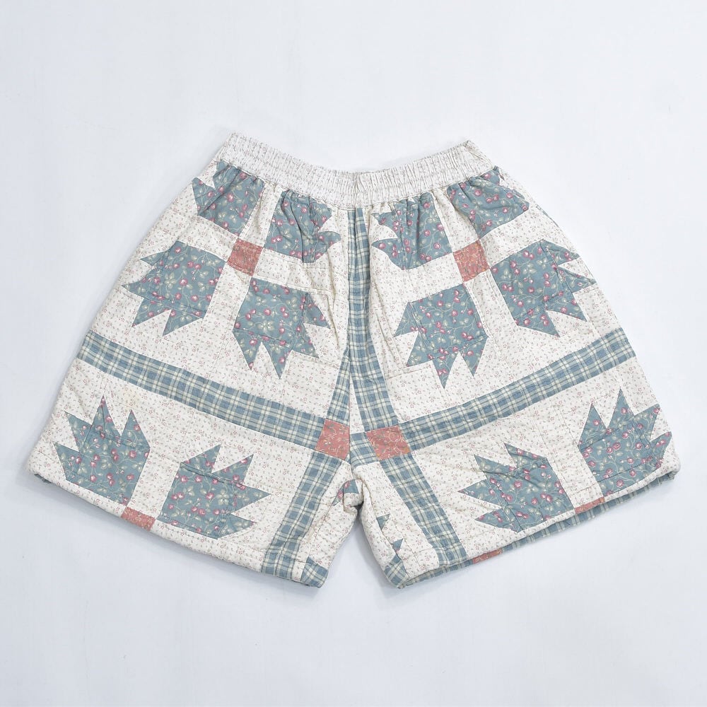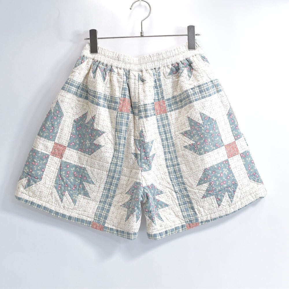 Remake リメイク ハンドメイド パッチワーク キルト デザイン ルーズシルエット ショートパンツ 花柄 チェック 幾何学 再構築 短パン ツギハギ W65〜100cm