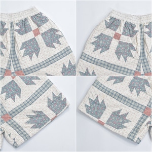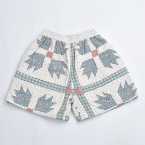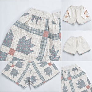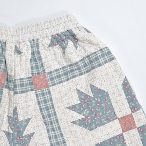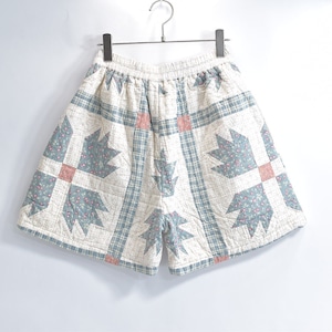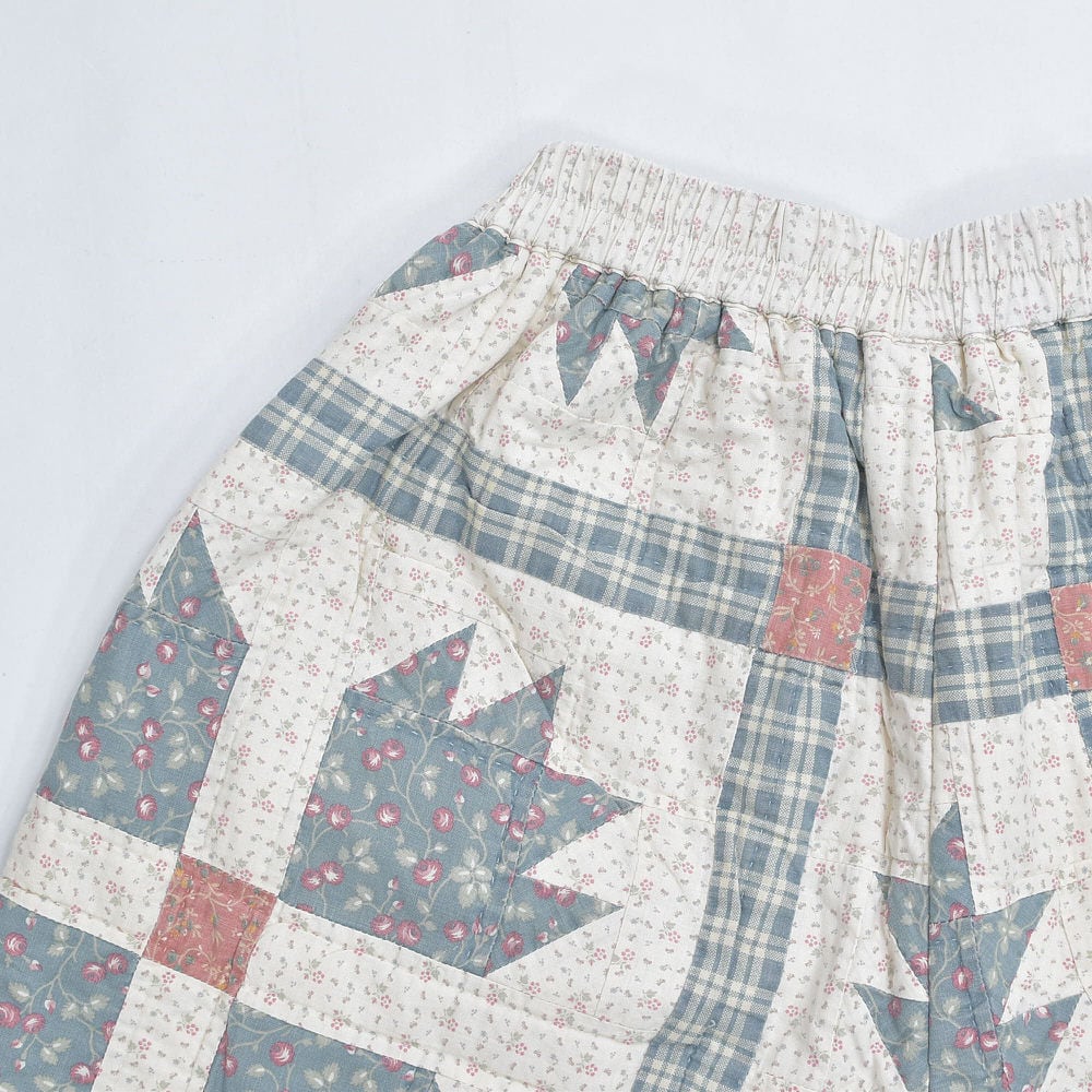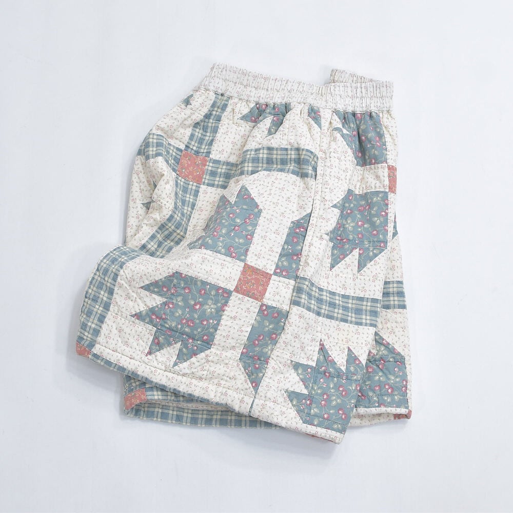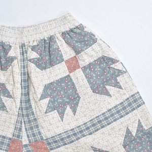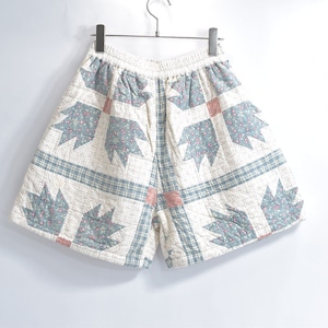Remake リメイク ハンドメイド パッチワーク キルト デザイン ルーズシルエット ショートパンツ 花柄 チェック 幾何学 再構築 短パン ツギハギ W65~100cm