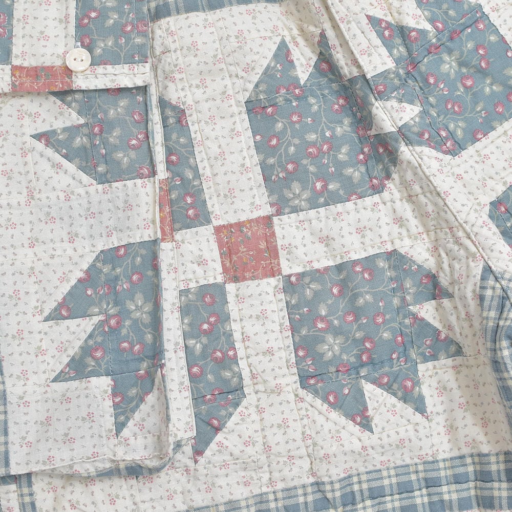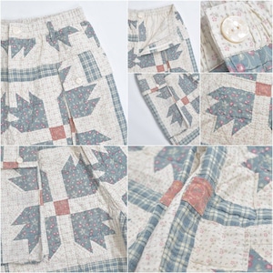 Remake リメイク ハンドメイド デザイン パッチワーク キルト ワイドシルエット カーゴパンツ 再構築 花柄 フラワー チェック ツギハギ コットン W70~100cm