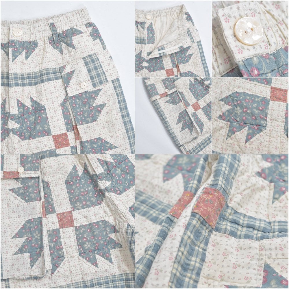 Remake リメイク ハンドメイド デザイン パッチワーク キルト ワイドシルエット カーゴパンツ 再構築 花柄 フラワー チェック ツギハギ コットン W70〜100cm