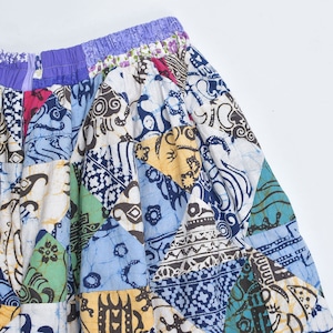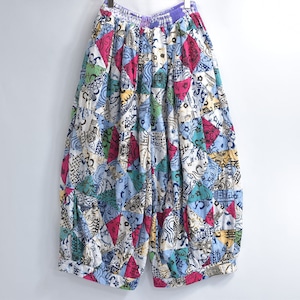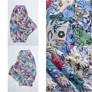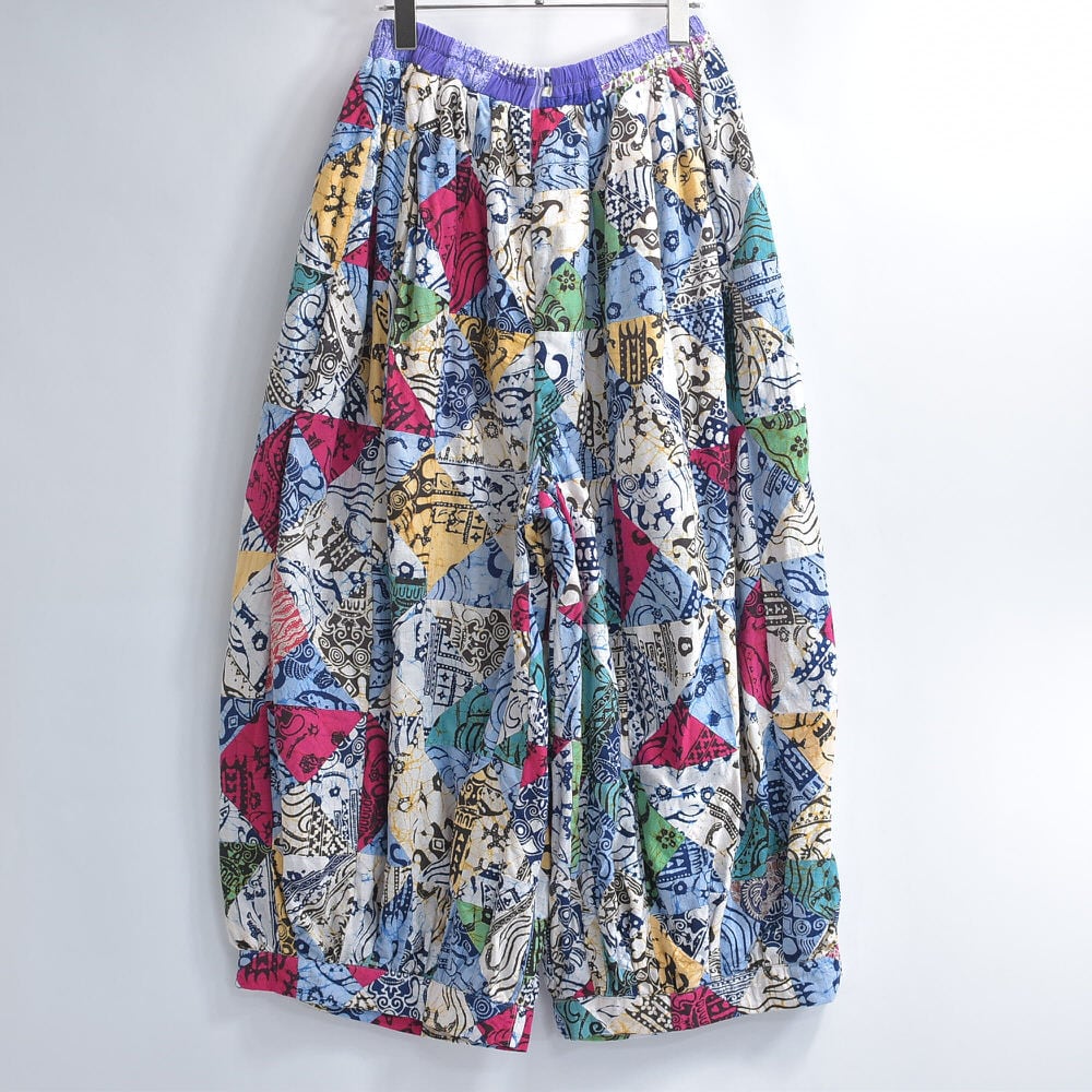 Remake リメイク ハンドメイド バティック柄 デザイン パッチワーク キルトトップ スーパーバルーン シルエット イージーパンツ 再構築 ツギハギ 裏地付き ユニセックスデザイン W65〜112cm
