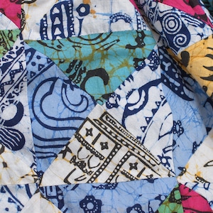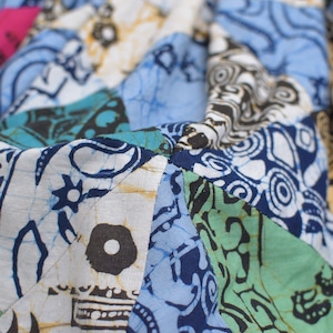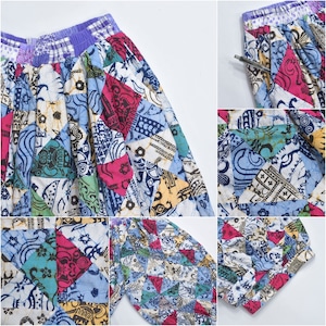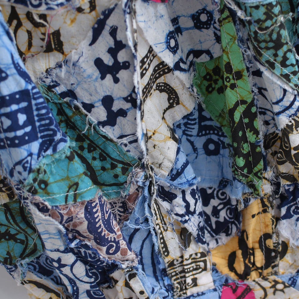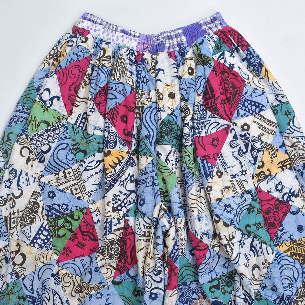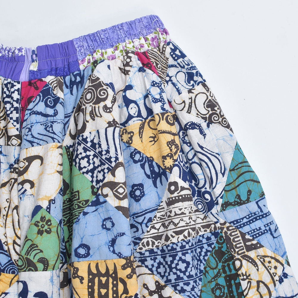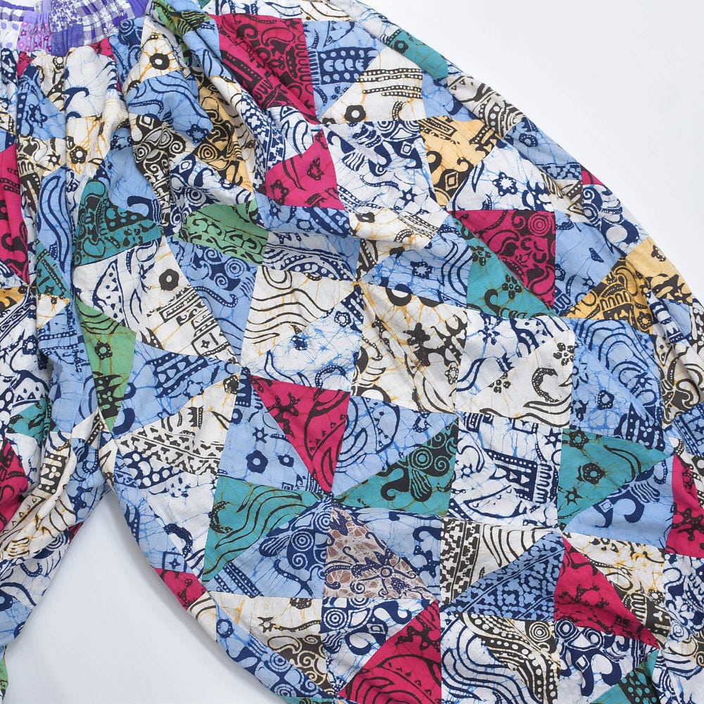 Remake リメイク ハンドメイド バティック柄 デザイン パッチワーク キルトトップ スーパーバルーン シルエット イージーパンツ 再構築 ツギハギ 裏地付き ユニセックスデザイン W65~112cm