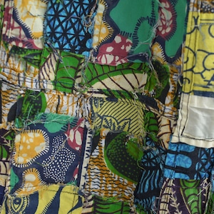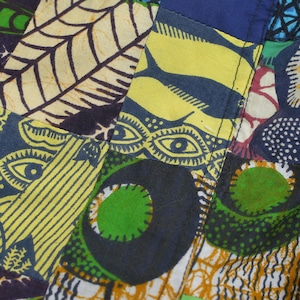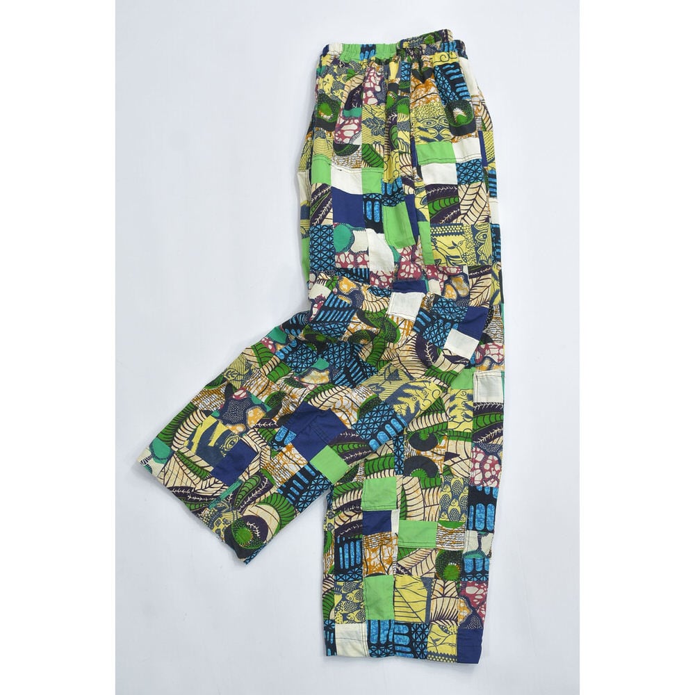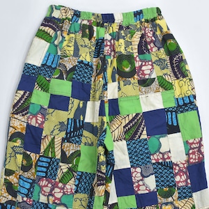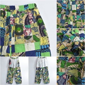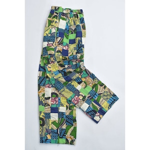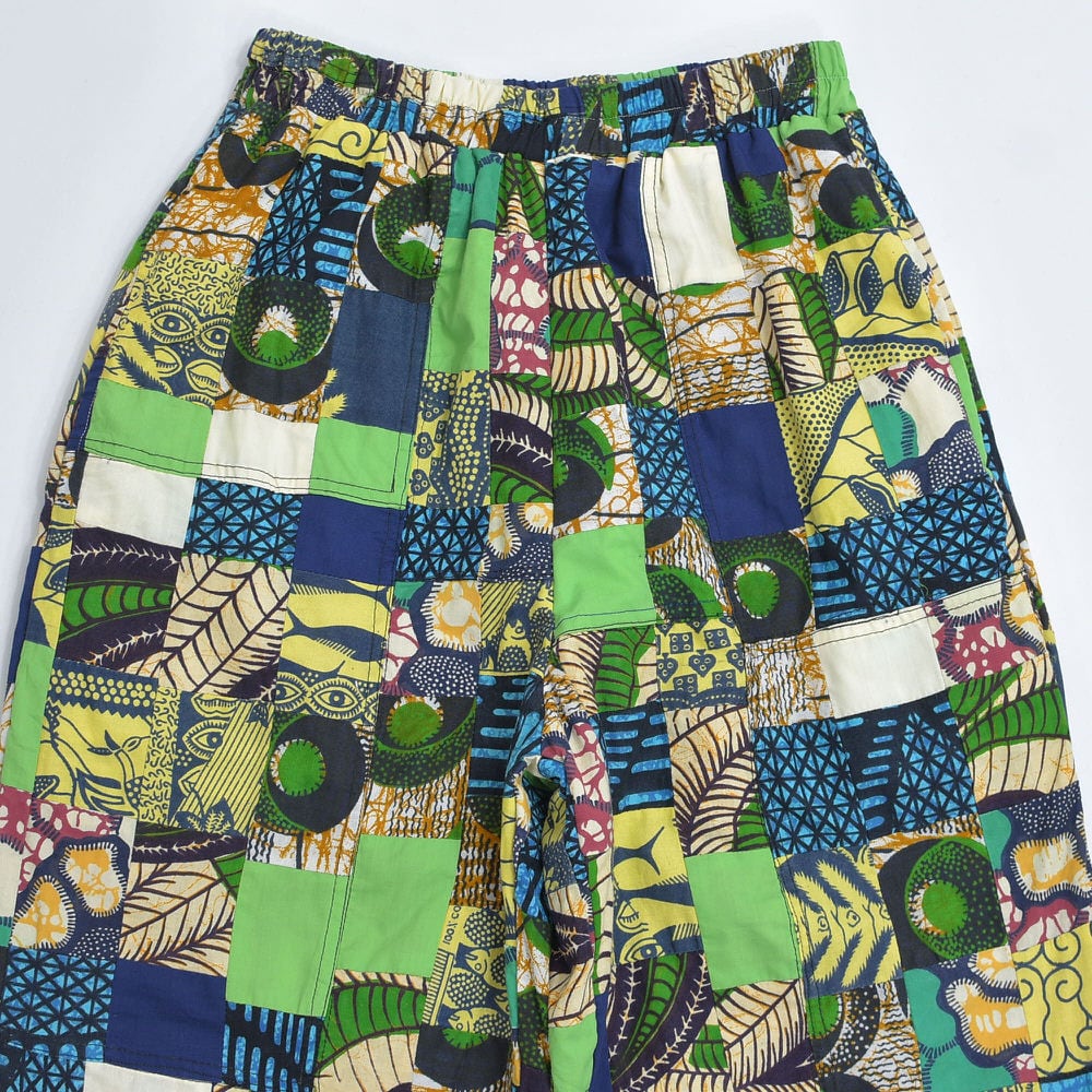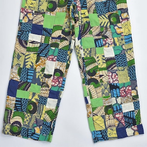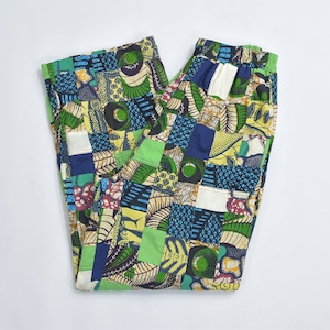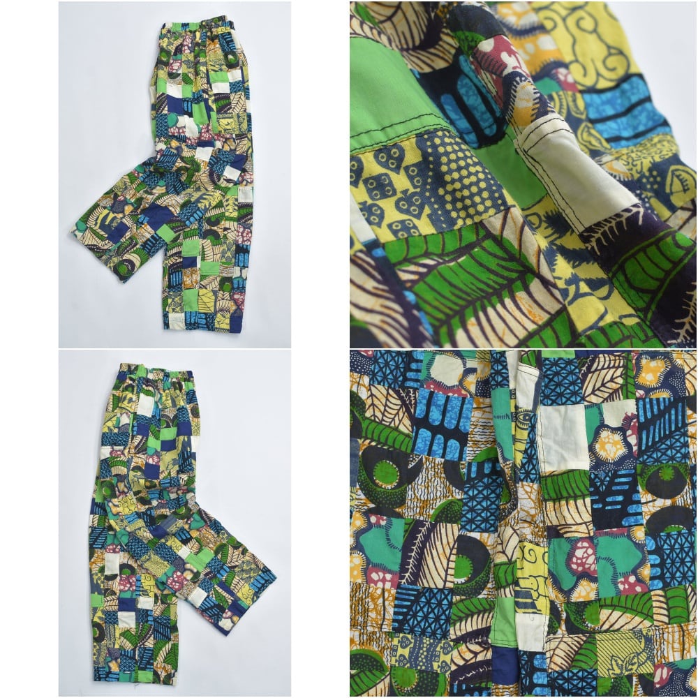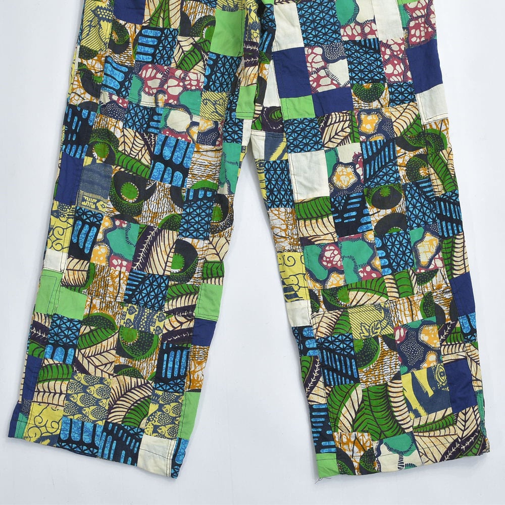 Remake リメイク ハンドメイド バティック柄 デザイン パッチワーク キルトトップ ルーズシルエット イージーパンツ 再構築 ツギハギ 裏地付き ユニセックスデザイン W65~100cm