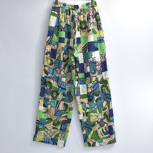 Remake リメイク ハンドメイド バティック柄 デザイン パッチワーク キルトトップ ルーズシルエット イージーパンツ 再構築 ツギハギ 裏地付き ユニセックスデザイン W65〜100cm