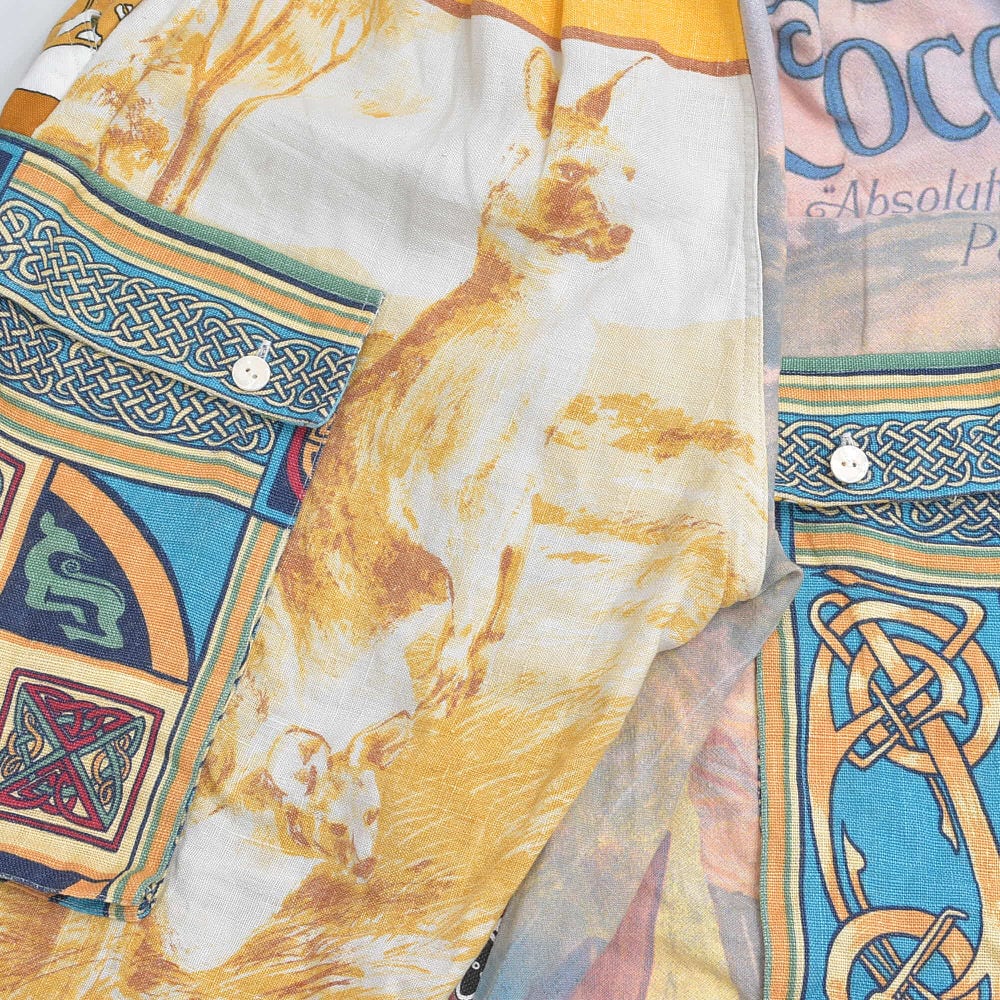 Remakeリメイク テキスタイル パッチワーク デザイン 再構築 ルーズシルエット ワイド カーゴパンツ バギー ツギハギ 古着 裏地付き ユニセックスデザイン W68~88cm