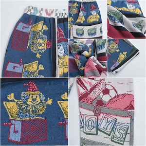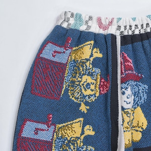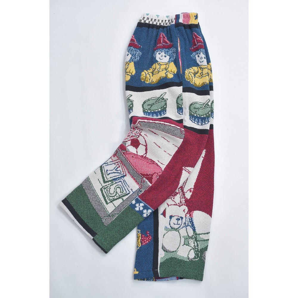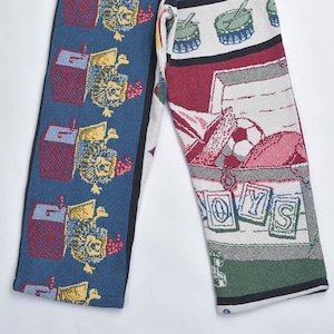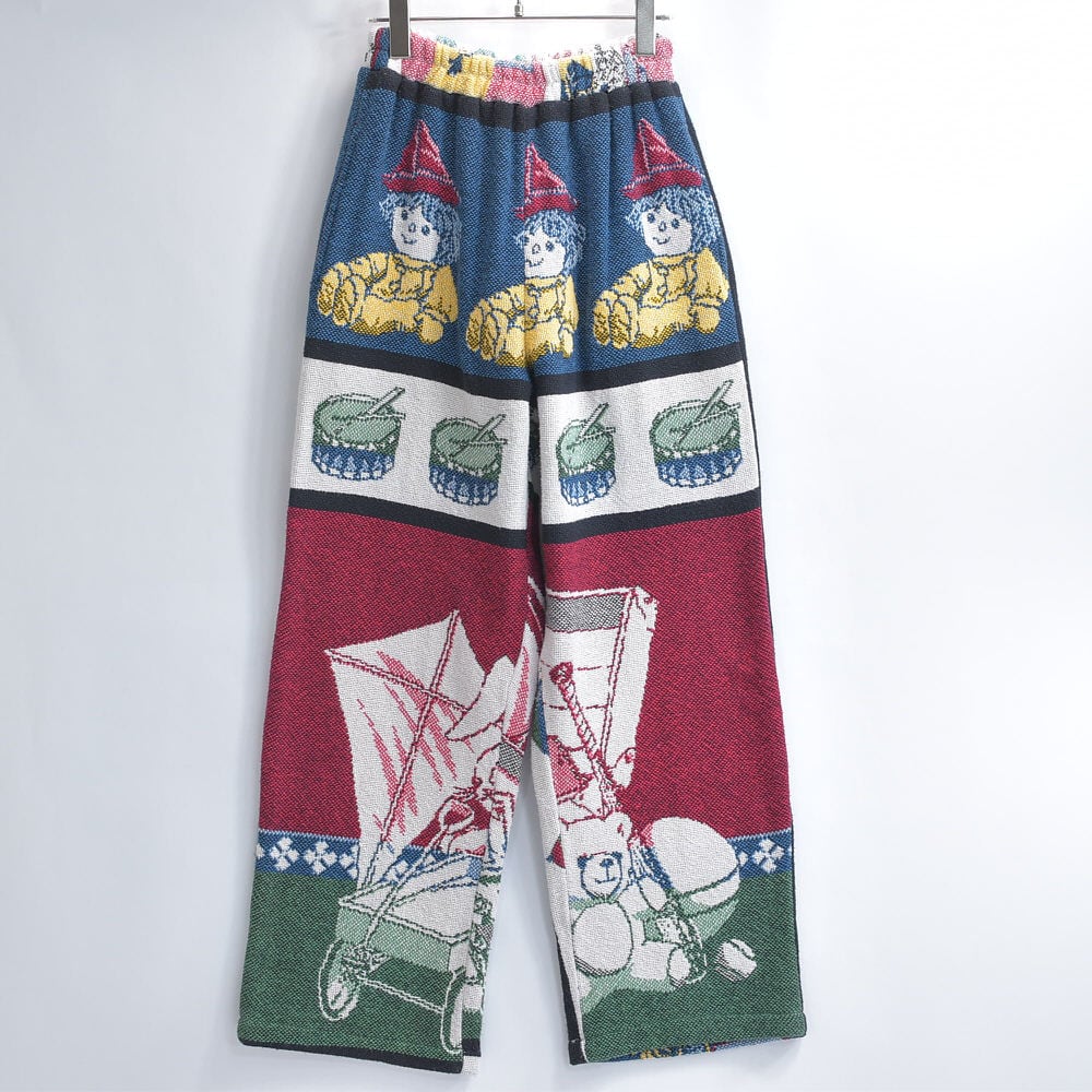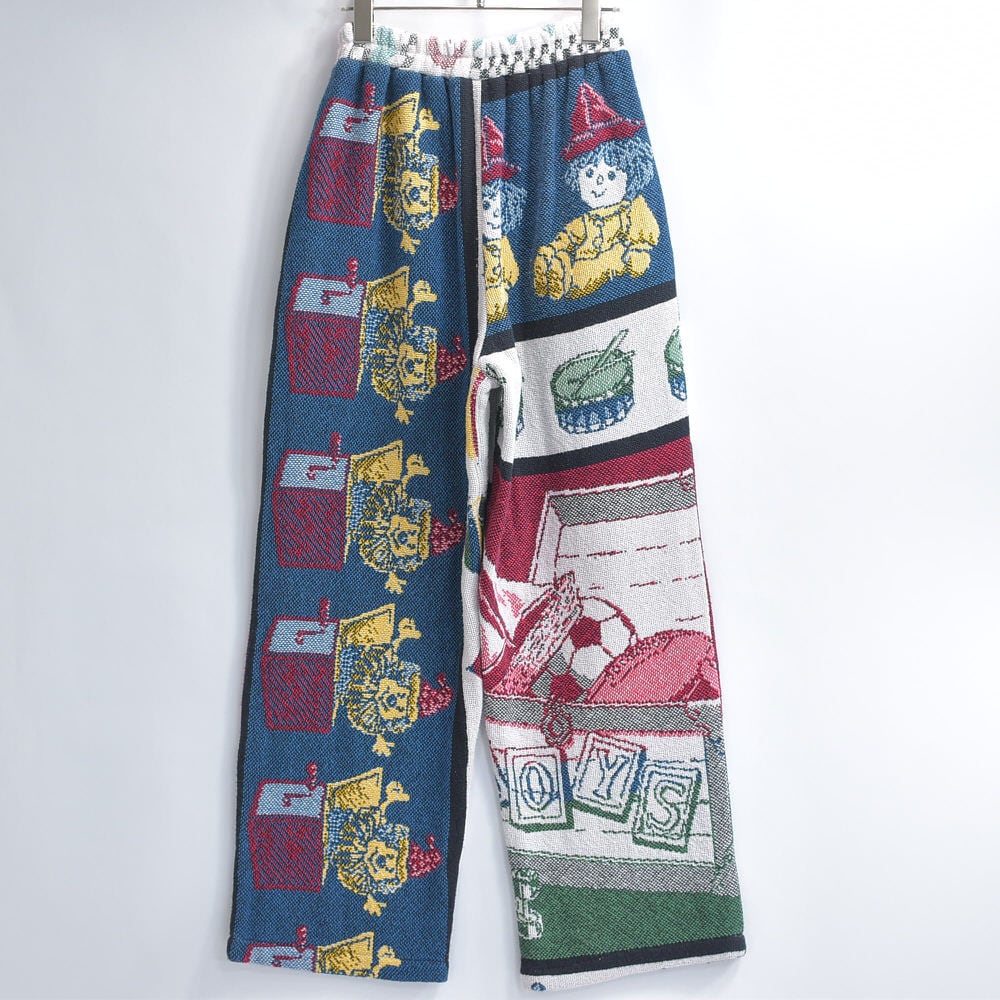 Remake リメイク ルーズシルエット ジャガード 総柄 デザイン ラグパンツ おもちゃ モチーフ ブランケット タペストリー パッチワーク イージーパンツ 再構築 ゴブラン ユニセックスサイズ W62~100cm