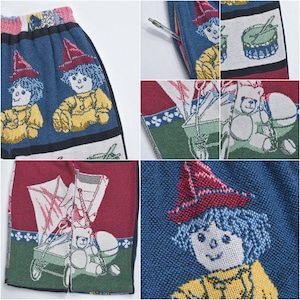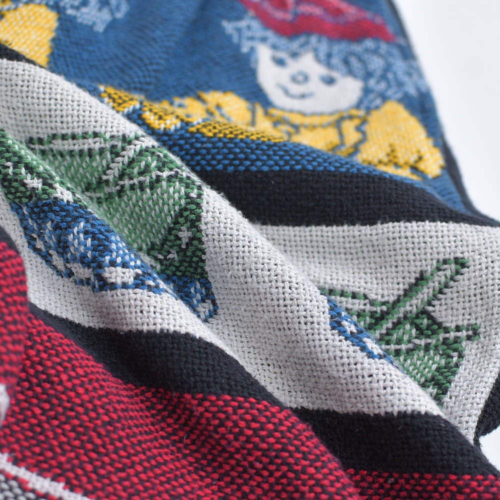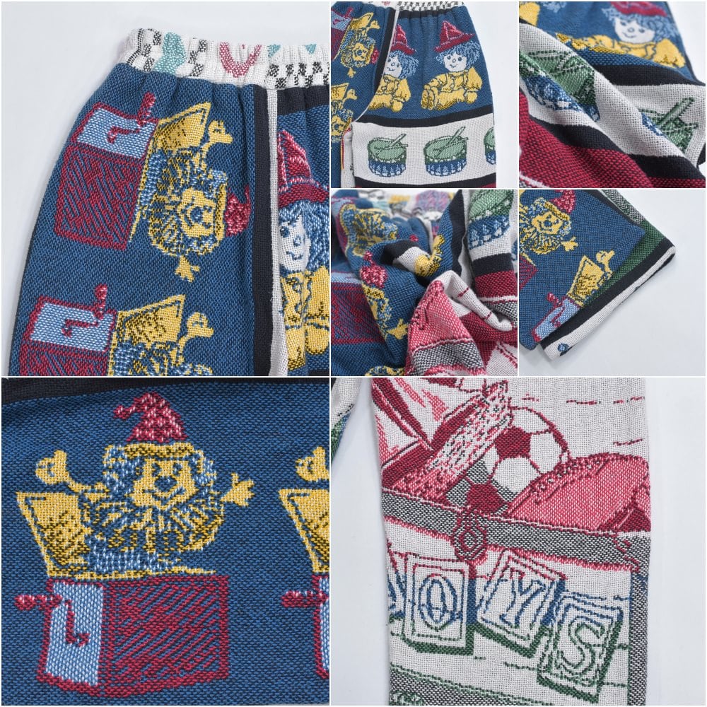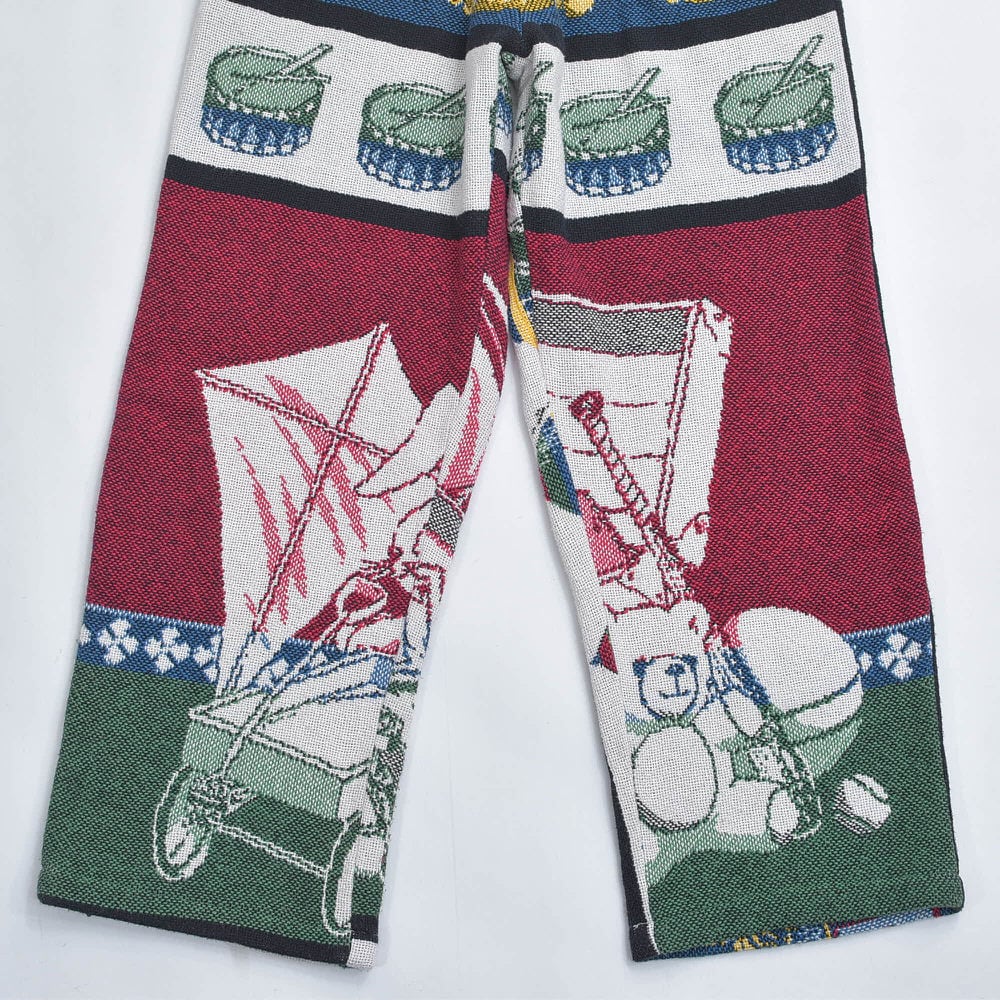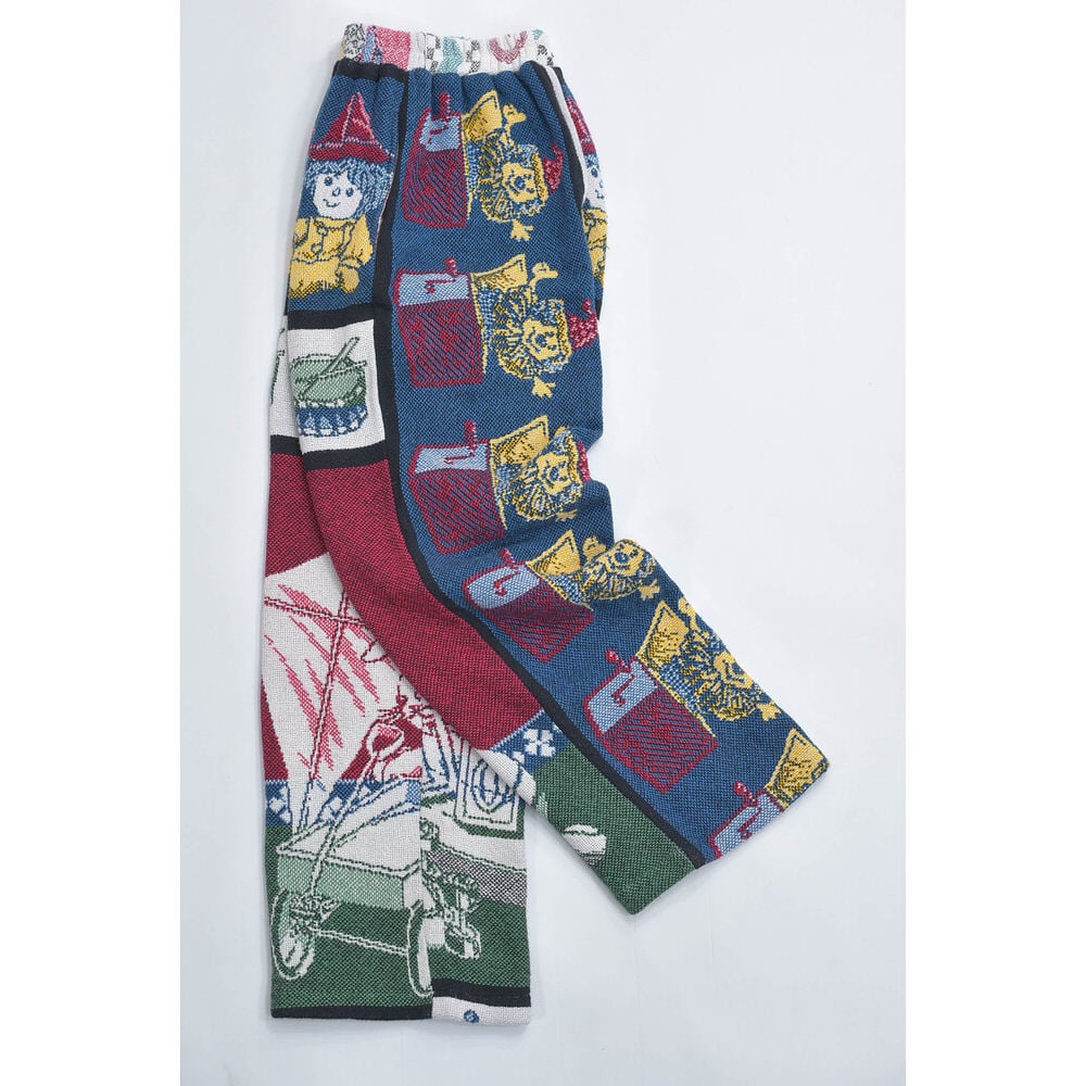 Remake リメイク ルーズシルエット ジャガード 総柄 デザイン ラグパンツ おもちゃ モチーフ ブランケット タペストリー パッチワーク イージーパンツ 再構築 ゴブラン ユニセックスサイズ W62〜100cm