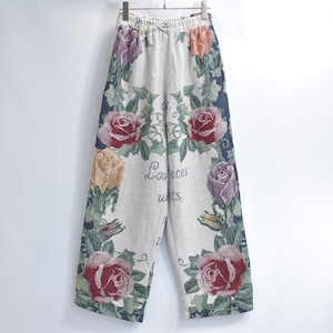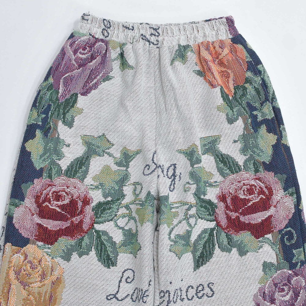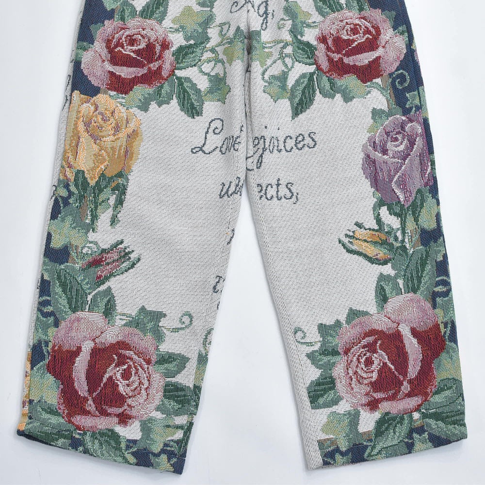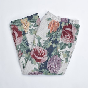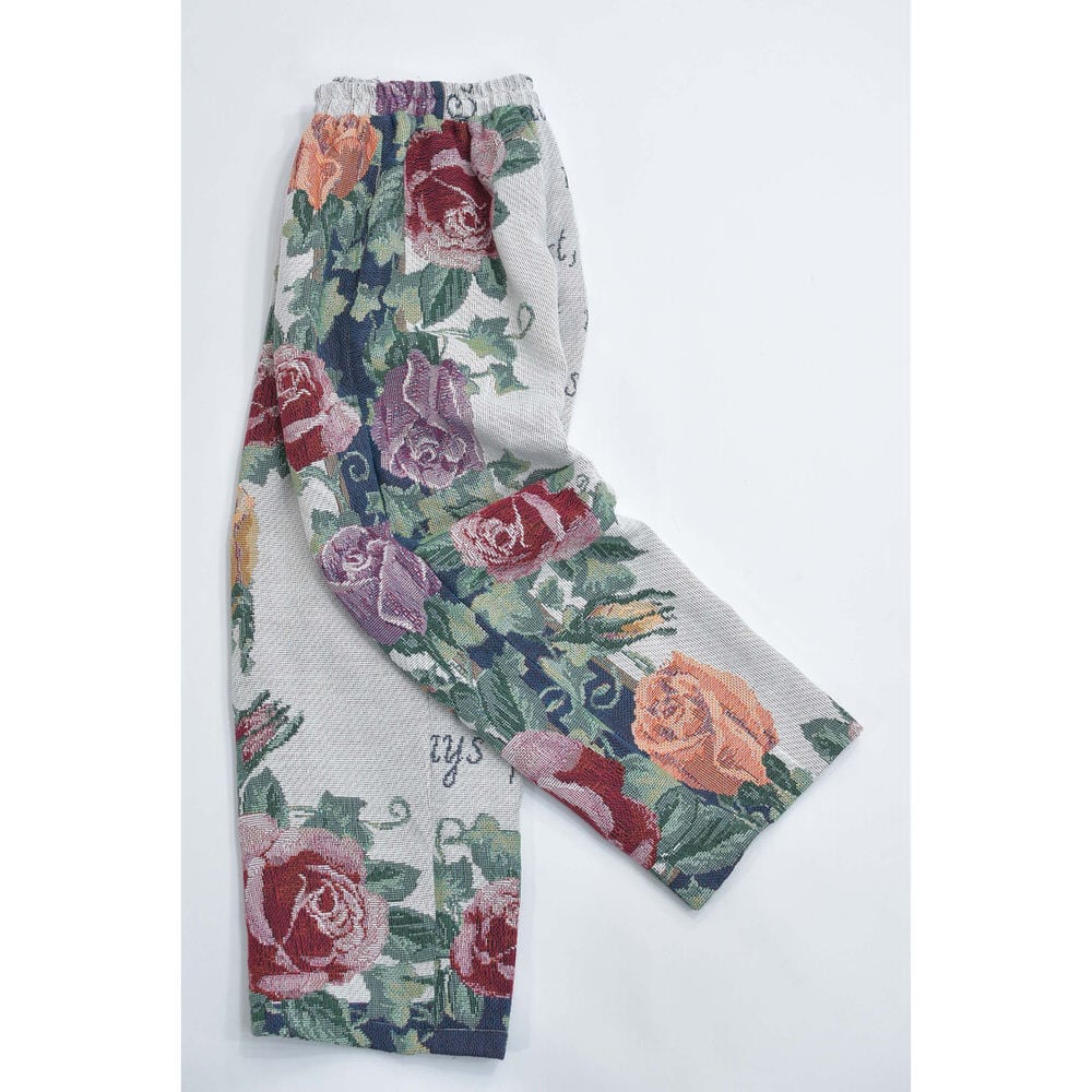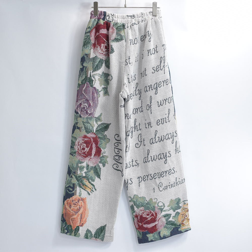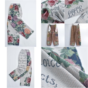 Remake リメイク ルーズシルエット ジャガード 総柄 デザイン ラグパンツ バラ 花柄 フローラル ブランケット タペストリー パッチワーク イージーパンツ 再構築 ゴブラン ユニセックスサイズ W62~100cm