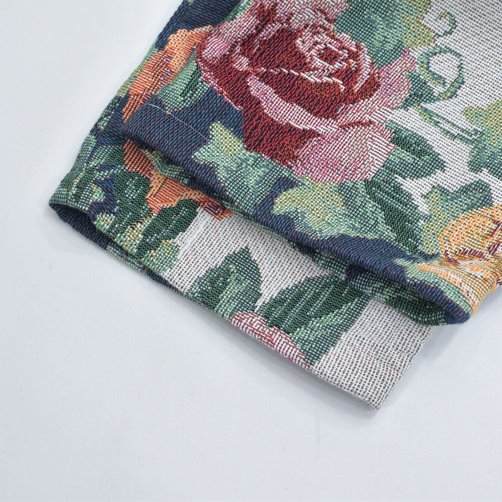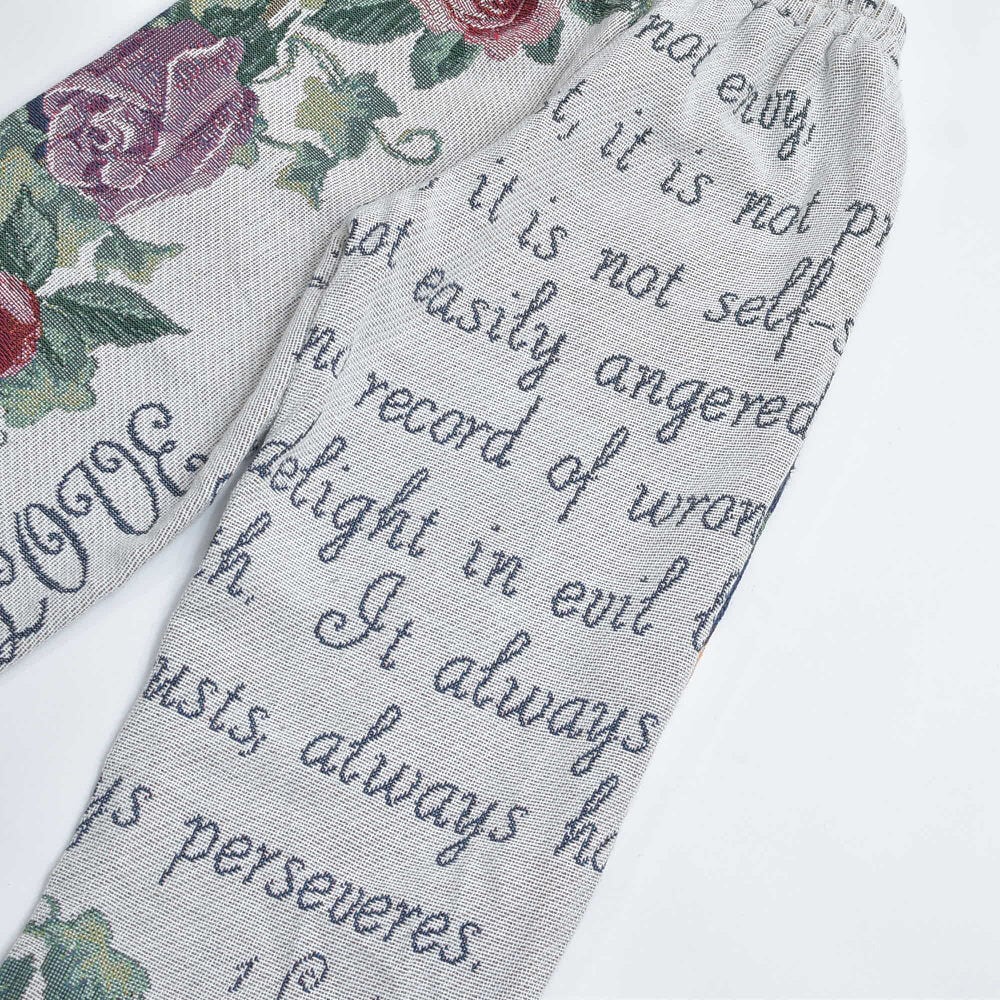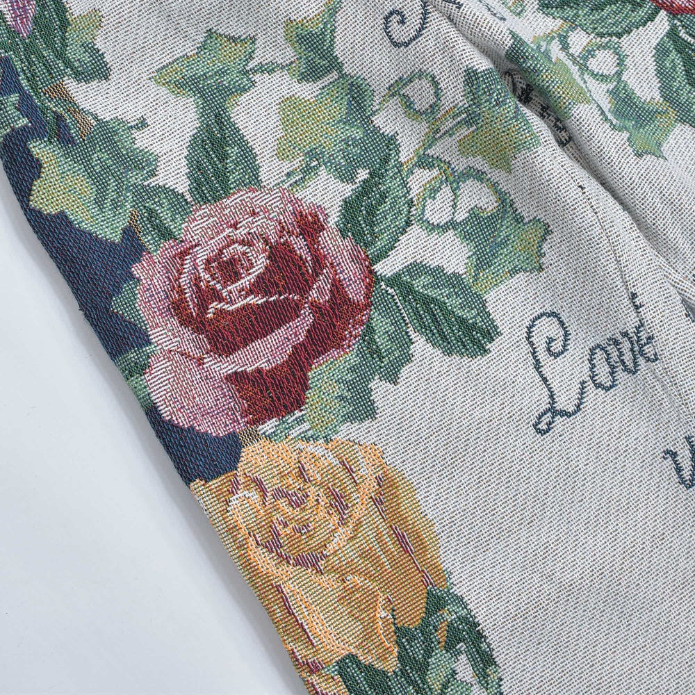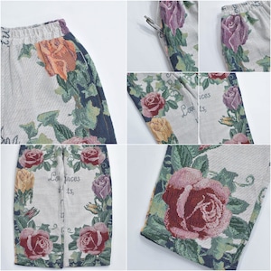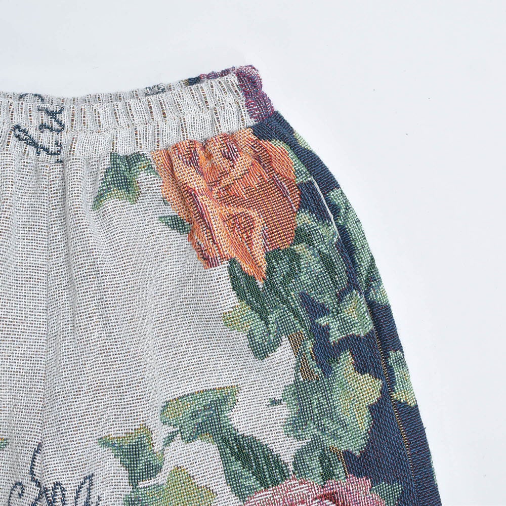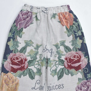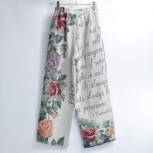 Remake リメイク ルーズシルエット ジャガード 総柄 デザイン ラグパンツ バラ 花柄 フローラル ブランケット タペストリー パッチワーク イージーパンツ 再構築 ゴブラン ユニセックスサイズ W62~100cm