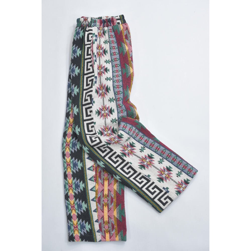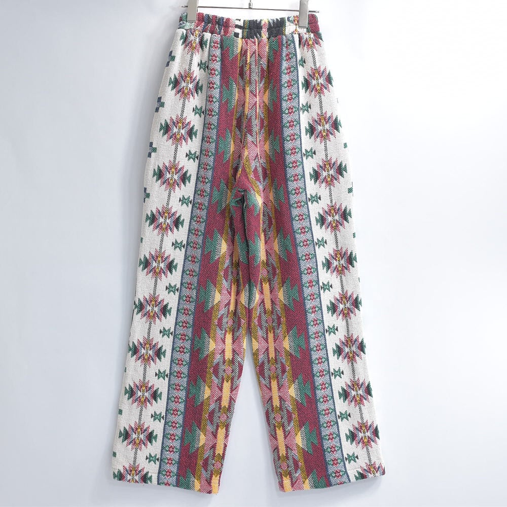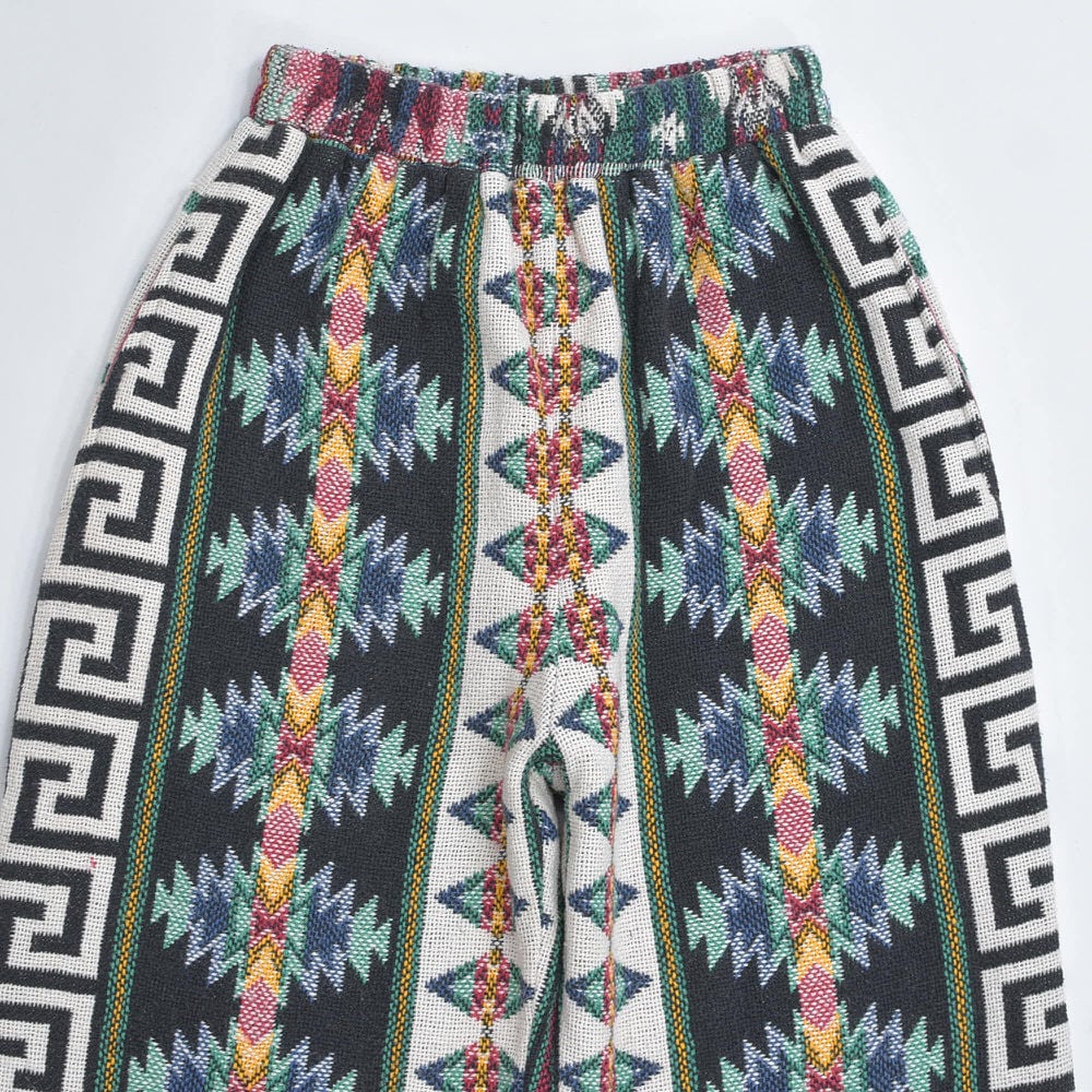 Remake リメイク ルーズシルエット ジャガード 総柄 デザイン ラグパンツ オルテガ ネイティブ柄 ブランケット タペストリー パッチワーク イージーパンツ 再構築 ゴブラン ユニセックスサイズ W60~96cm
