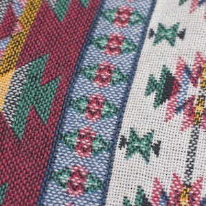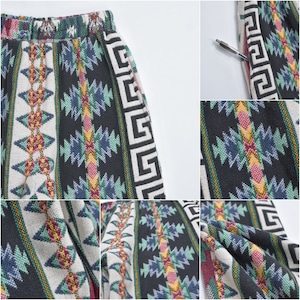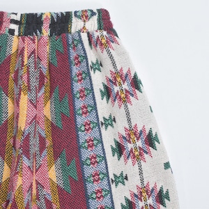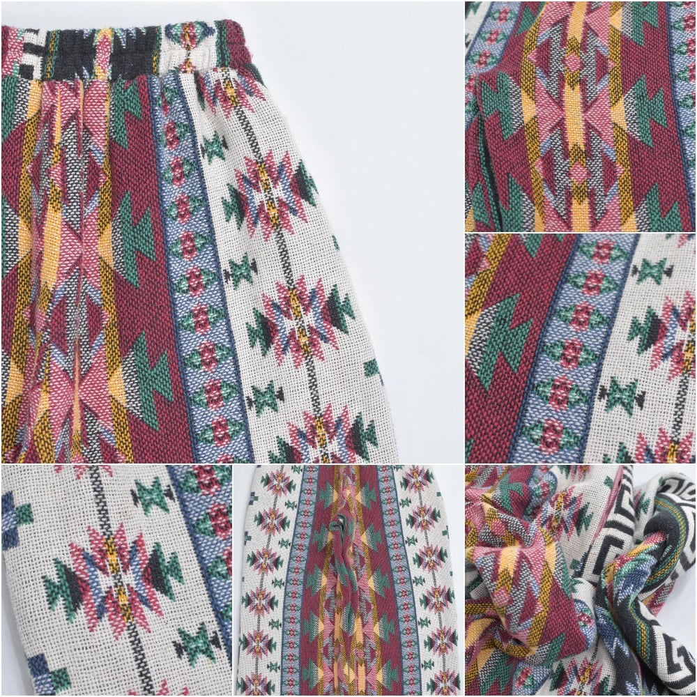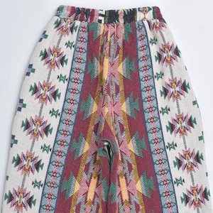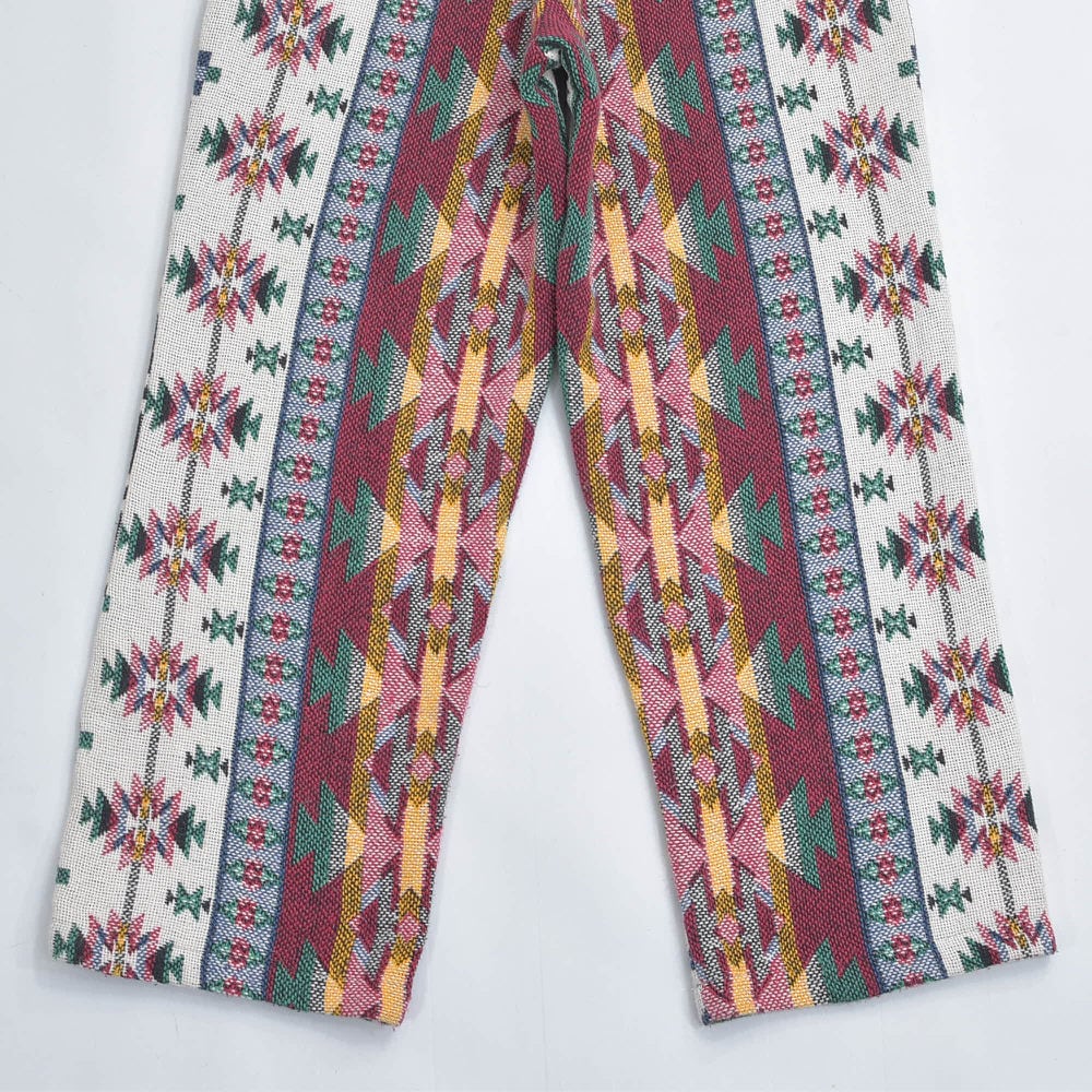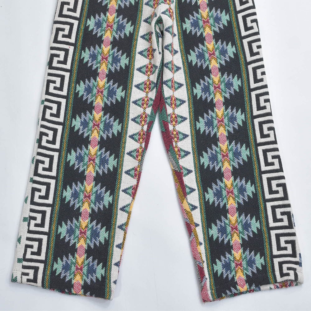 Remake リメイク ルーズシルエット ジャガード 総柄 デザイン ラグパンツ オルテガ ネイティブ柄 ブランケット タペストリー パッチワーク イージーパンツ 再構築 ゴブラン ユニセックスサイズ W60~96cm
