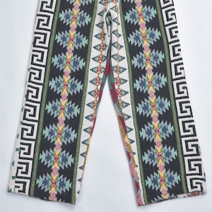 Remake リメイク ルーズシルエット ジャガード 総柄 デザイン ラグパンツ オルテガ ネイティブ柄 ブランケット タペストリー パッチワーク イージーパンツ 再構築 ゴブラン ユニセックスサイズ W60〜96cm