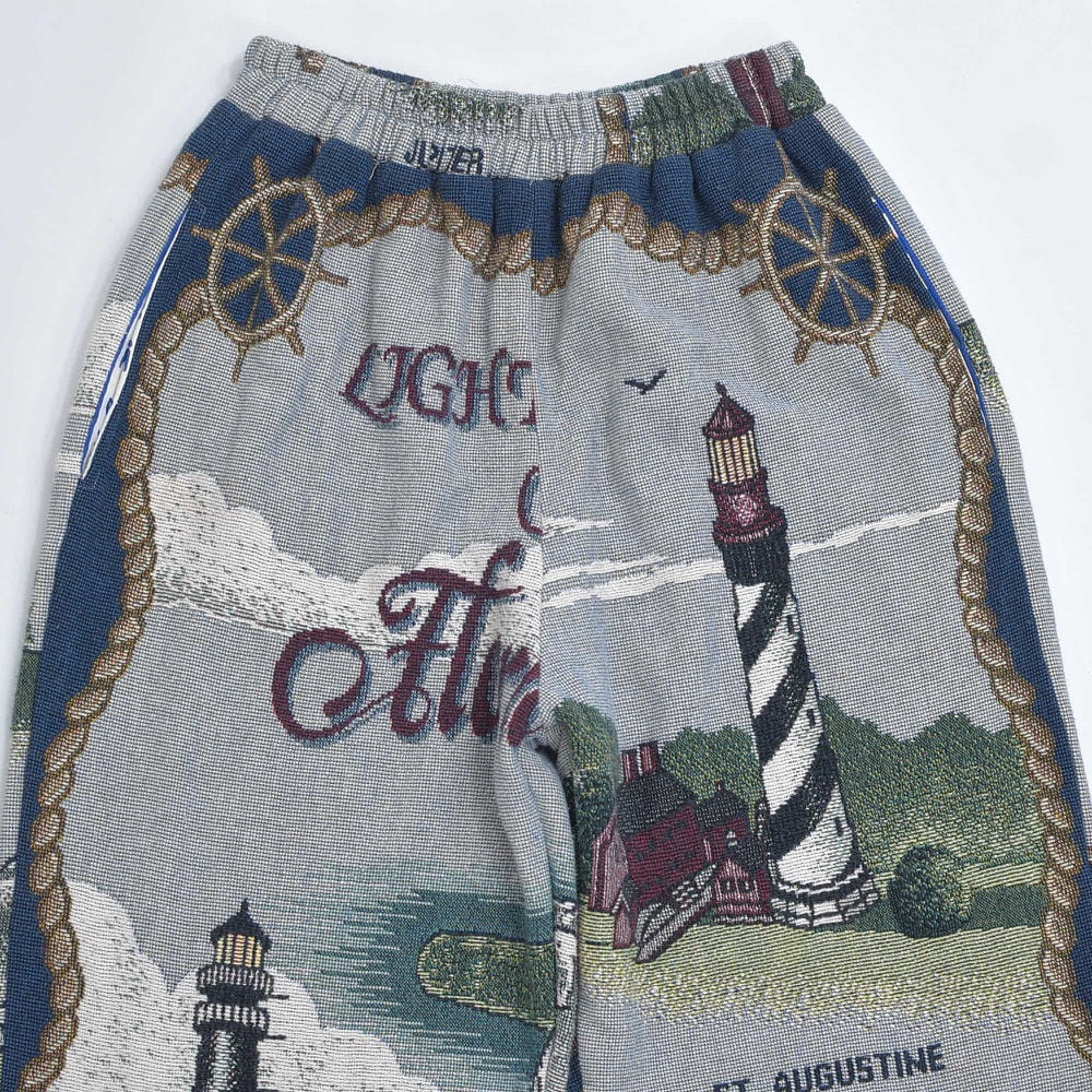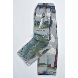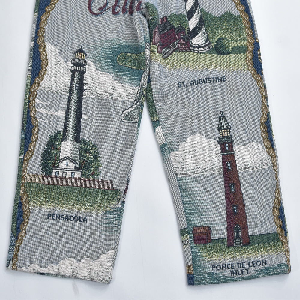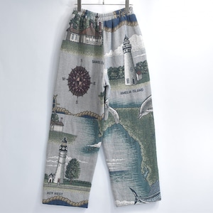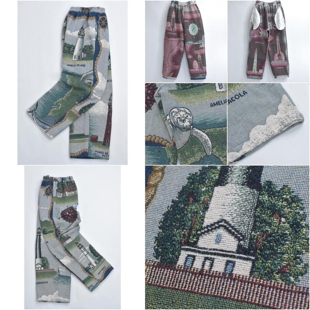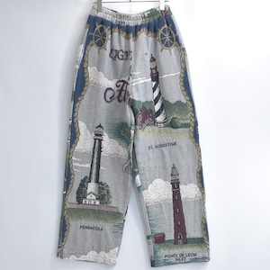 Remake リメイク ルーズシルエット ジャガード 総柄 デザイン ラグパンツ 灯台 風景 アニマル ブランケット タペストリー パッチワーク イージーパンツ 再構築 ゴブラン ユニセックスサイズ W62〜98cm