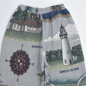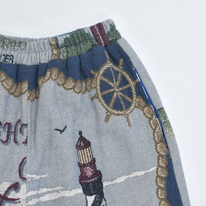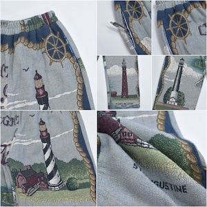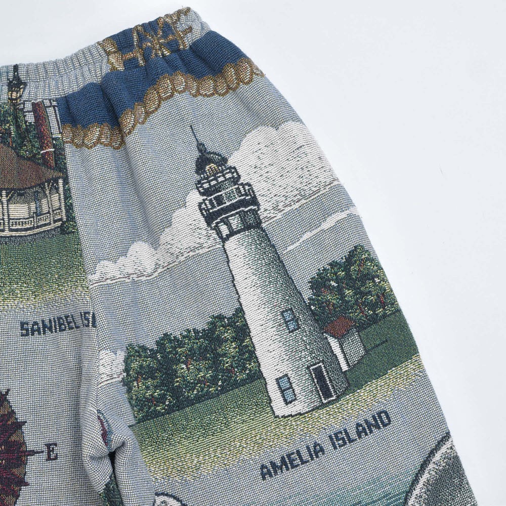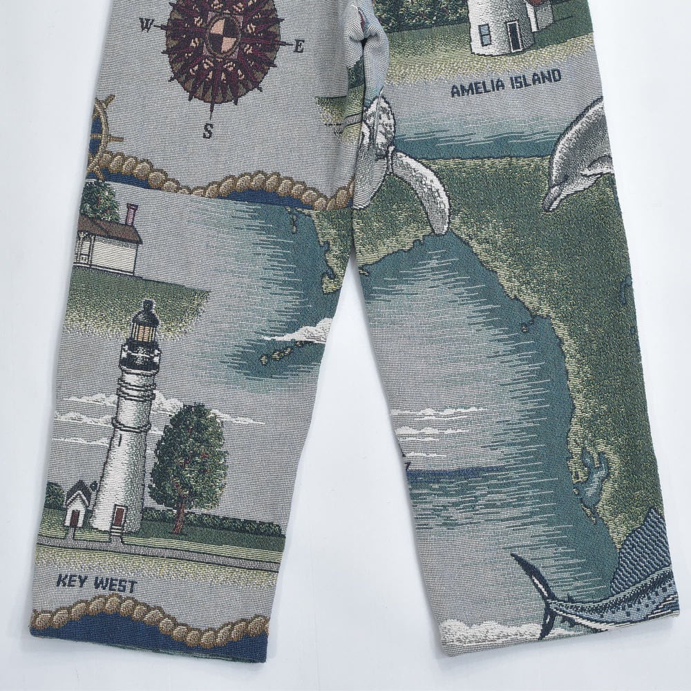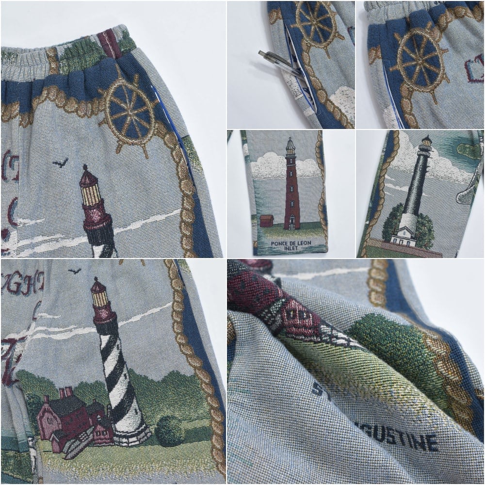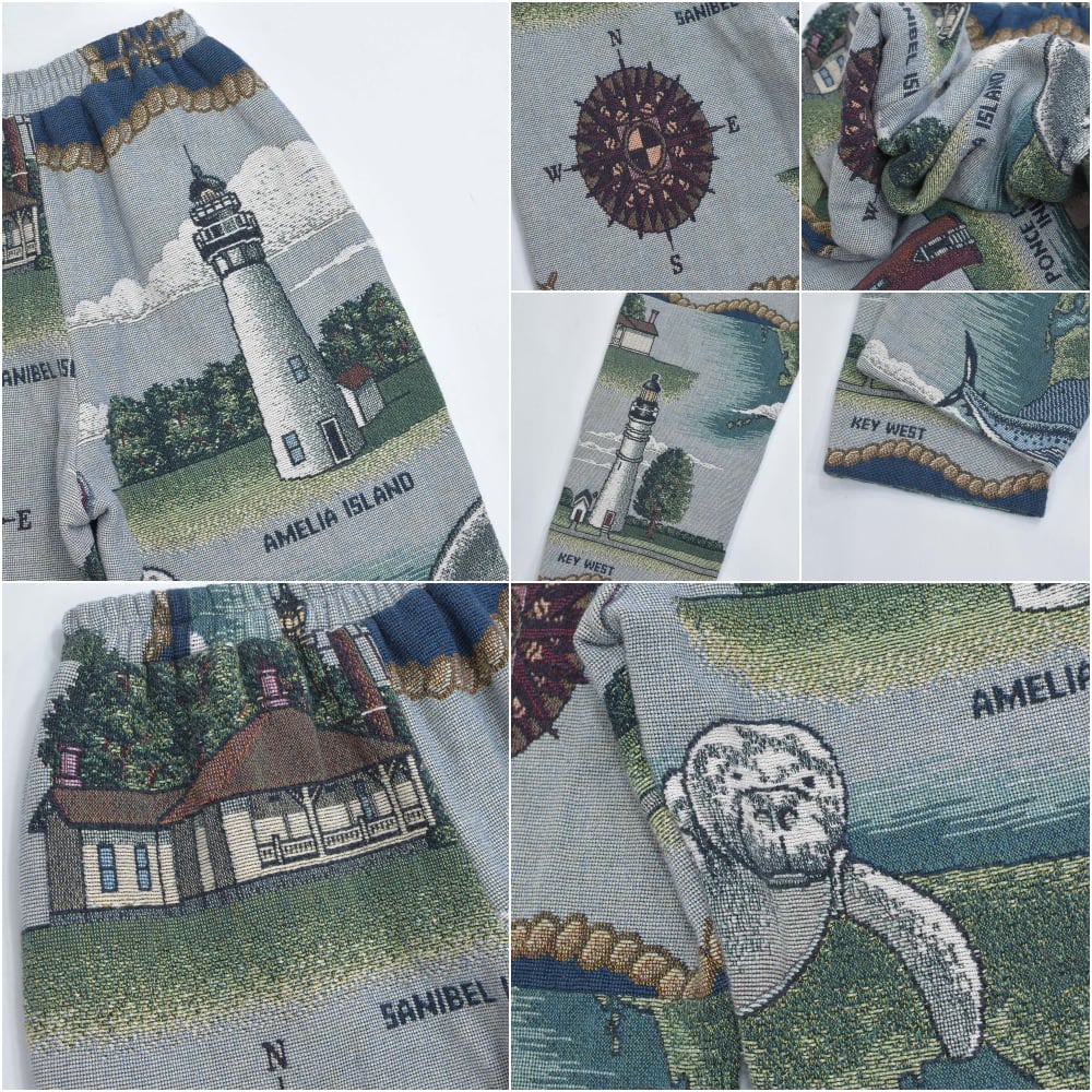 Remake リメイク ルーズシルエット ジャガード 総柄 デザイン ラグパンツ 灯台 風景 アニマル ブランケット タペストリー パッチワーク イージーパンツ 再構築 ゴブラン ユニセックスサイズ W62〜98cm