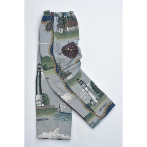 Remake リメイク ルーズシルエット ジャガード 総柄 デザイン ラグパンツ 灯台 風景 アニマル ブランケット タペストリー パッチワーク イージーパンツ 再構築 ゴブラン ユニセックスサイズ W62~98cm