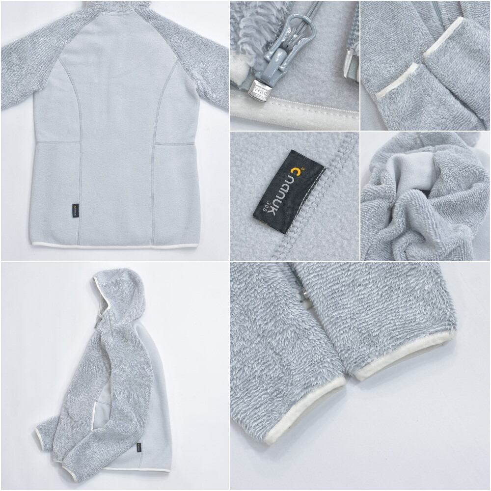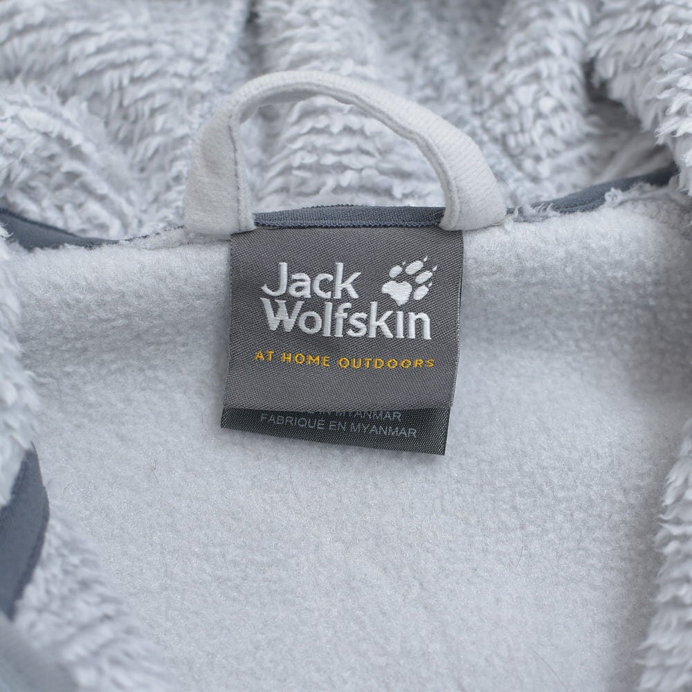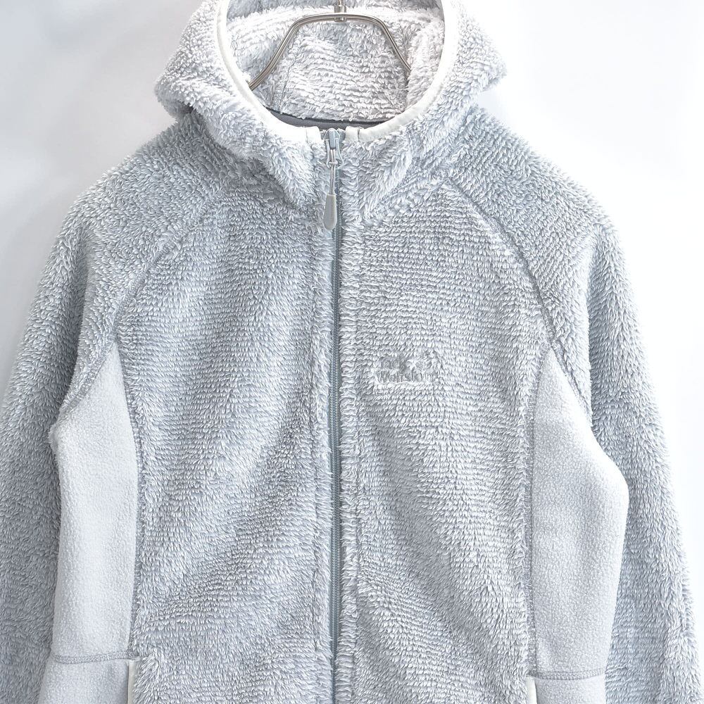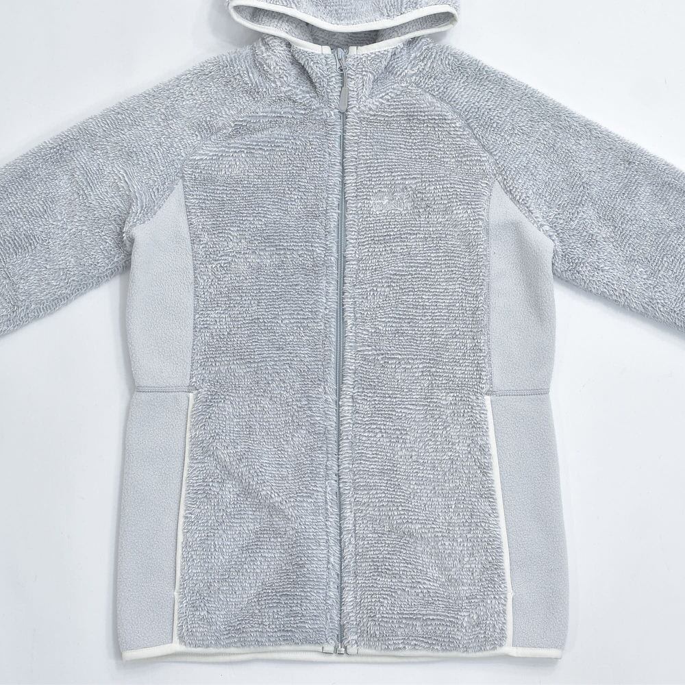 00s Jack Wolfskin ジャックウルフスキン ハイロフト NANUK300 切替デザイン フリースパーカー フーディー ジャケット ライトグレー ヴィンテージ ビンテージ ヨーロッパ古着 レディースSサイズ