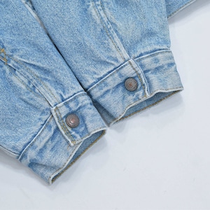 ・使用感やデニム特有の色落ち、画像のように裏ボアの小さな毛玉や、全体的にスナップボタンの凹側裏のサビや、内襟や凸側のボタン周りの薄いシミ、右手首の点サビ汚れや、左てくひの薄汚れなどありますが、その他目立つ汚れ、ダメージは見当たらず、日常的に古着を着用されている方であれば、問題無く着用して頂けると思います