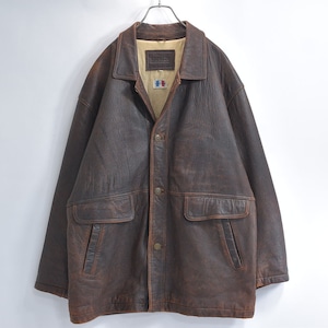 80s~ Sprazzo スプラッツォ 本革 フレンチラムレザー エイジングデザイン レザーカーコート ハーフコート ヴィンテージ ビンテージ 古着 メンズLサイズ
