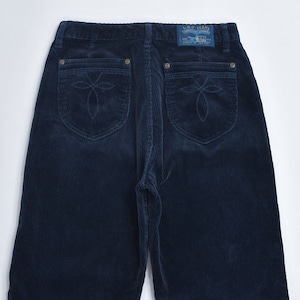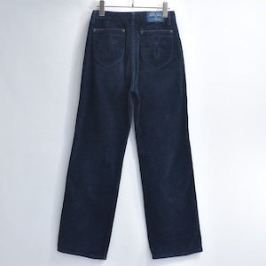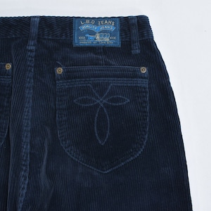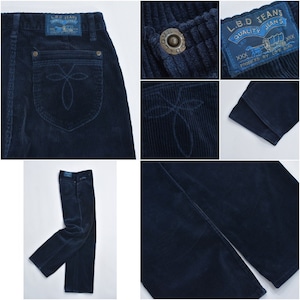 80〜90s Love Bird タロンジップ 太畝 コーデュロイ ステッチデザイン ワークパンツ ヴィンテージ ビンテージ 古着 ネイビー コーズ スラックス レディースW67cm