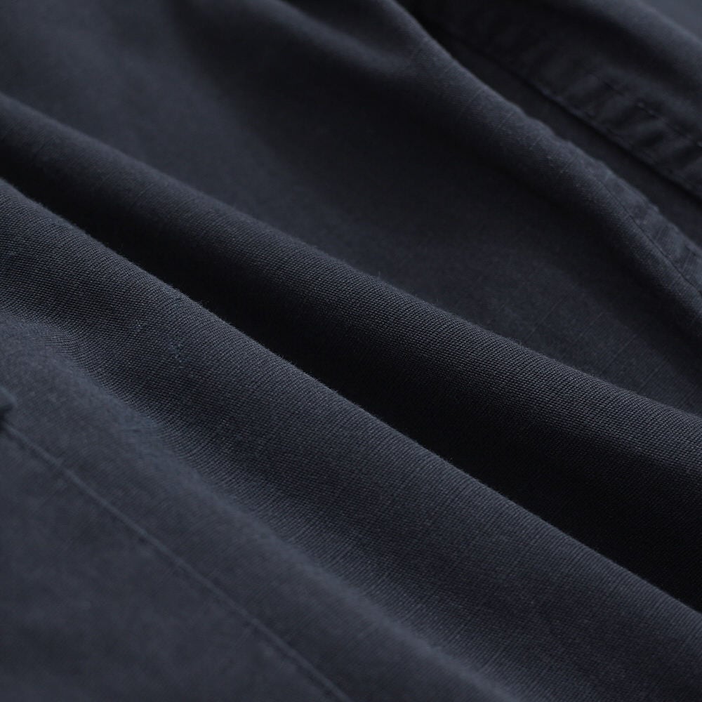 タフなリップストップ生地に刻まれた細かな格子と、絶妙に褪せた黒の表情は、いわば日常を戦い抜いてきた勲章のような佇まい