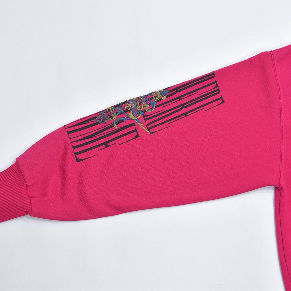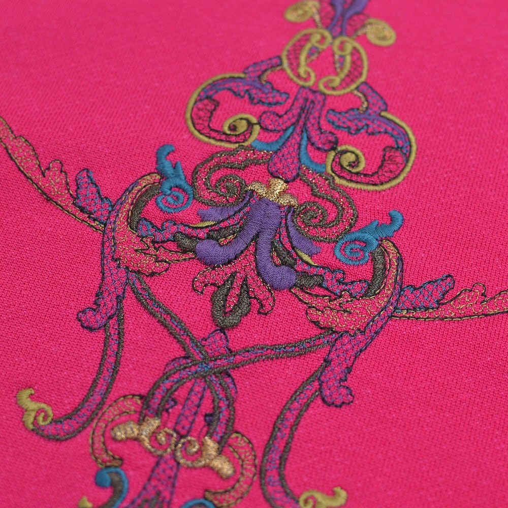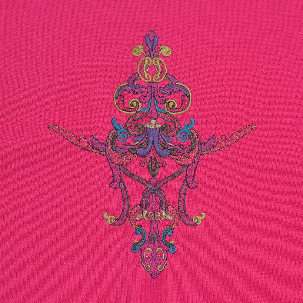 この強気なマゼンタピンクに負けないほど、中央に鎮座する刺繍の作り込みが、もはや工芸品の域に達しています