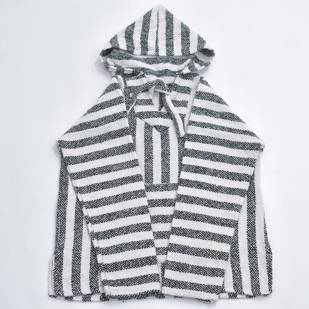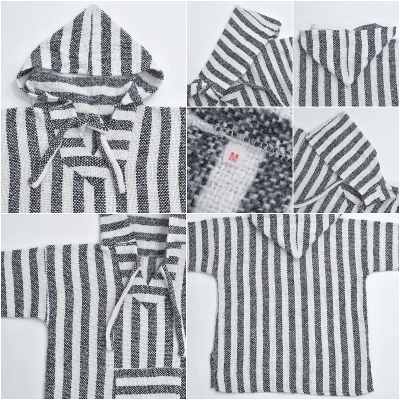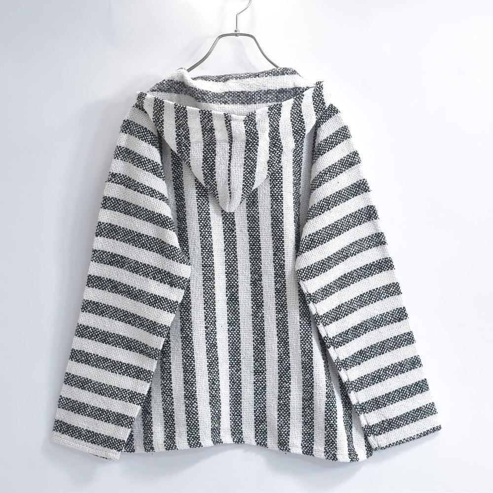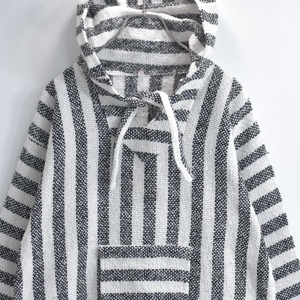 90~00s Baja Hoodie ストライプ デザイン メキシカンパーカー メキパ バハパーカー ブラック ホワイト ヴィンテージ ビンテージ USA アメリカ古着 メンズMサイズ