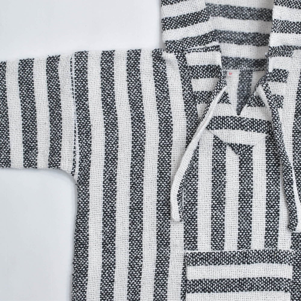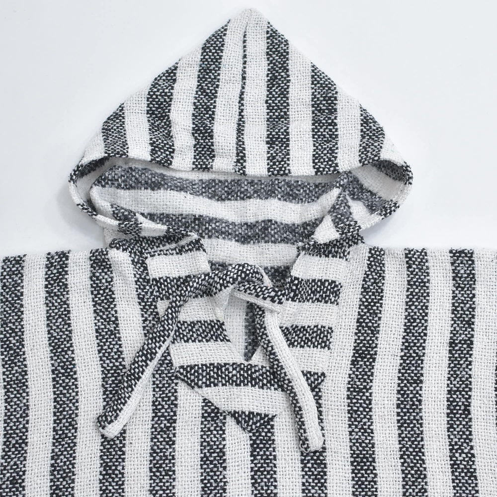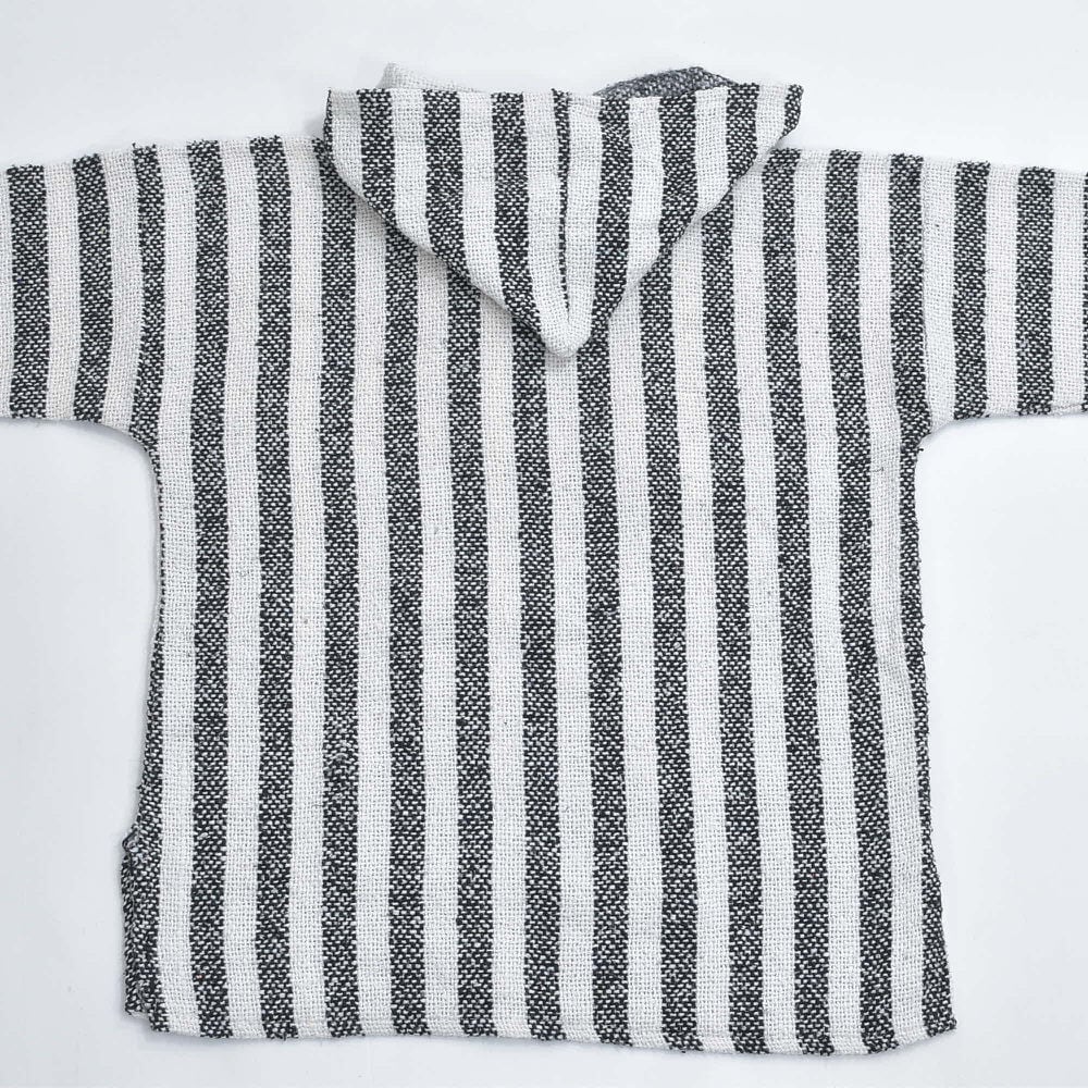 90~00s Baja Hoodie ストライプ デザイン メキシカンパーカー メキパ バハパーカー ブラック ホワイト ヴィンテージ ビンテージ USA アメリカ古着 メンズMサイズ