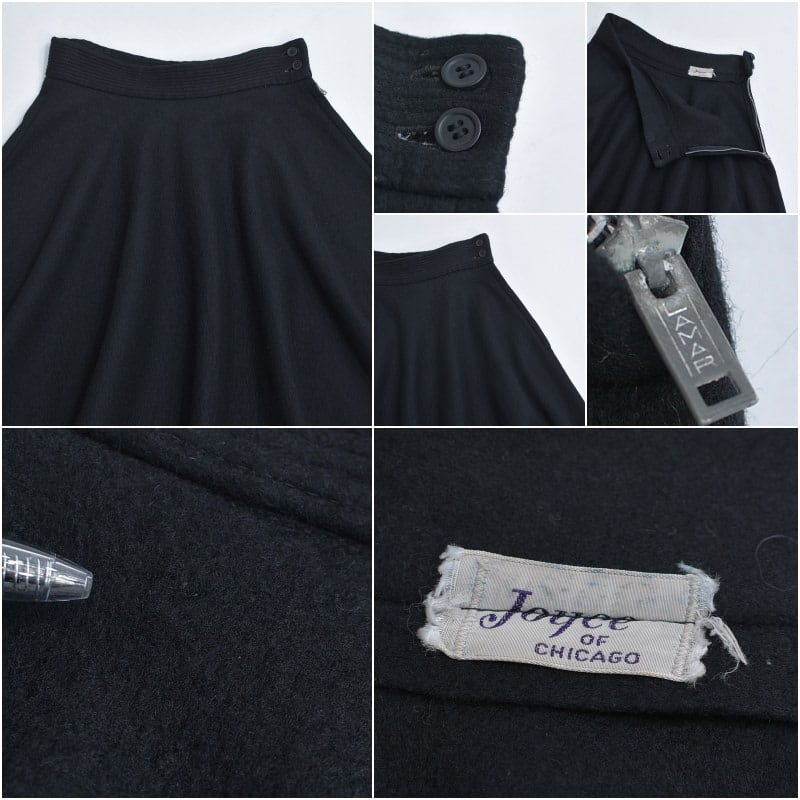 40〜50s USA製 Joyce OF CHICAGO ジョイスオブシカゴ フェルト ウール サーキュラー スカート フレア ブラック ヴィンテージ ビンテージ アメリカ古着 レディースW66cm