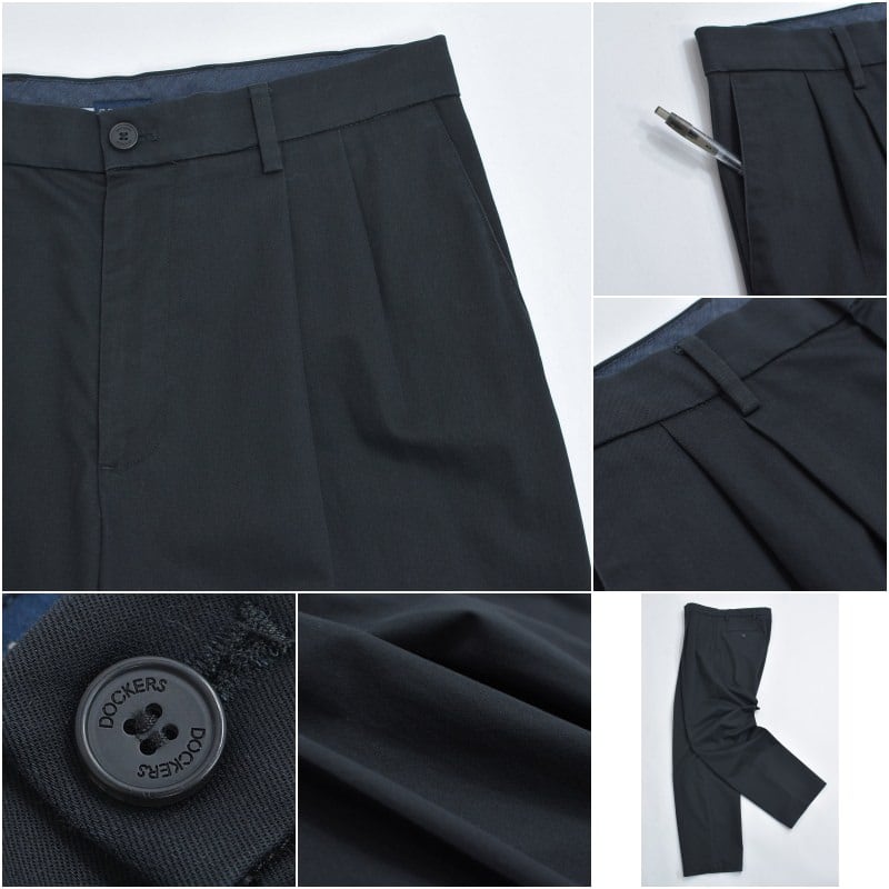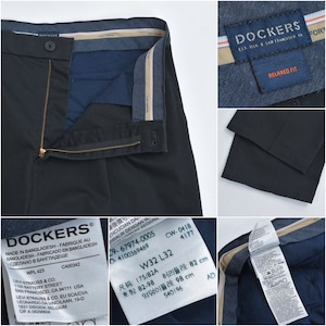 00~10s DOCKERS ドッカーズ 2タック リラックスフィット ストレッチ チノ トラウザーズ チノーズ チノパン ワークパンツ ブラック ヴィンテージ ビンテージ USA アメリカ古着 メンズW32インチ