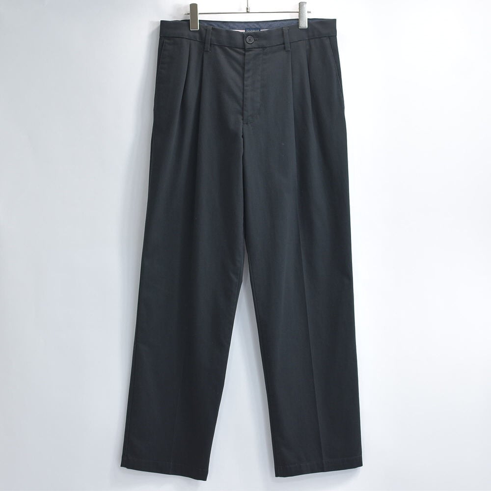 00〜10s DOCKERS ドッカーズ 2タック リラックスフィット ストレッチ チノ トラウザーズ チノーズ チノパン ワークパンツ ブラック ヴィンテージ ビンテージ USA アメリカ古着 メンズW32インチ