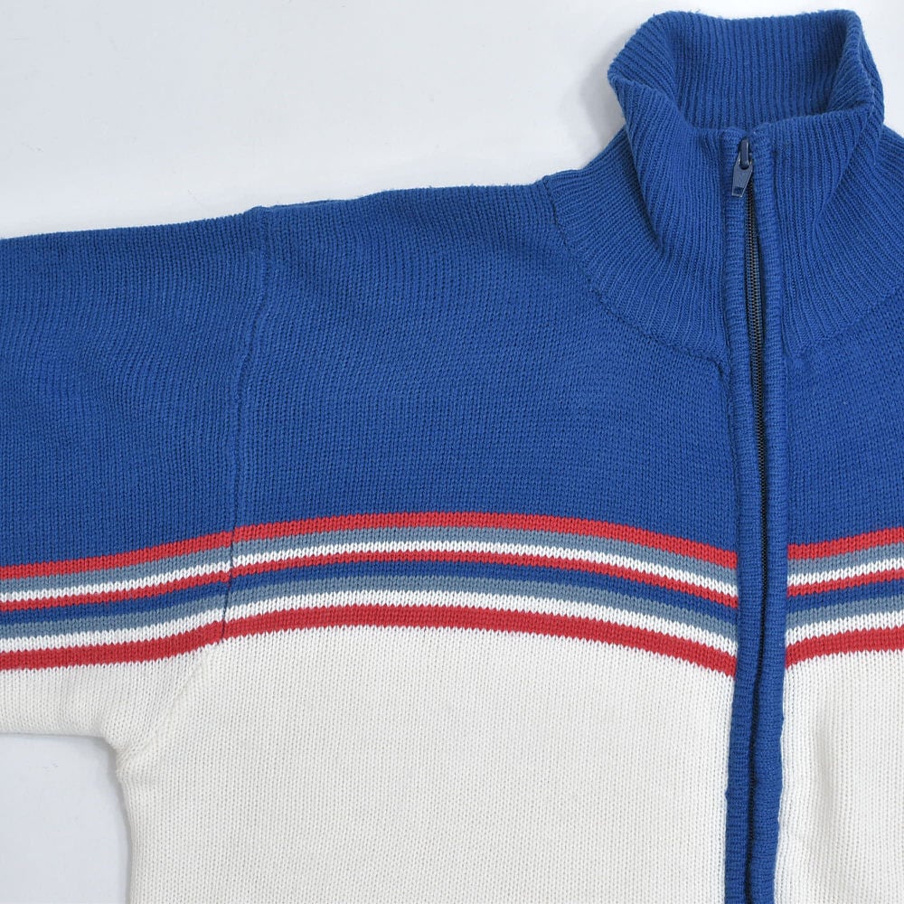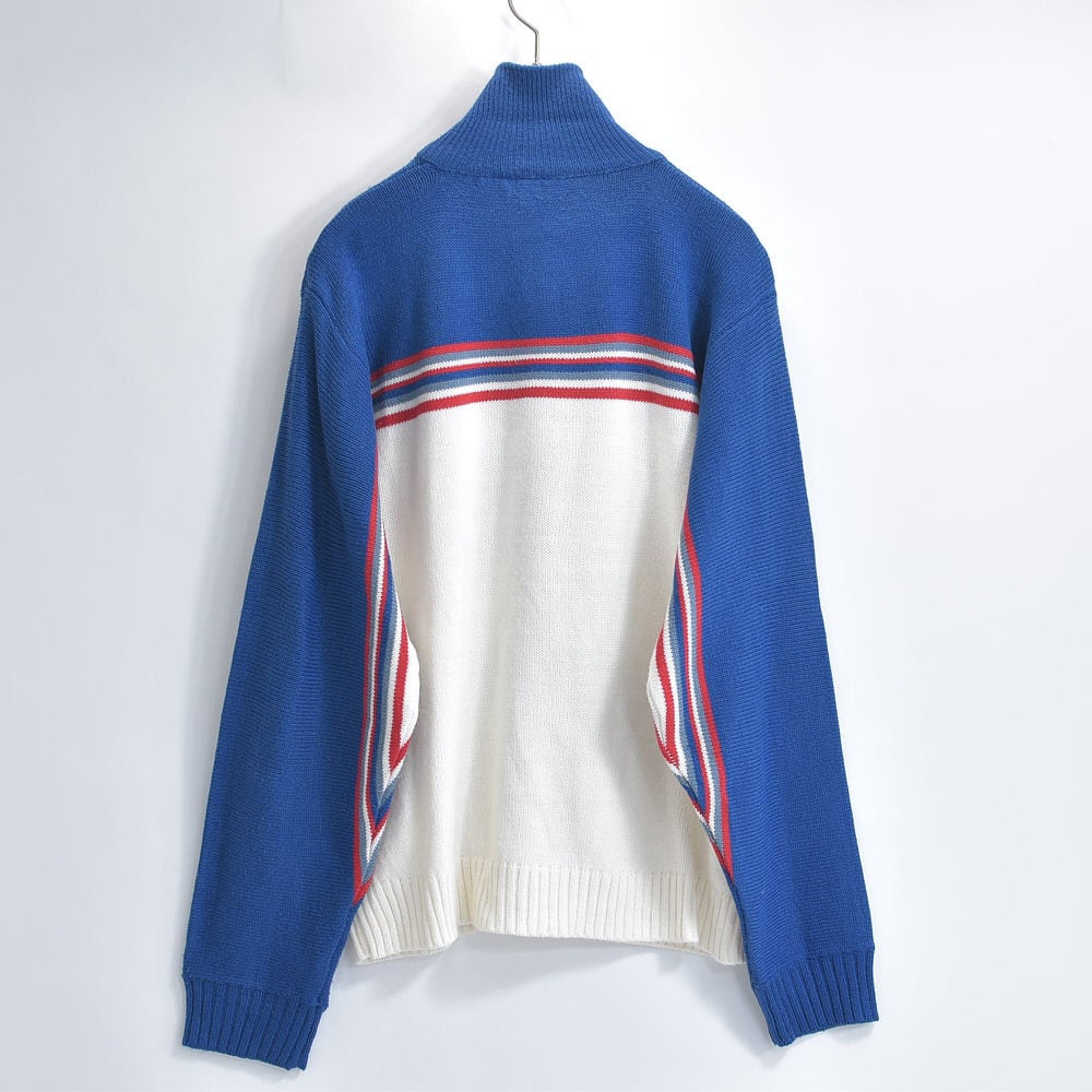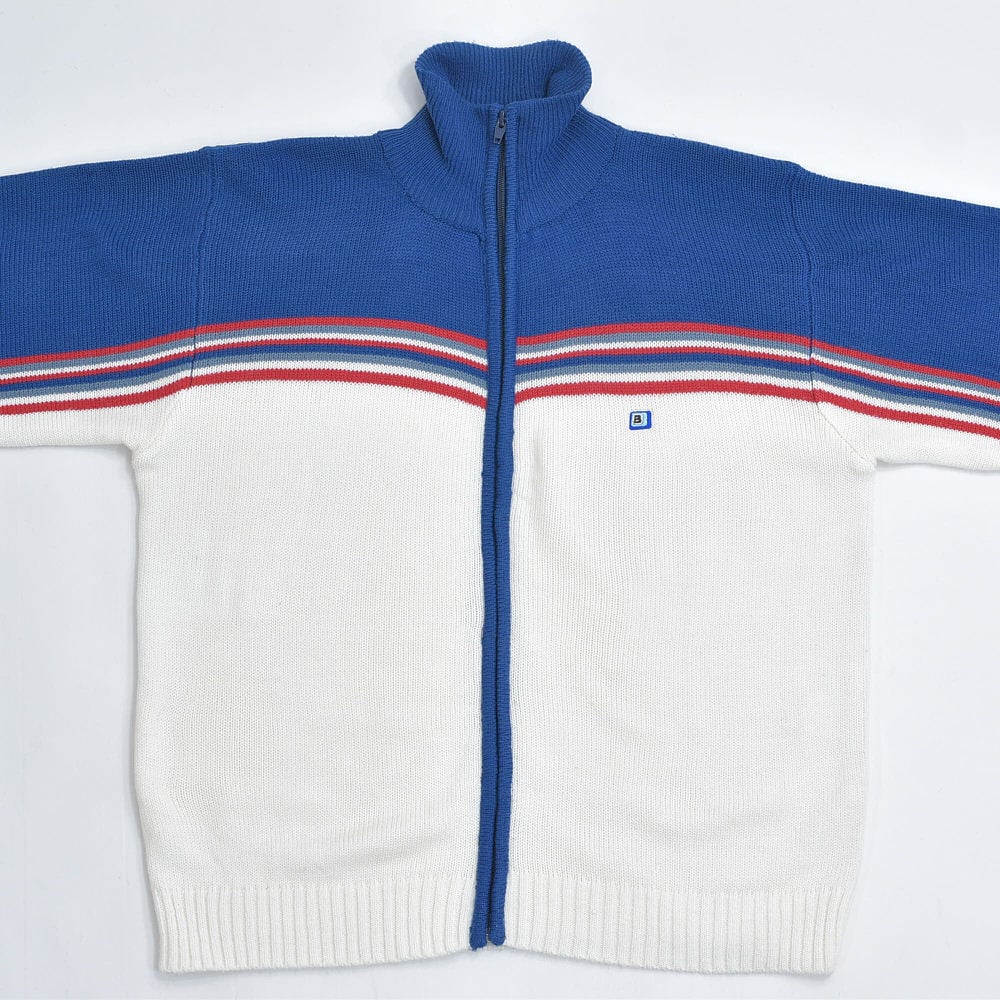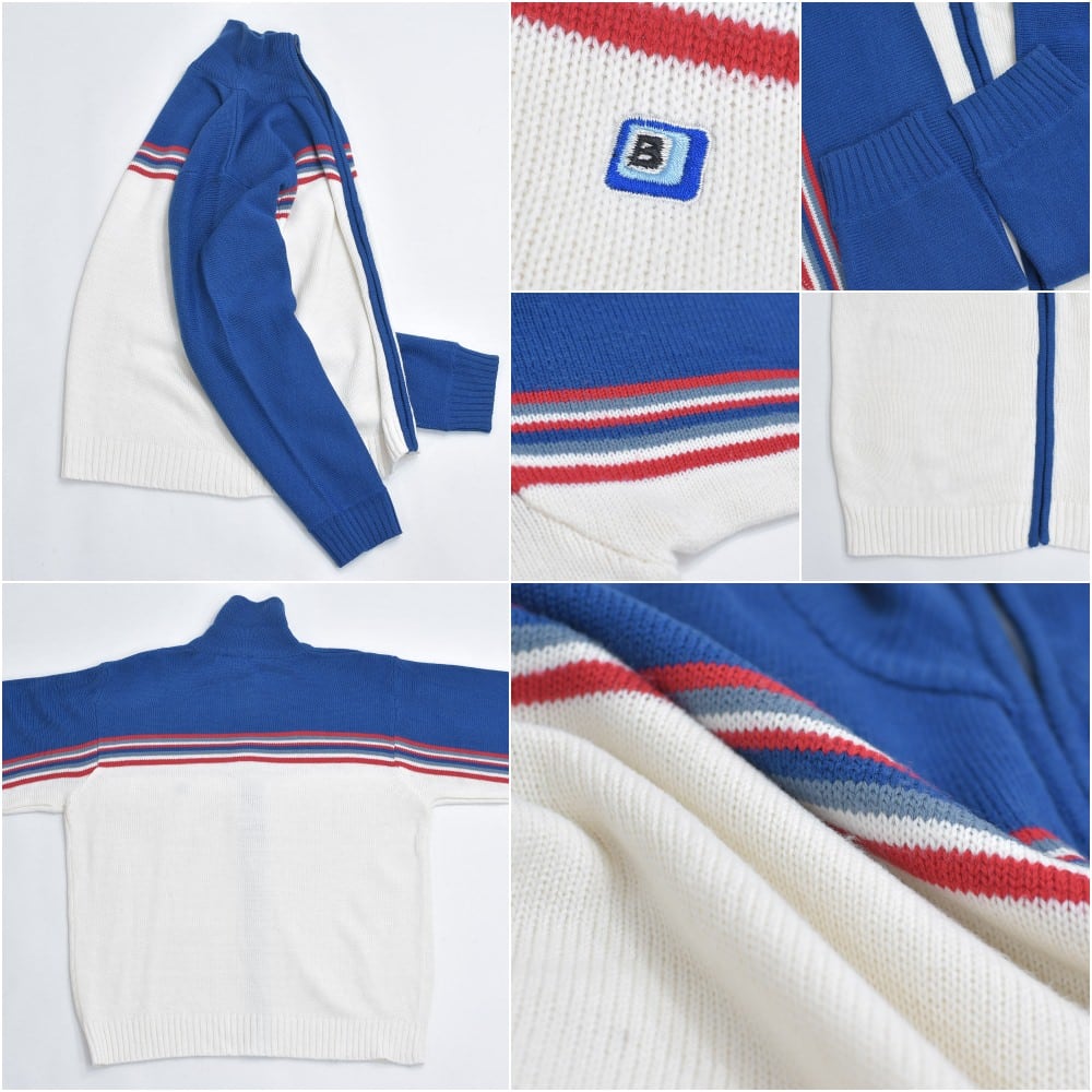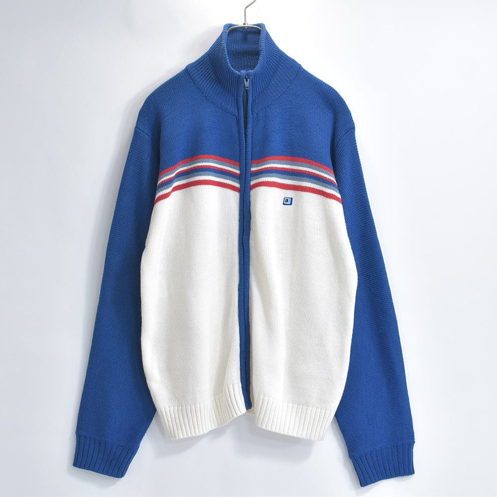 80〜90s BURTON CLUB バートンクラブ ラインデザイン ジップアップ ニット ジャケット スポーツ トラックジャケット ヴィンテージ ビンテージ 古着 ブルー メンズL相当