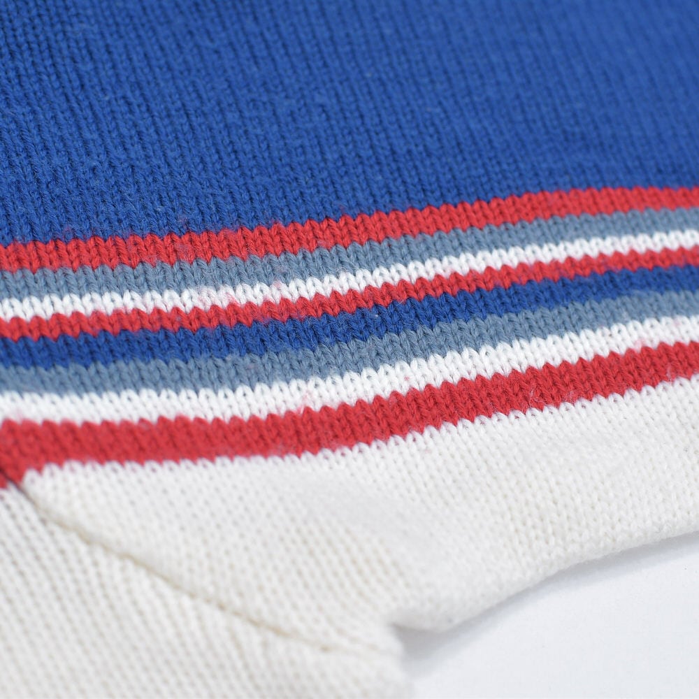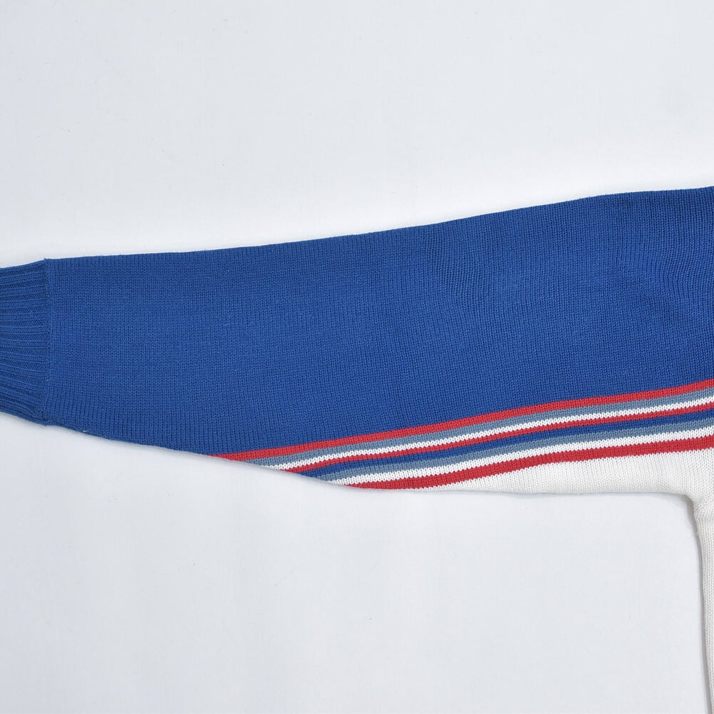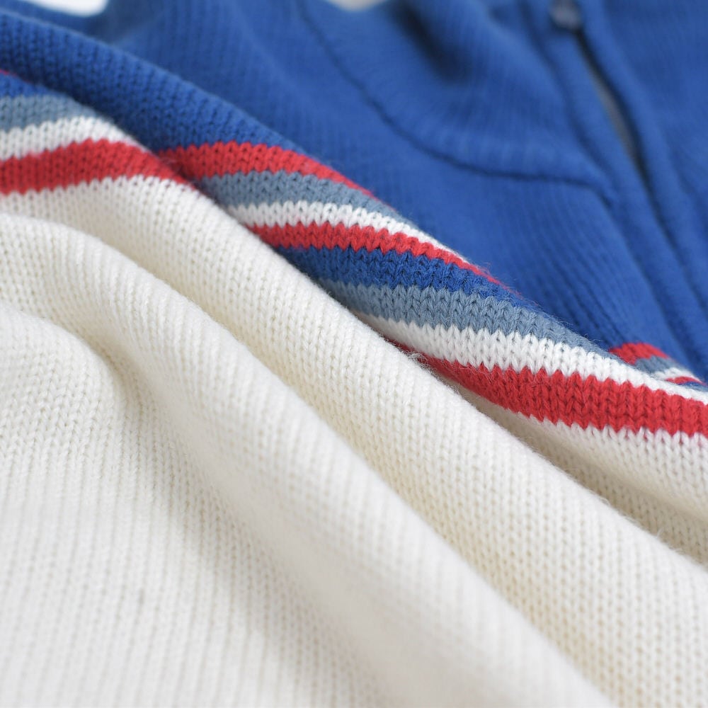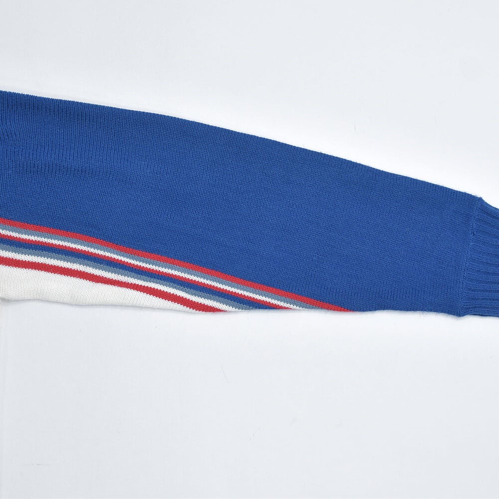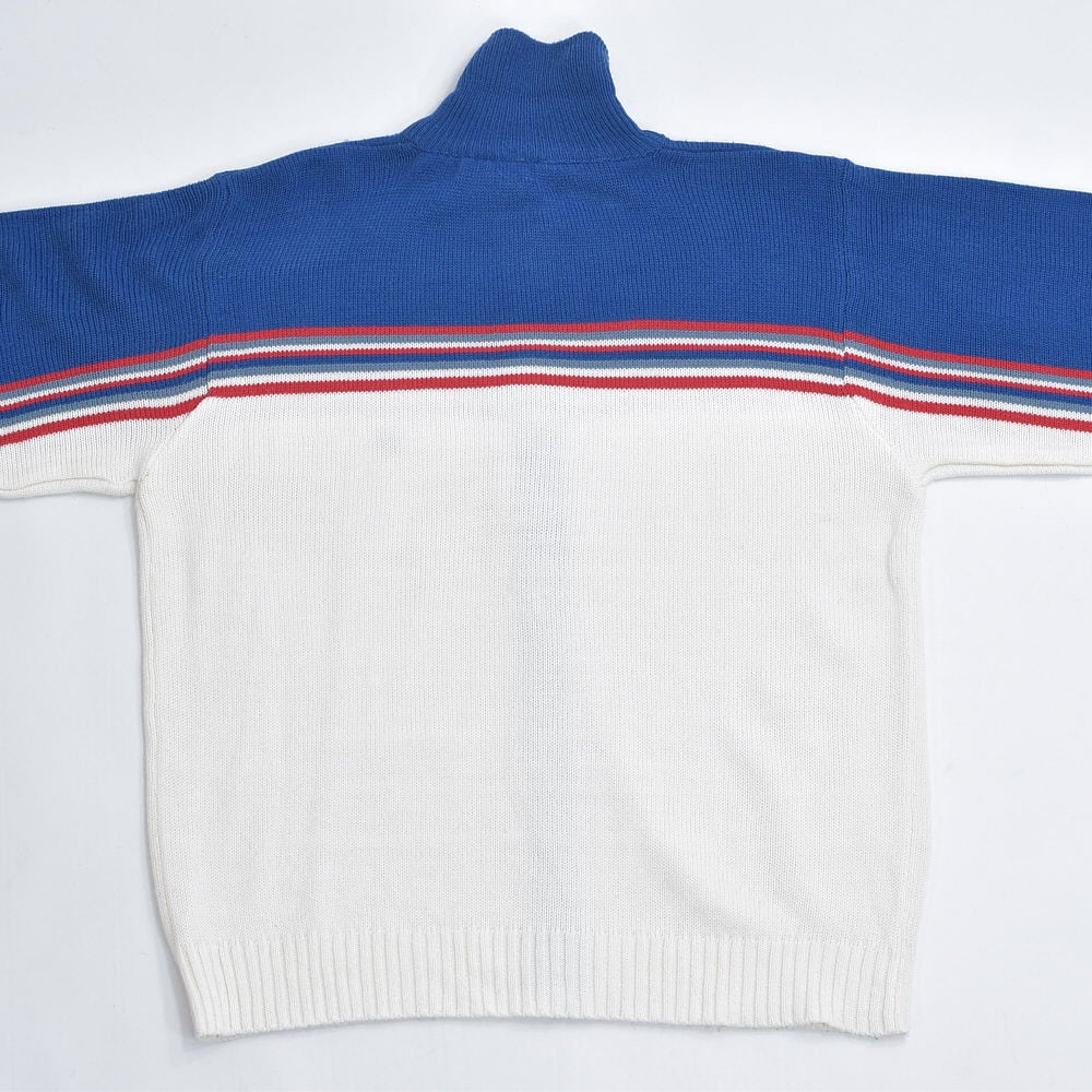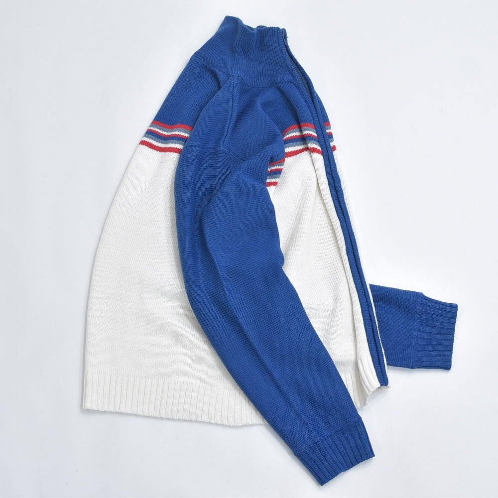 80〜90s BURTON CLUB バートンクラブ ラインデザイン ジップアップ ニット ジャケット スポーツ トラックジャケット ヴィンテージ ビンテージ 古着 ブルー メンズL相当