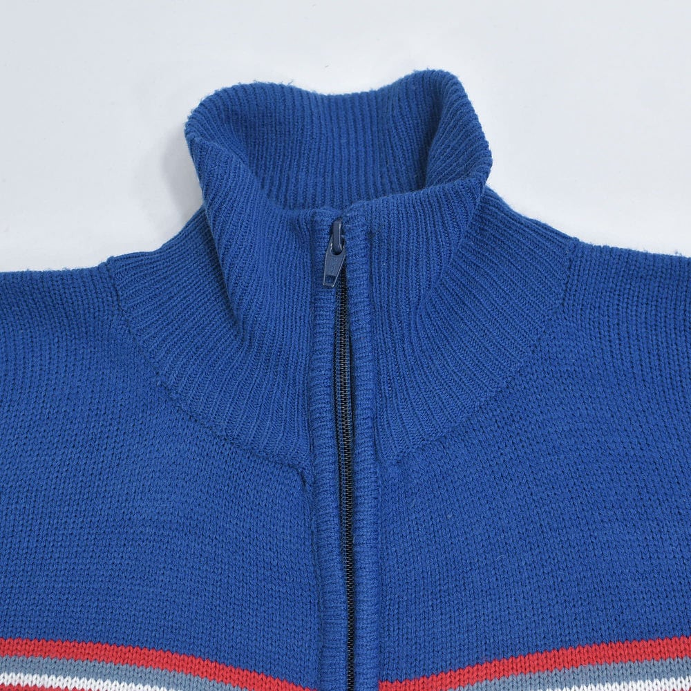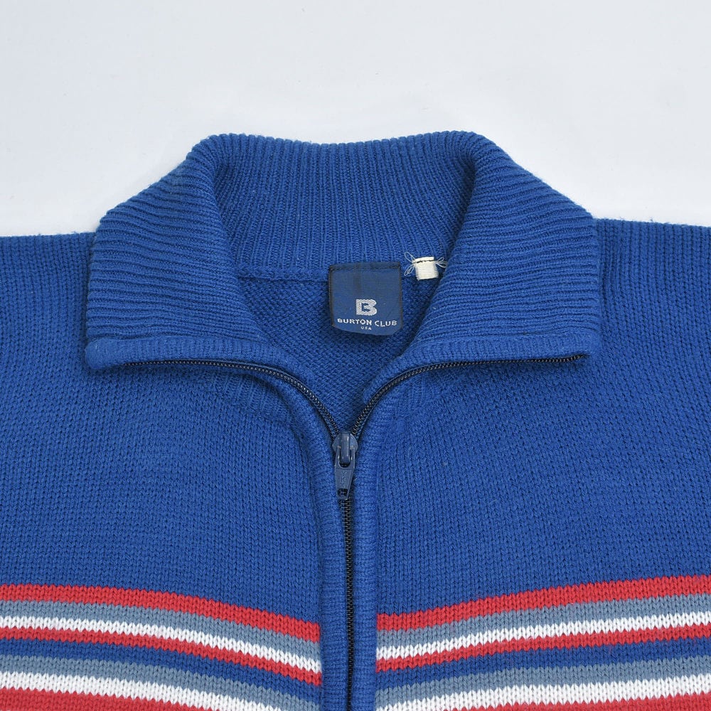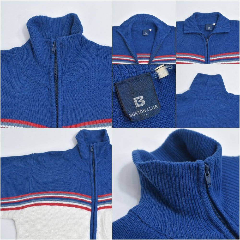 80~90s BURTON CLUB バートンクラブ ラインデザイン ジップアップ ニット ジャケット スポーツ トラックジャケット ヴィンテージ ビンテージ 古着 ブルー メンズL相当