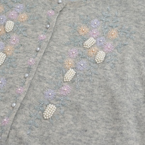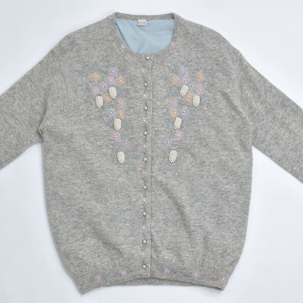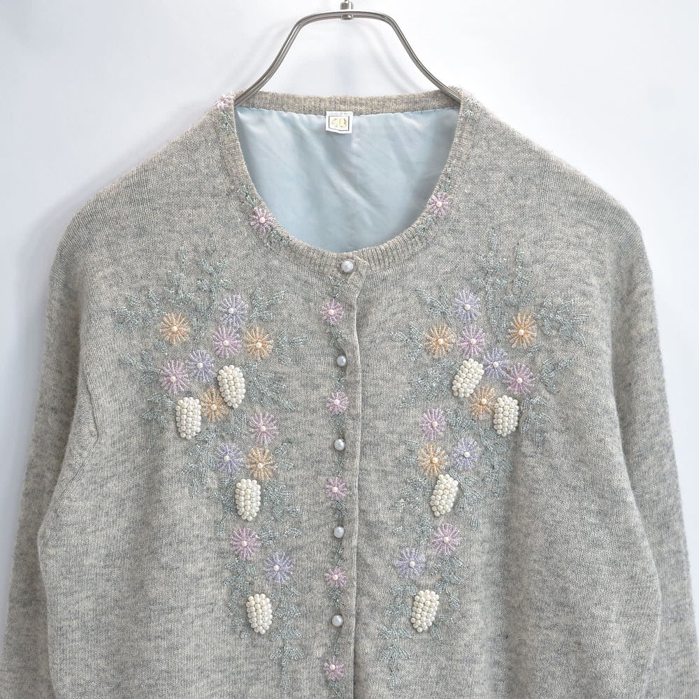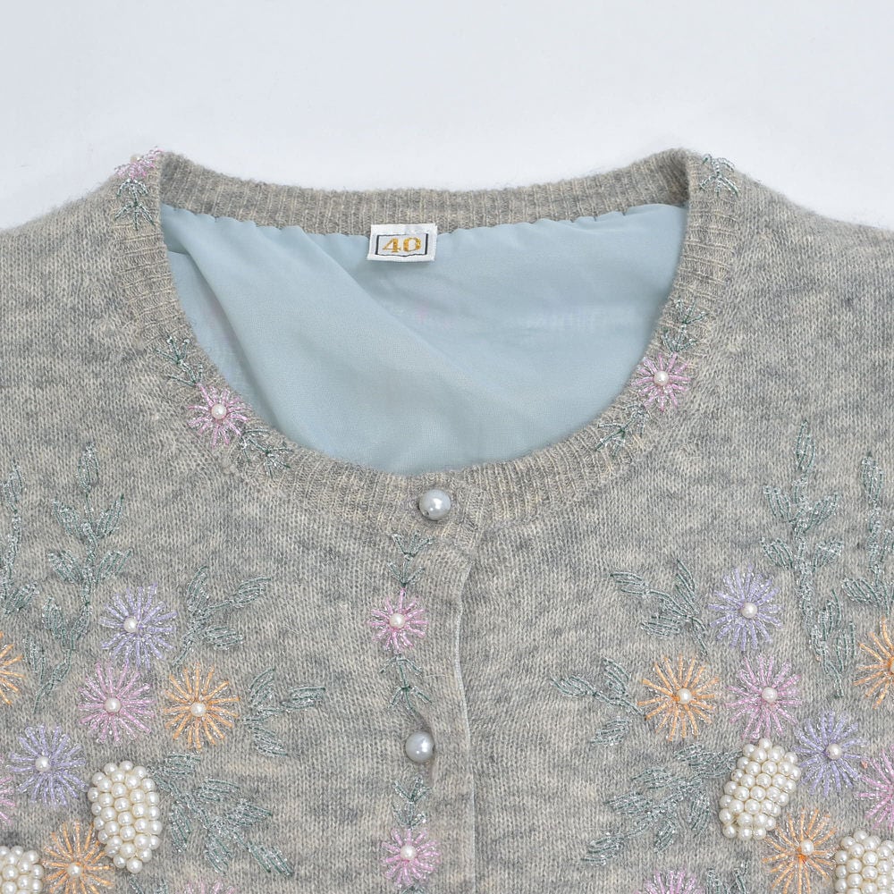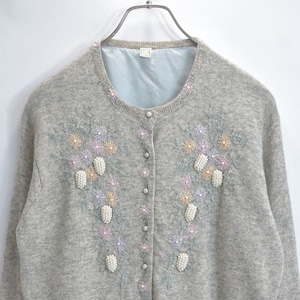 50~60s Vintage Decoration Design デコレーション デザイン 3 D ウールニット カーディガン ヴィンテージ ビンテージ グレー 古着 レディースM相当