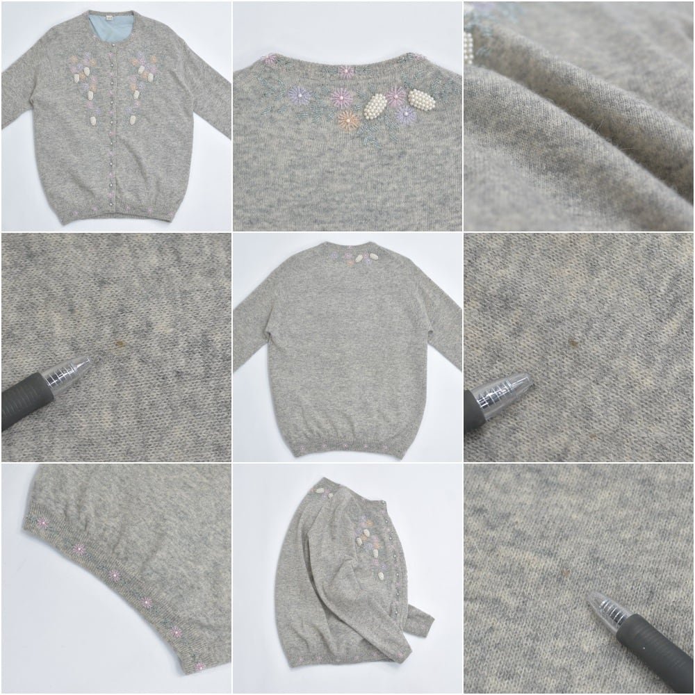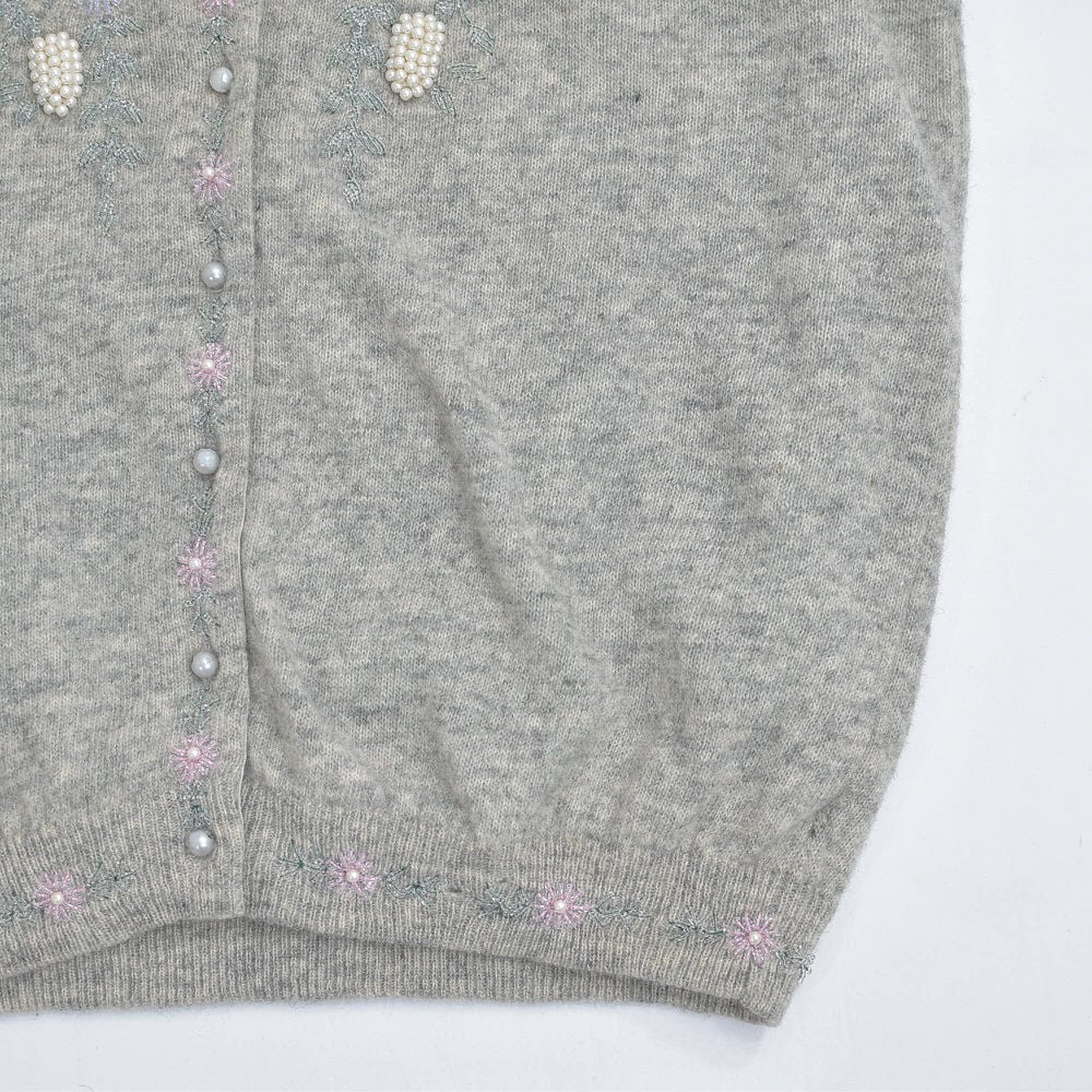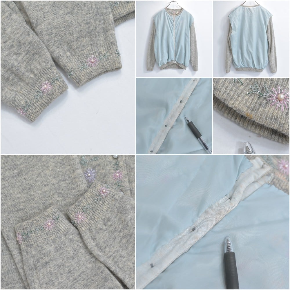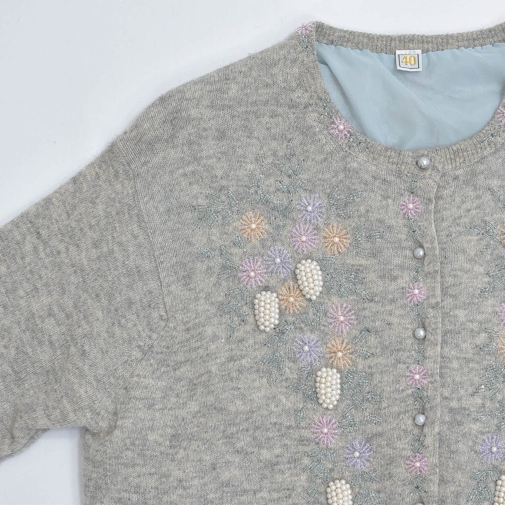 50~60s Vintage Decoration Design デコレーション デザイン 3 D ウールニット カーディガン ヴィンテージ ビンテージ グレー 古着 レディースM相当