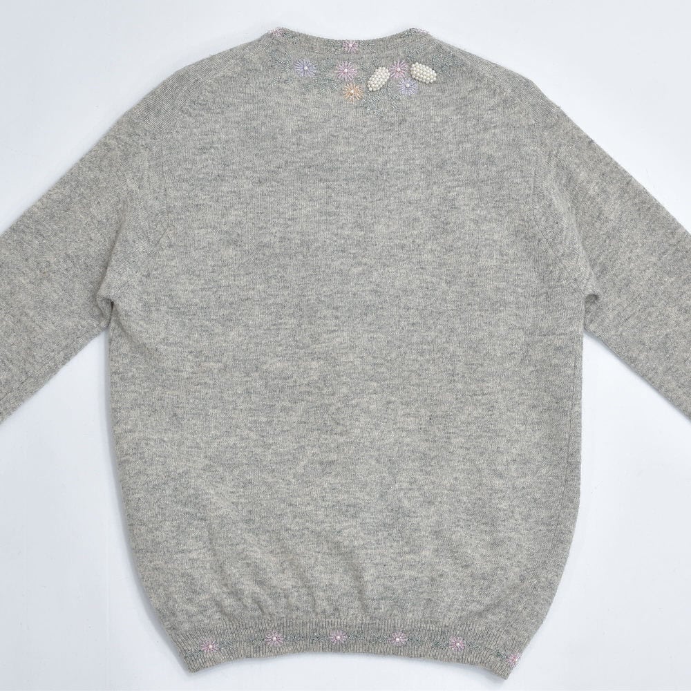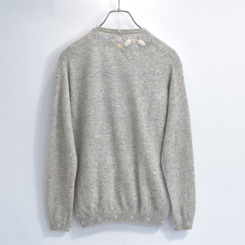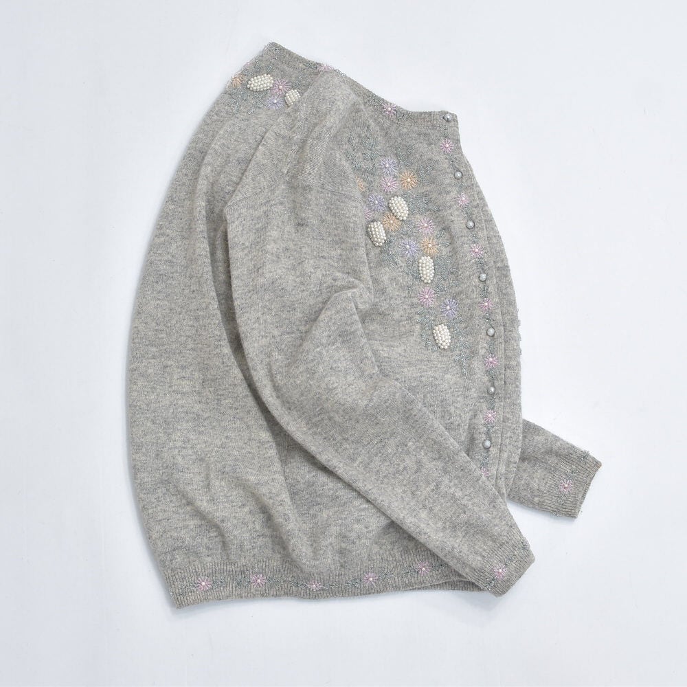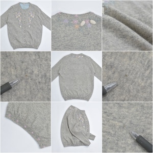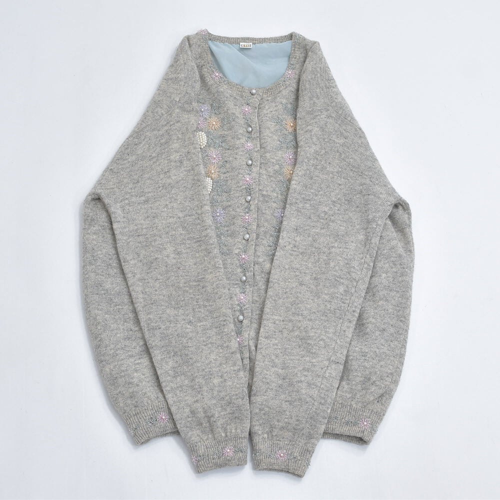 50〜60s Vintage Decoration Design デコレーション デザイン 3 D ウールニット カーディガン ヴィンテージ ビンテージ グレー 古着 レディースM相当