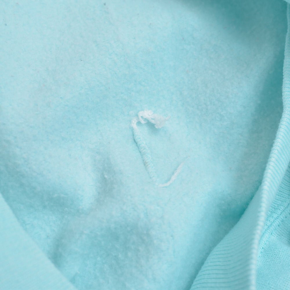 ・使用感や軽い毛羽立ち、画像のようにプリント下のうっすらとシミや、左袖リブ口の薄いシミ、右手首付近の薄いシミ、などありますが、その他目立つ汚れ、ダメージは見当たらず、日常的に古着を着用されている方であれば、問題無く着用して頂けると思います