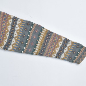 スモーキーなブルーを基調に、マスタードやラベンダーが織りなす幾何学模様のなんとも言えない趣き