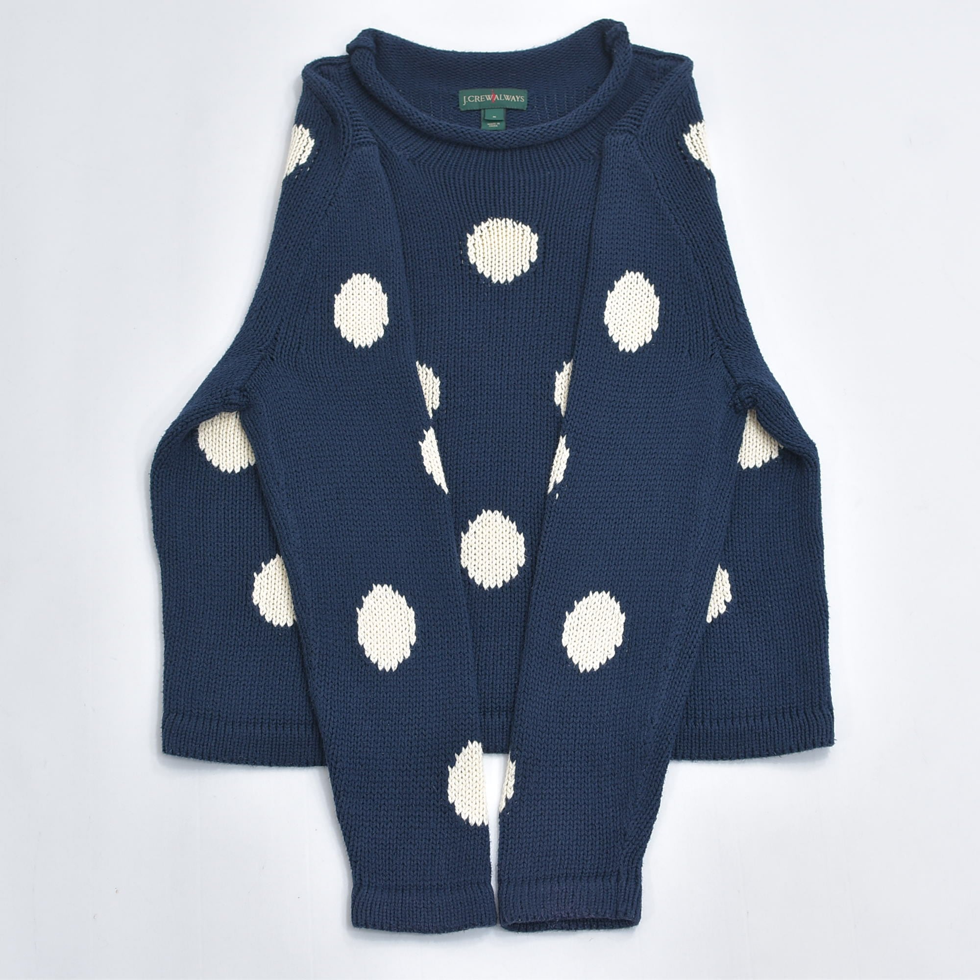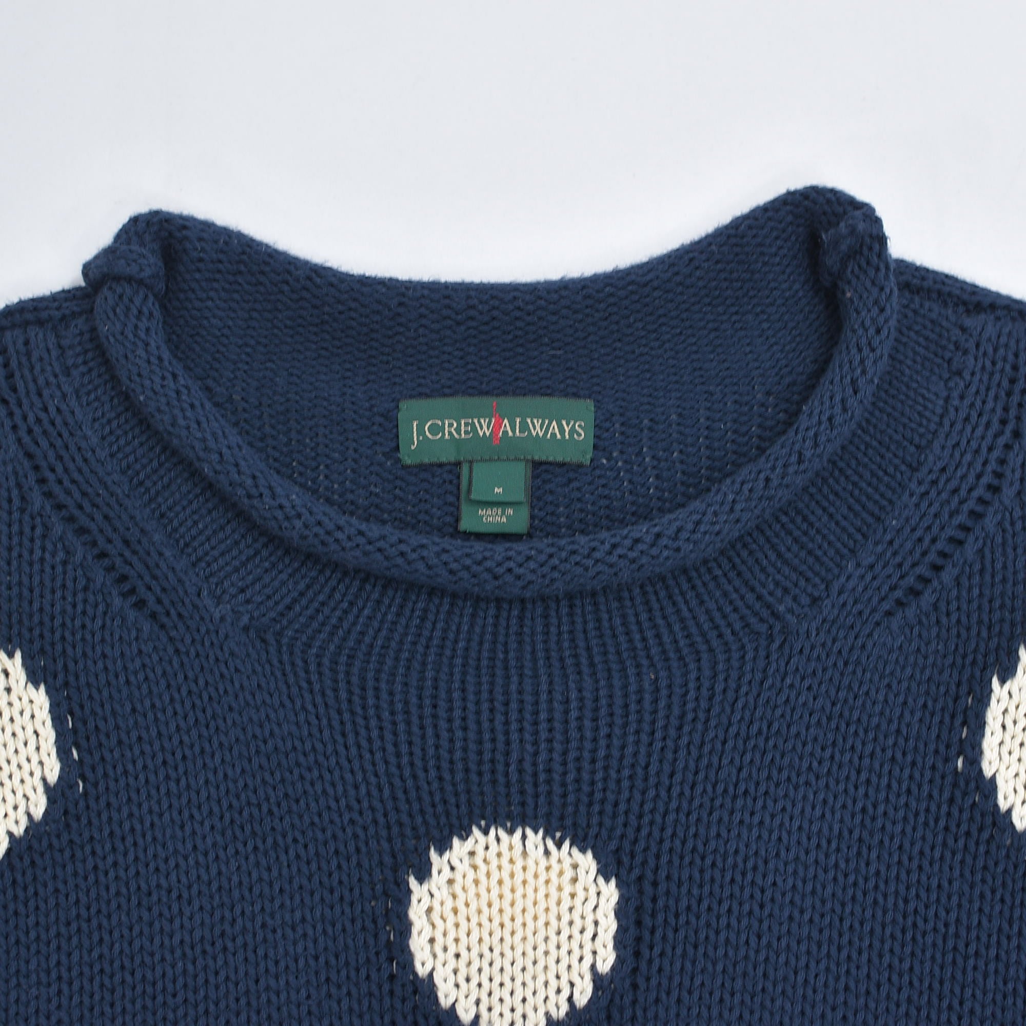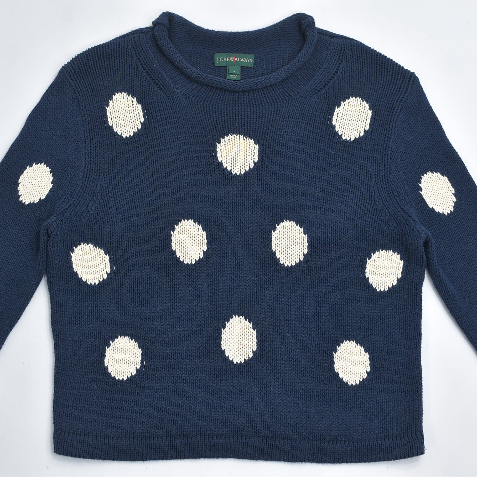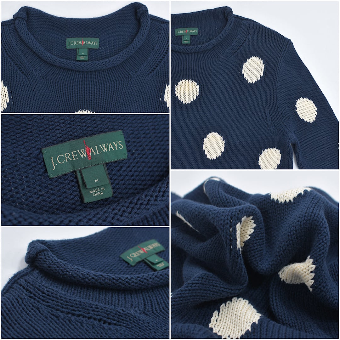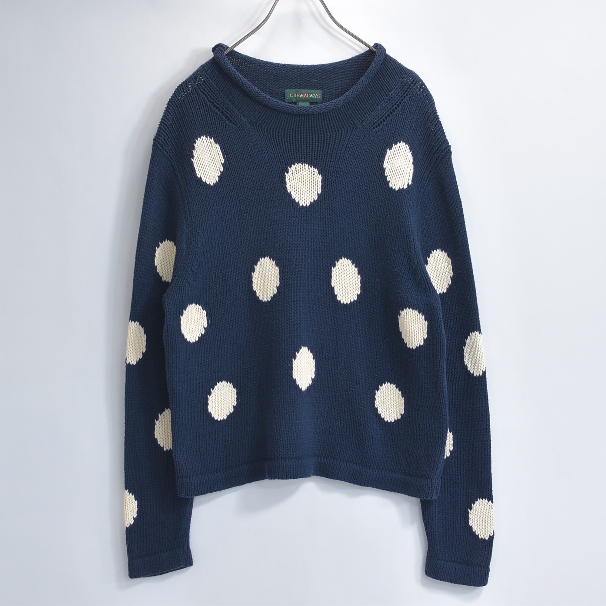 10s J.CREW ALWAYS ジェイクルー オールウェイズ ドットパターン ロールネック コットンニット プルオーバー セーター ヴィンテージ ビンテージ USA アメリカ古着 レディースMサイズ