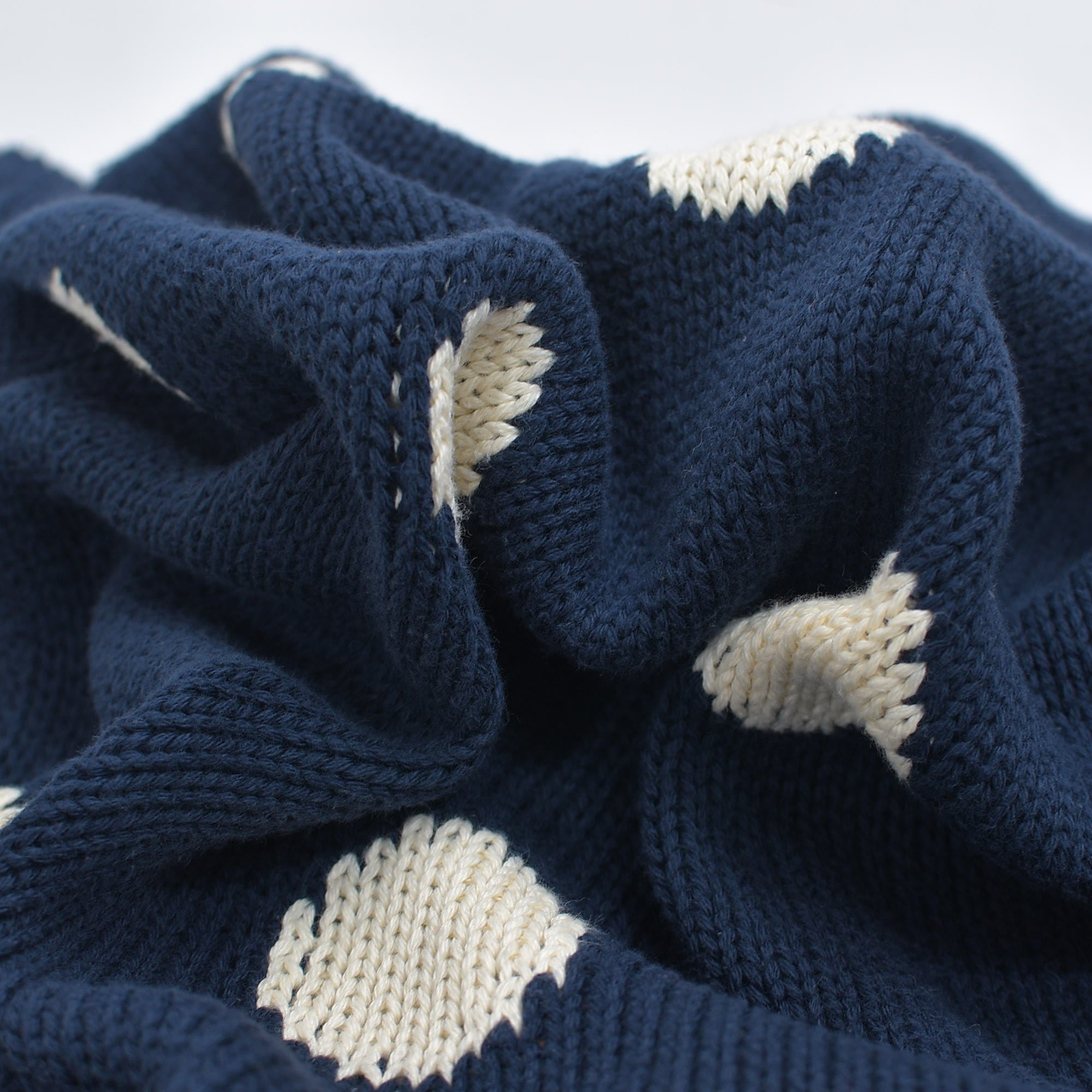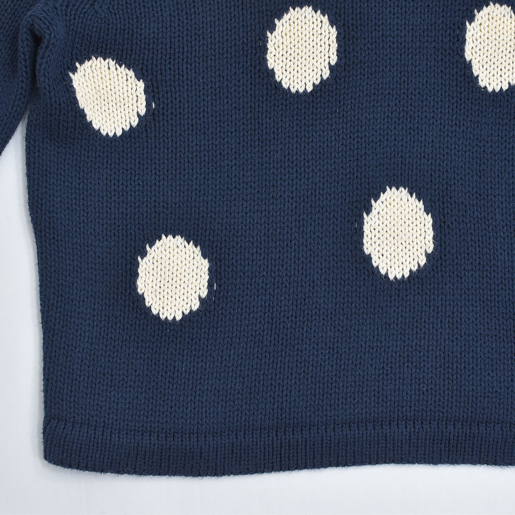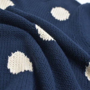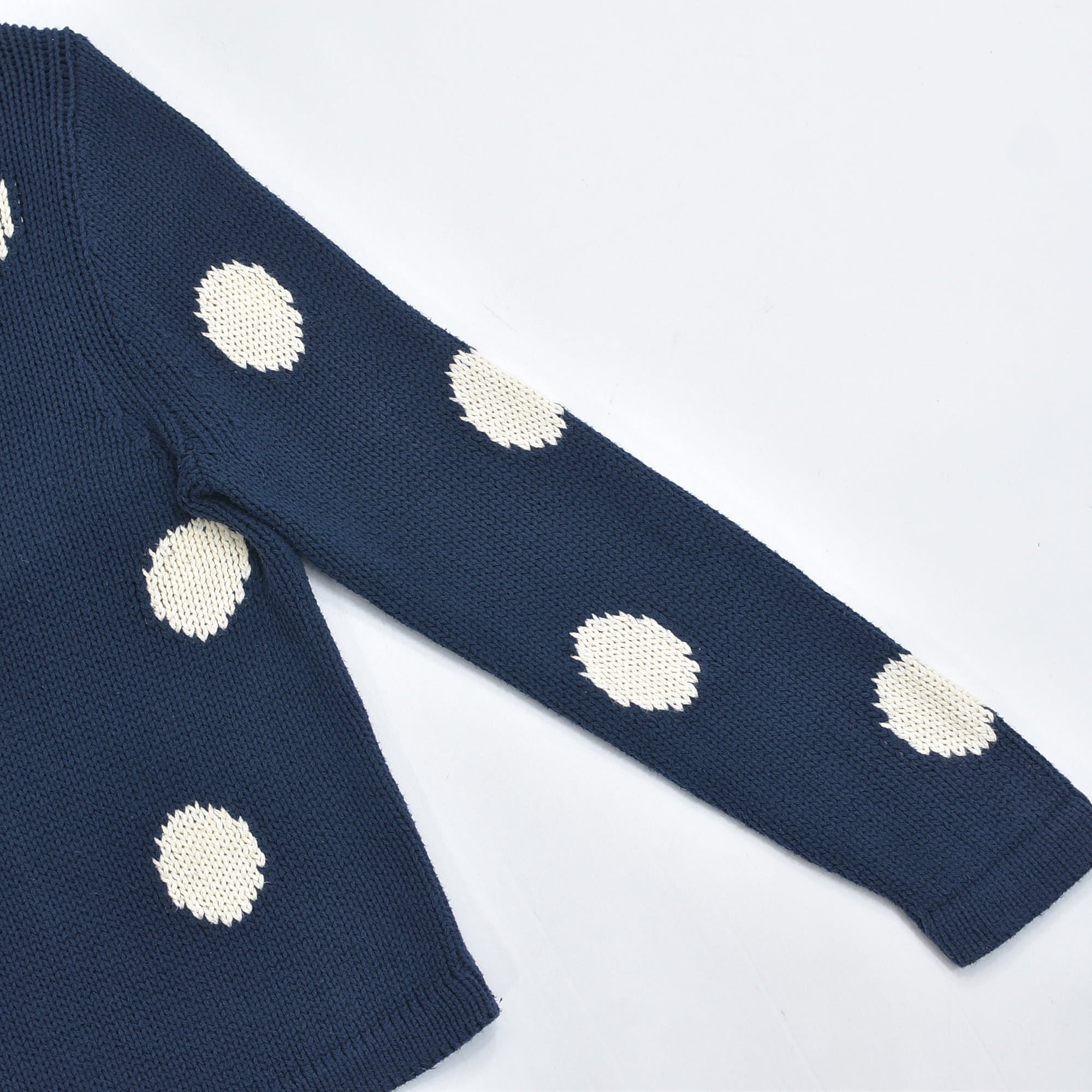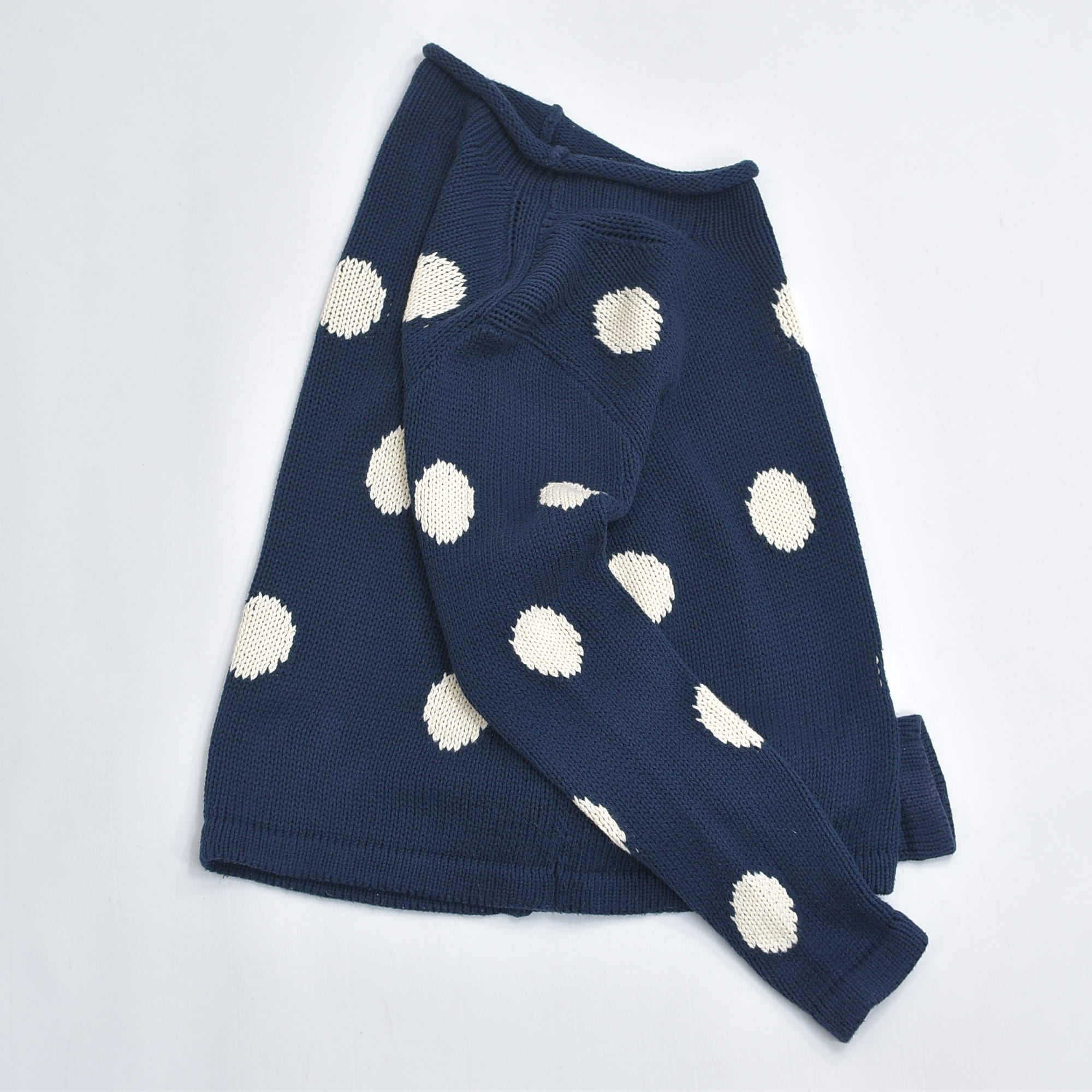 ドット柄と聞くと少し子供っぽく感じるかもしれませんが、この絶妙な配置と落ち着いたネイビーのトーンなら、大人でも品よく纏えます