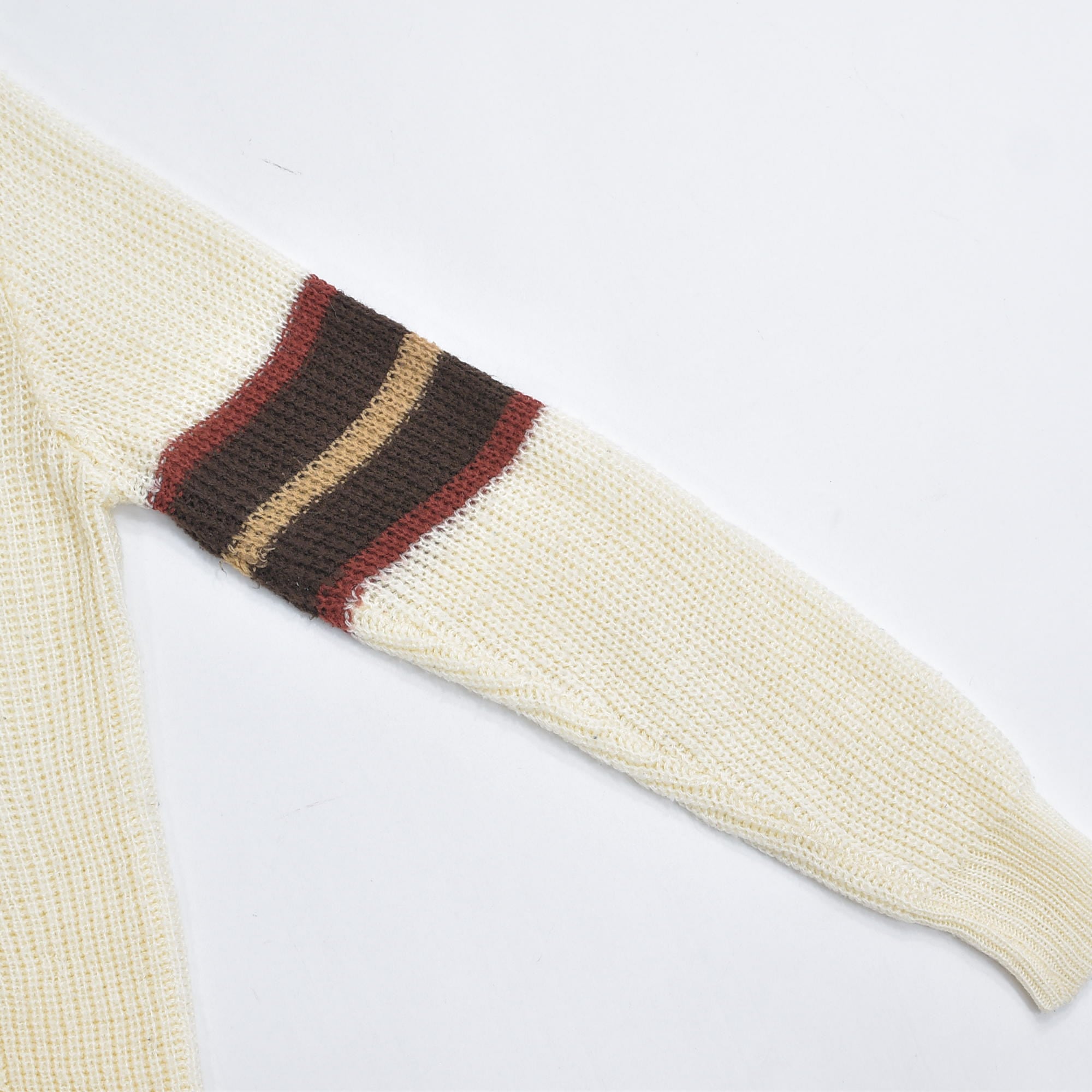 伝統的なスポーツウェアの様式を借りつつ、左袖のボーダーや編み地の切り替えで「ちょっとしたオールドなサーフ感」を仕掛ける