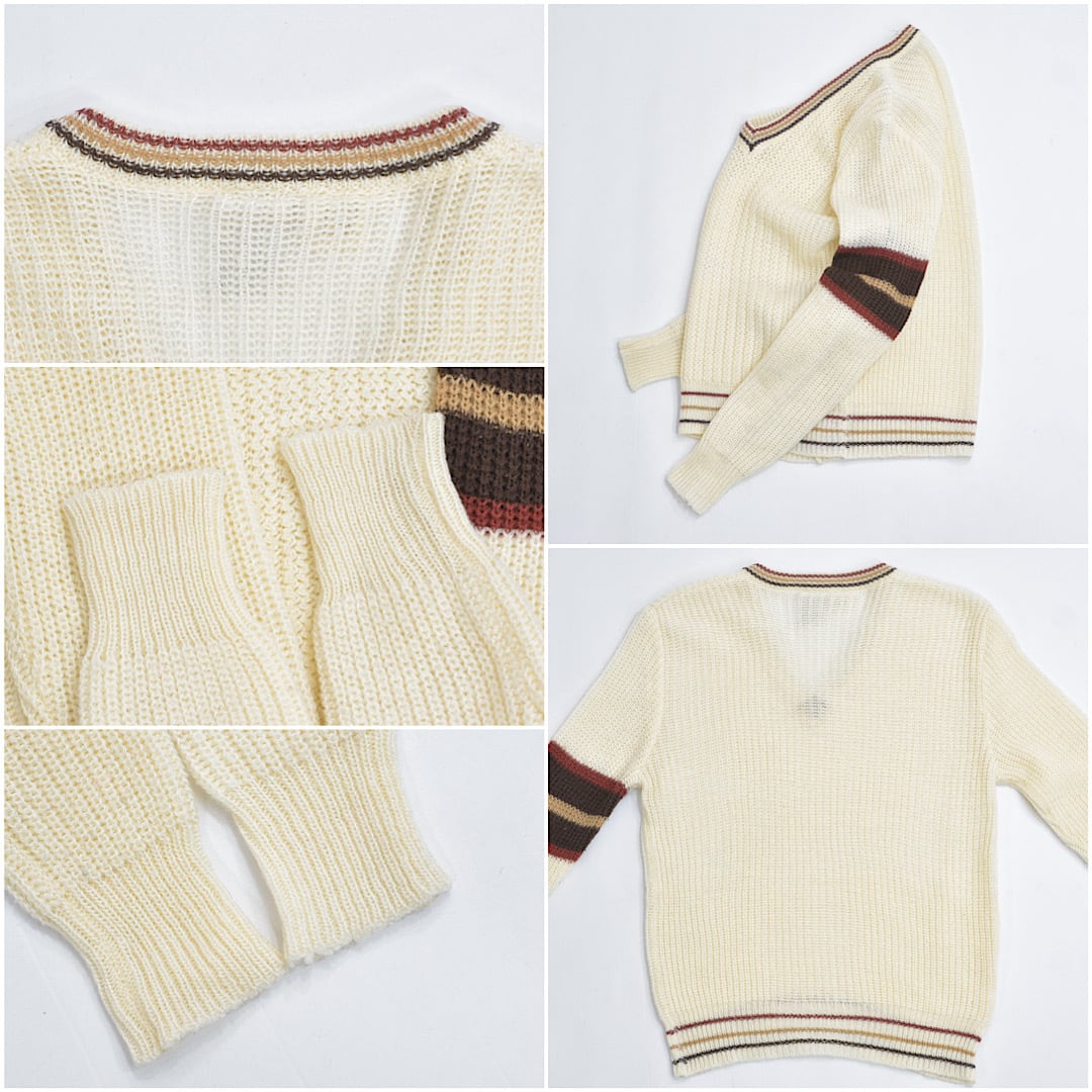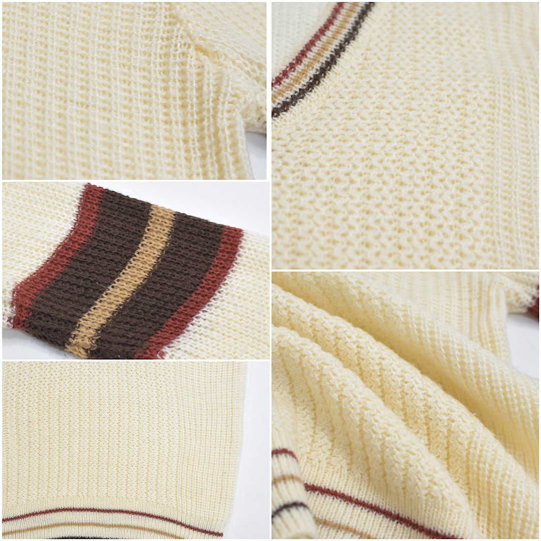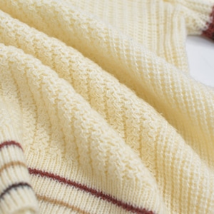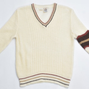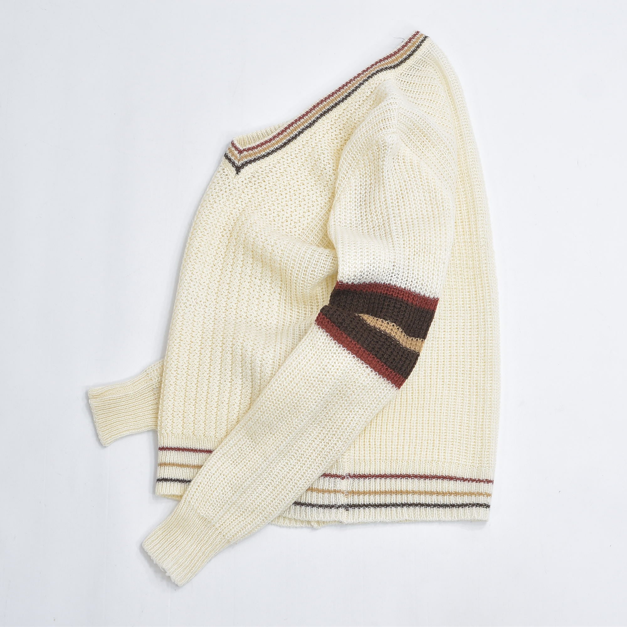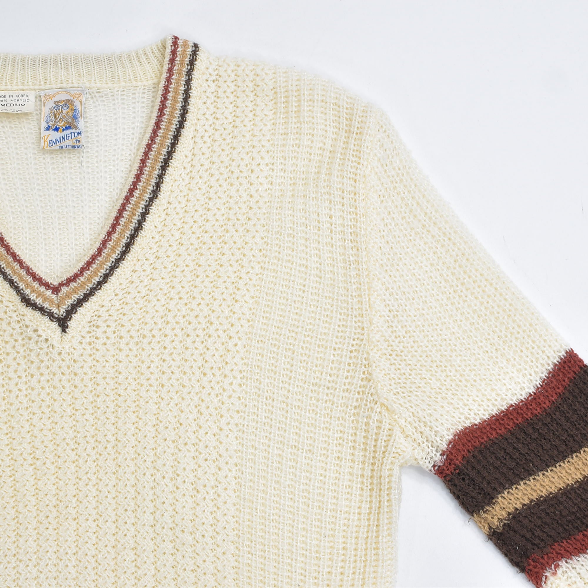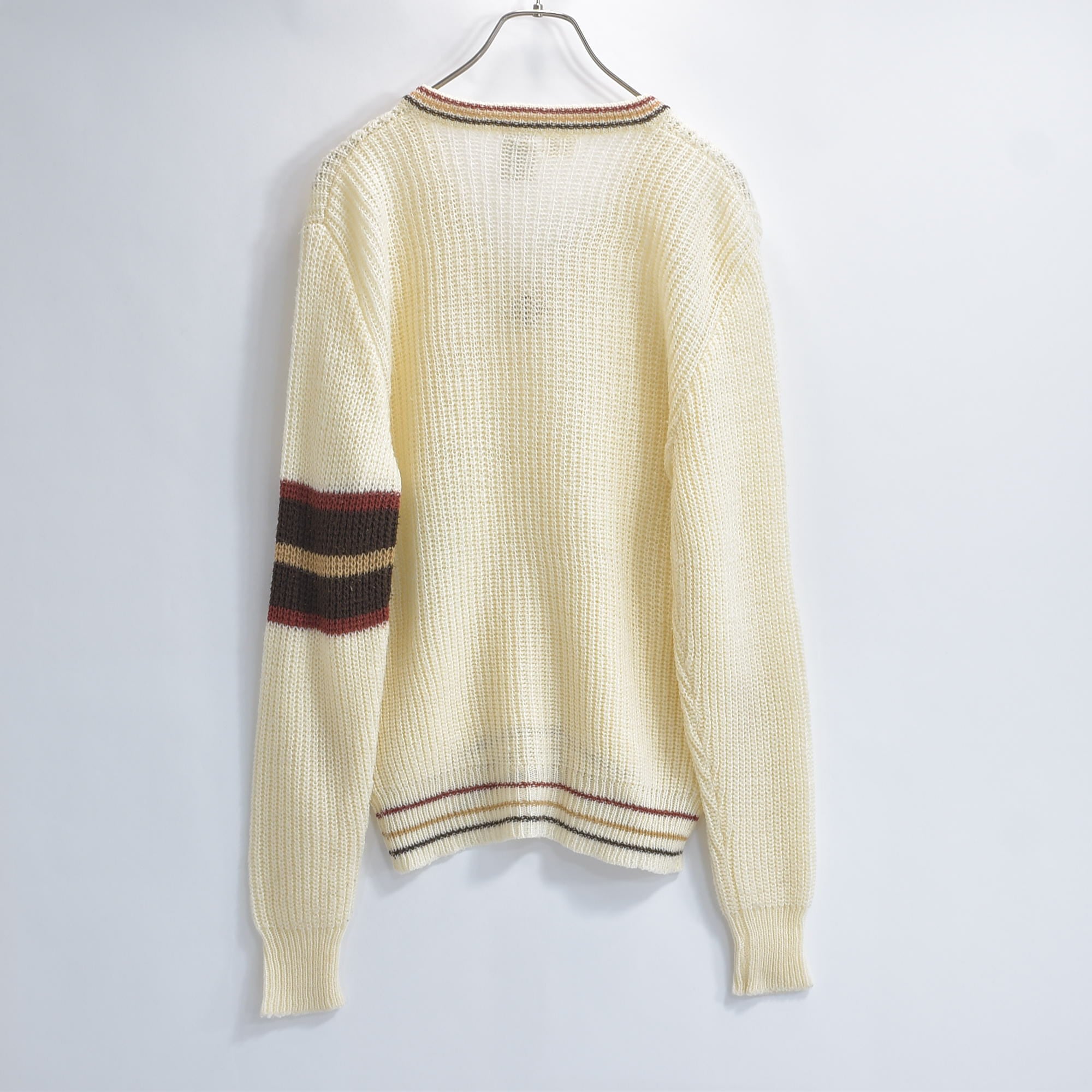70〜80s KENNINGTON ケニントン Vネック アシンメトリー マルチライン デザイン チルデンセーター ニット ヴィンテージ ビンテージ USA アメリカ古着 メンズMサイズ