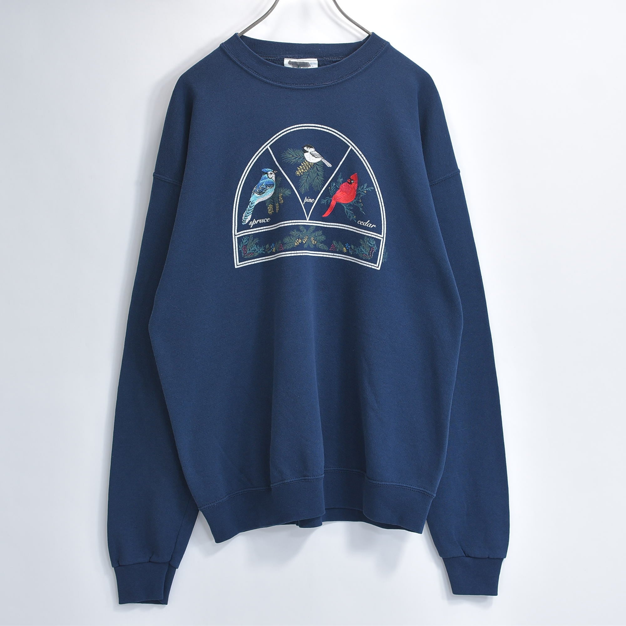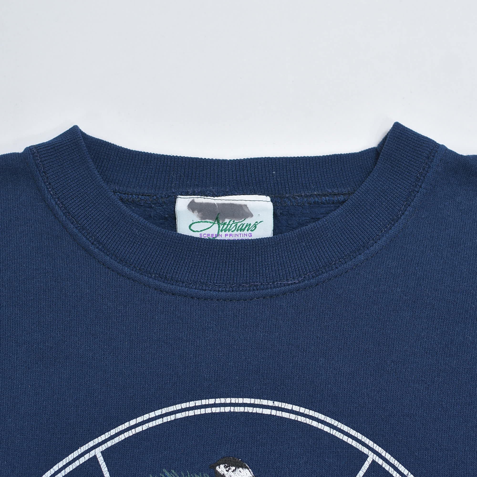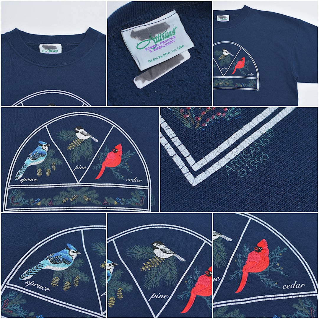 90s USA製 Artisans アーティザンズ アニマル 鳥 バード プリント 刺繍 デザイン グラフィック スウェット トレーナー ヴィンテージ ビンテージ アメリカ古着 メンズL〜相当