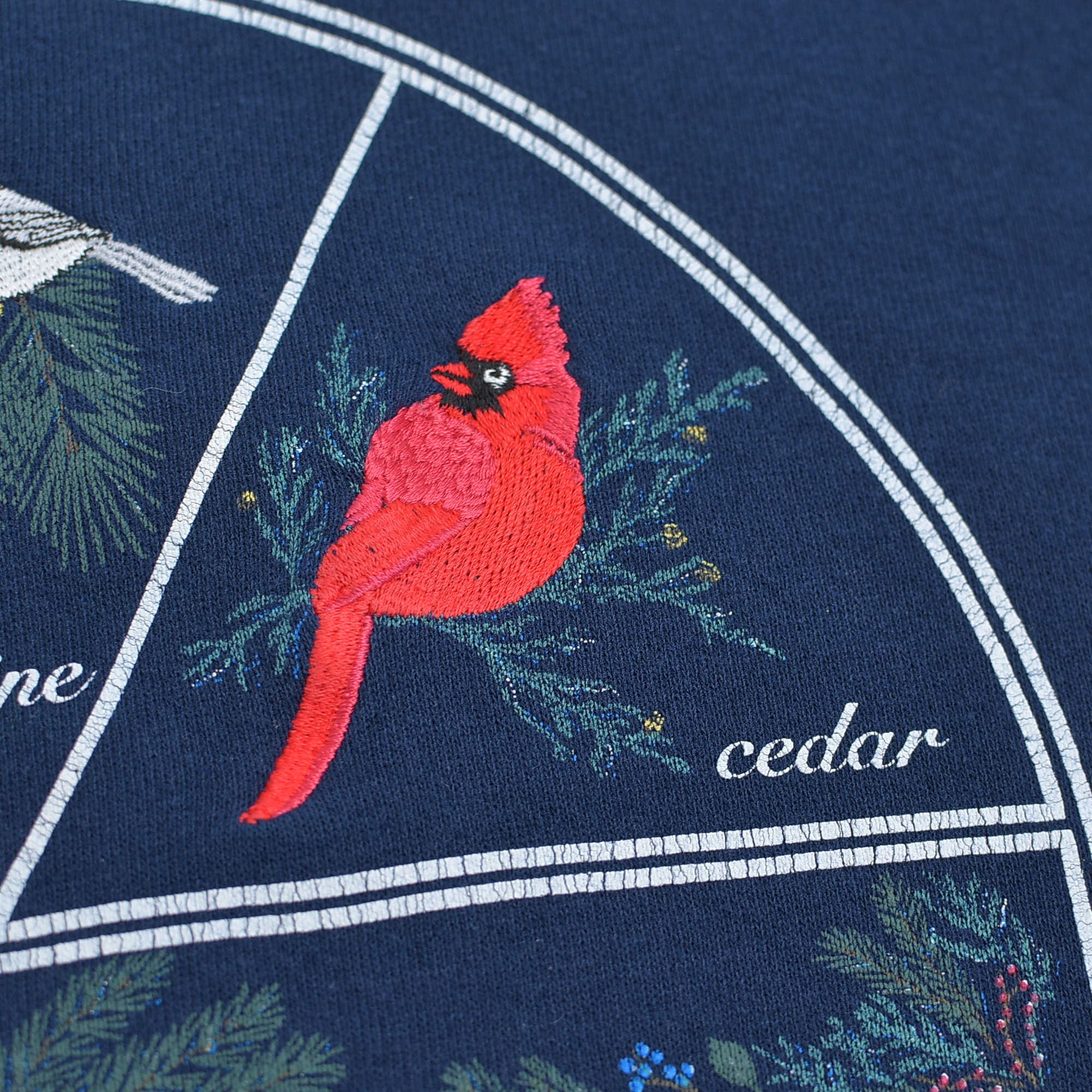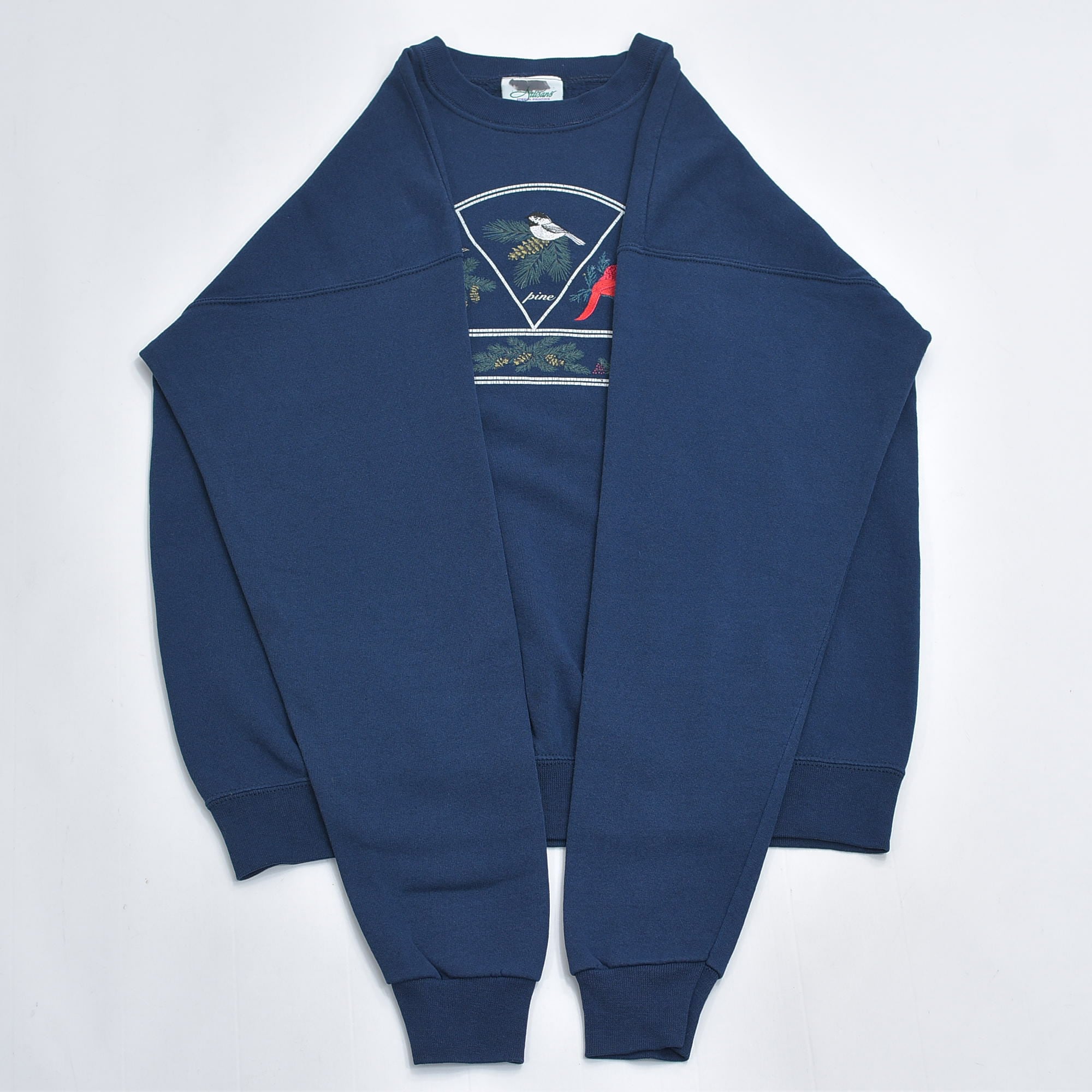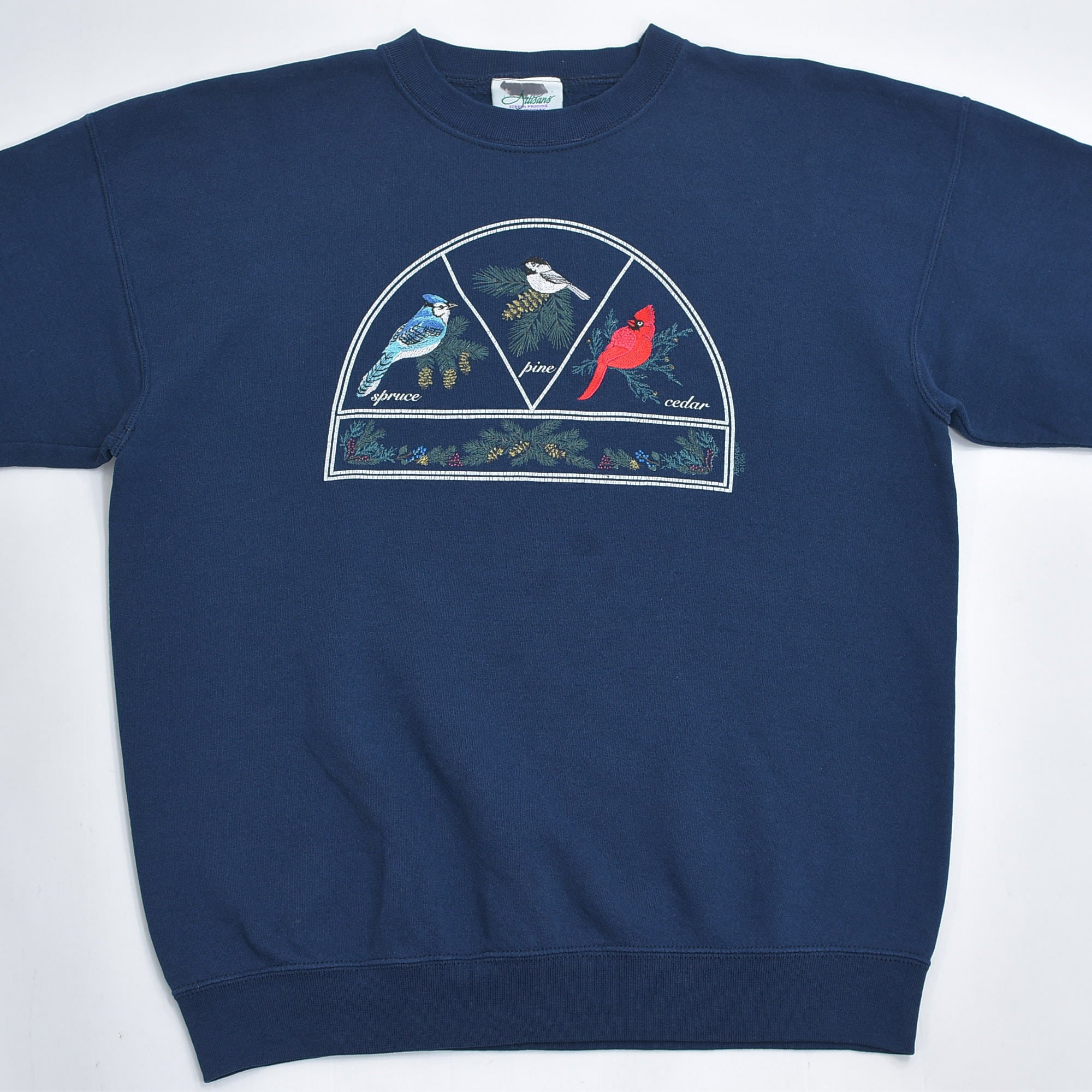90s USA製 Artisans アーティザンズ アニマル 鳥 バード プリント 刺繍 デザイン グラフィック スウェット トレーナー ヴィンテージ ビンテージ アメリカ古着 メンズL〜相当