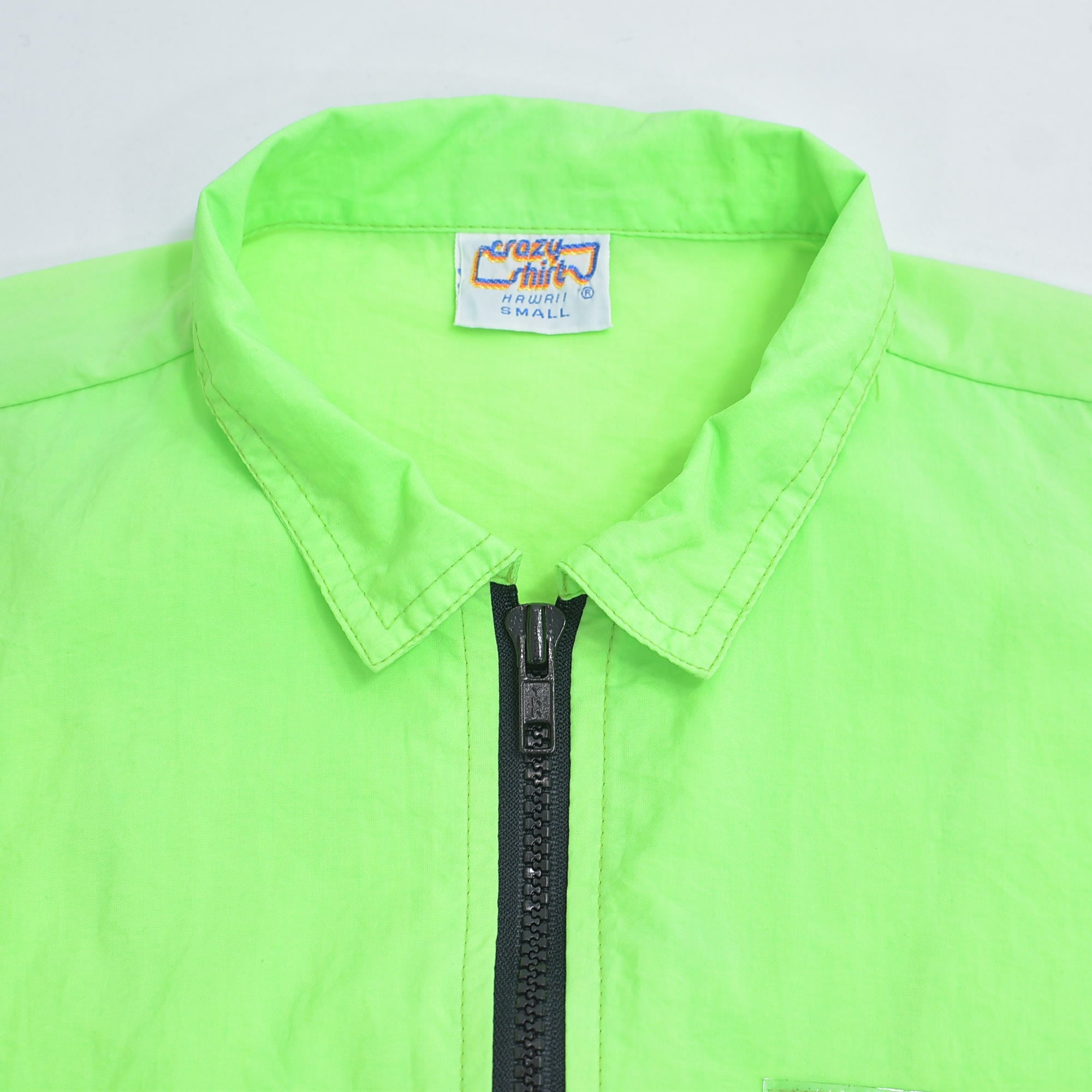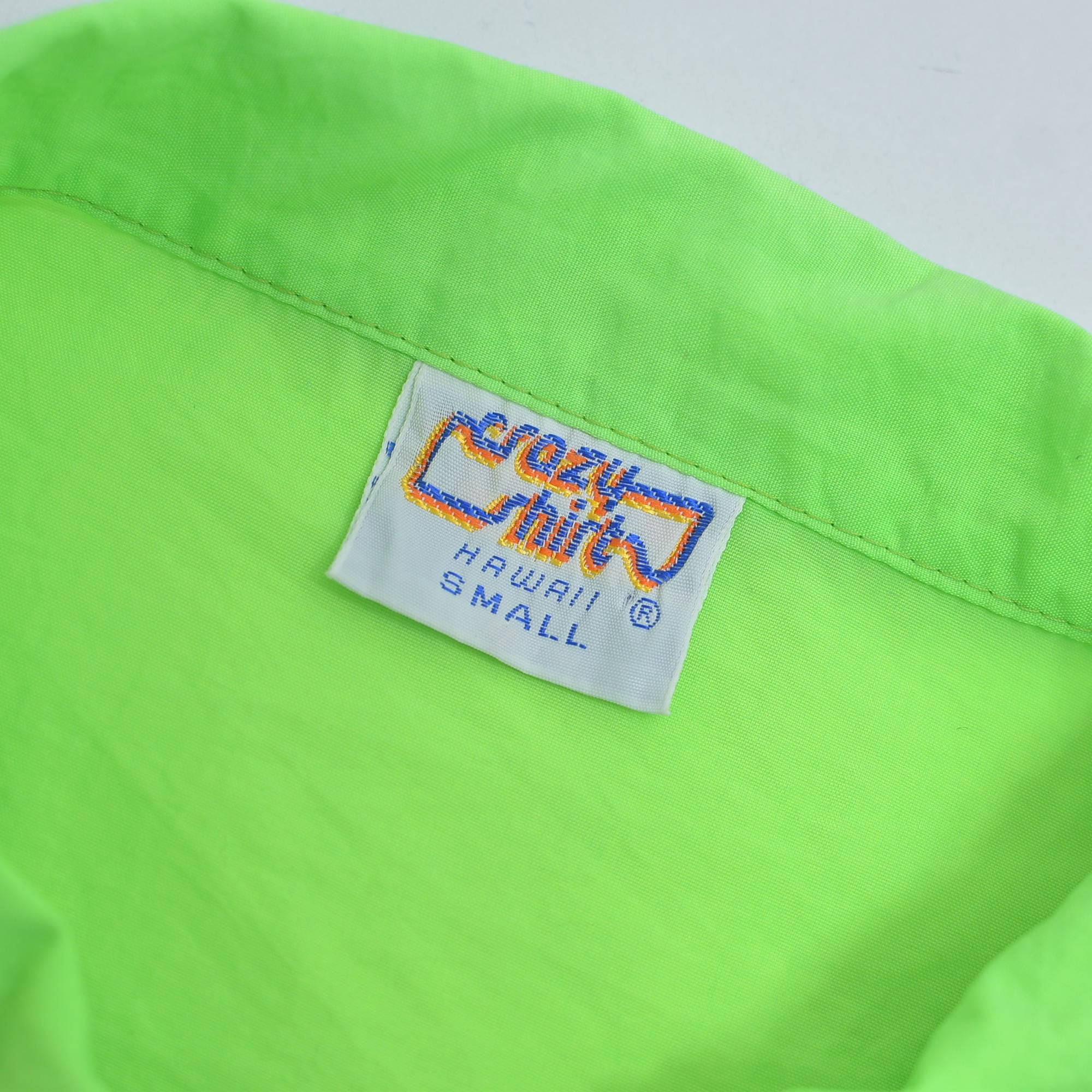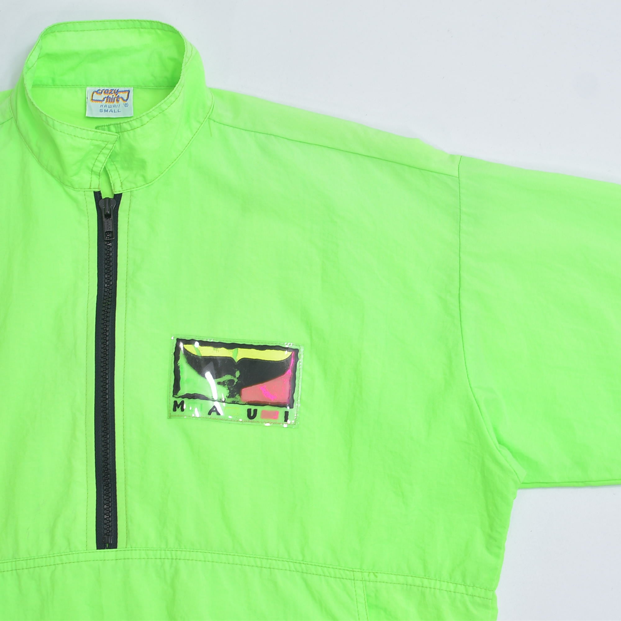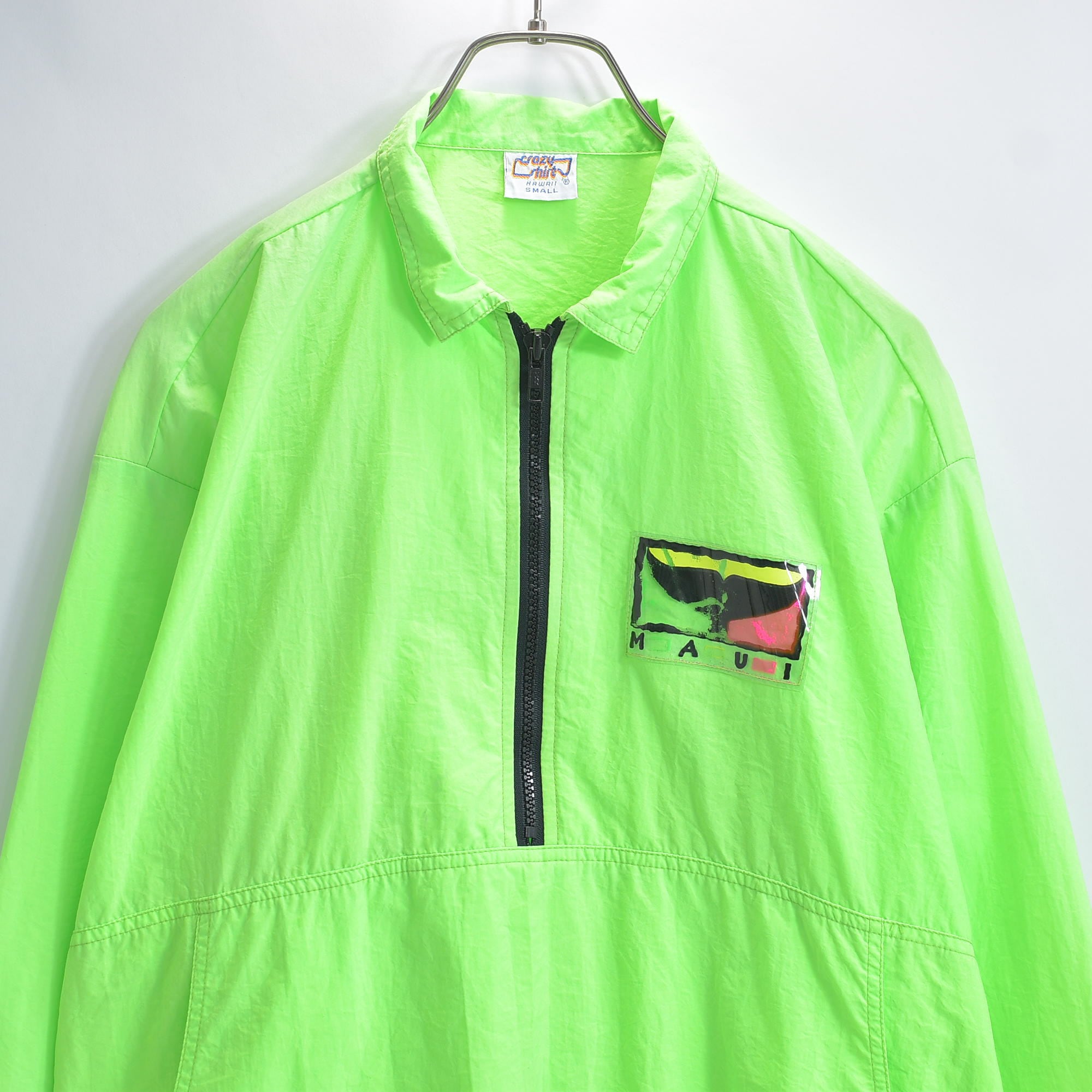 90s USA製 Crazy Shirts クレイジーシャツ ナイロン アノラックパーカー ハワイ MAUI クジラ パッチ アウター ネオングリーン ヴィンテージ ビンテージ アメリカ古着 メンズSサイズ