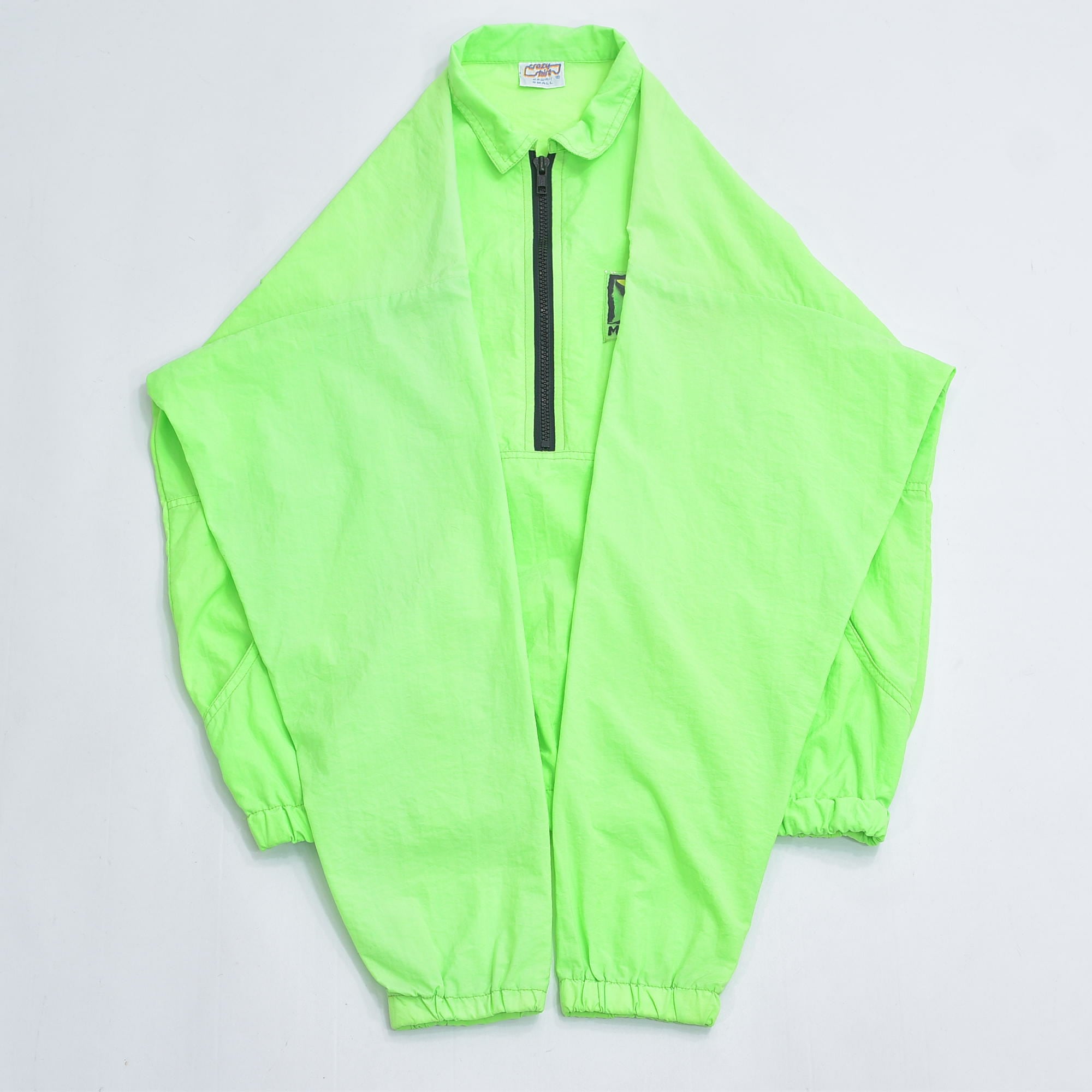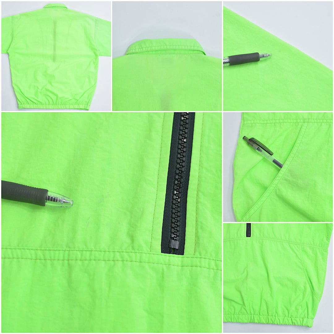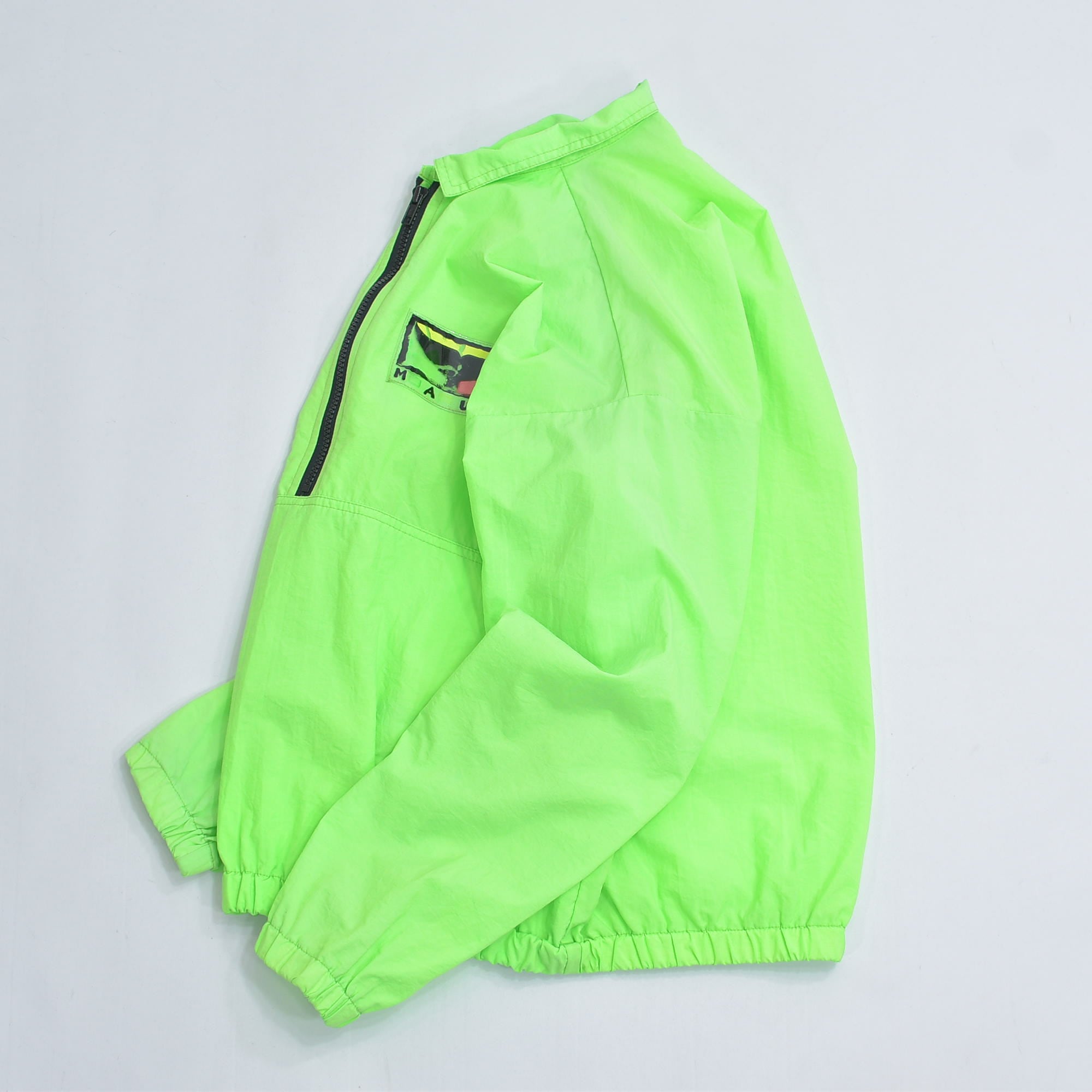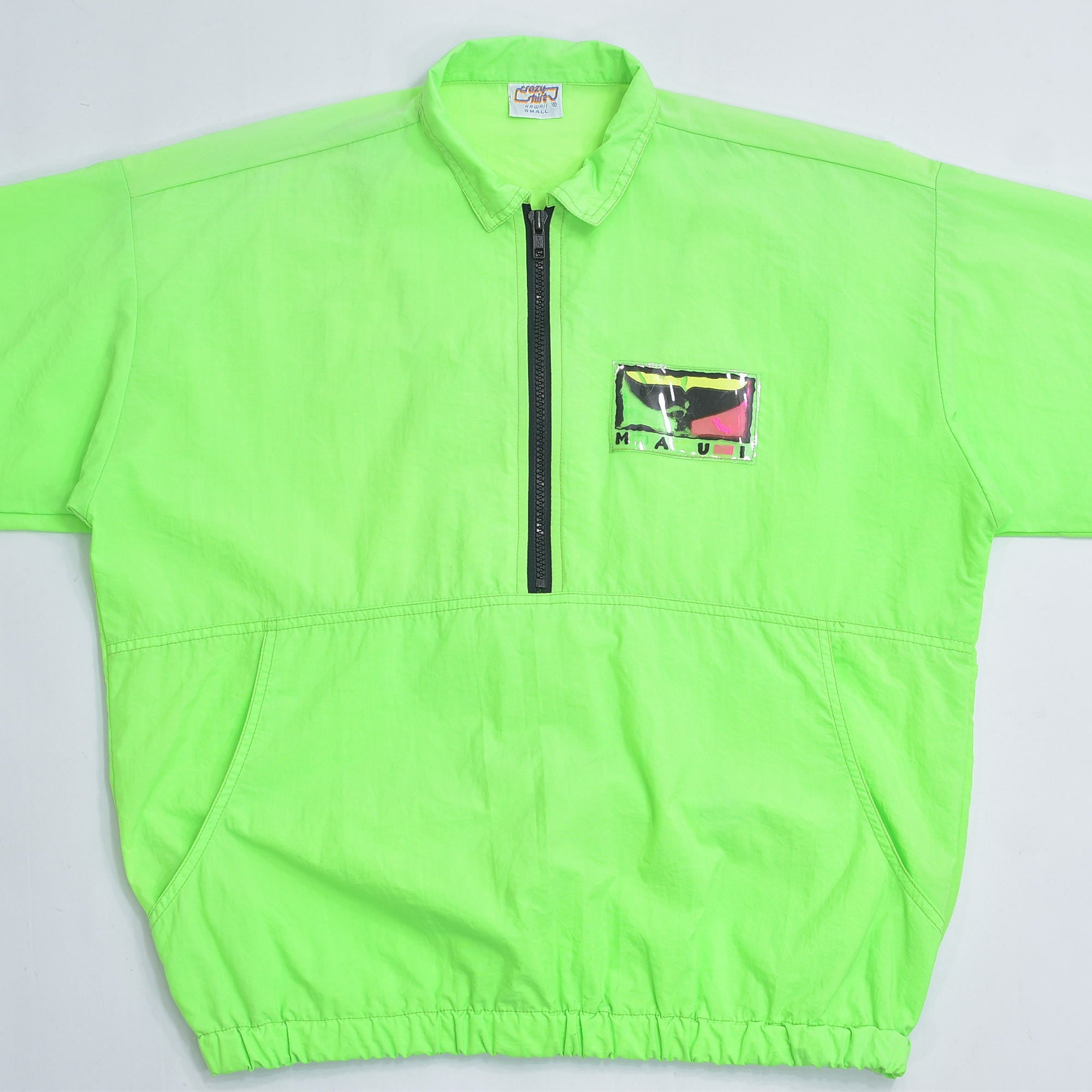 90s USA製 Crazy Shirts クレイジーシャツ ナイロン アノラックパーカー ハワイ MAUI クジラ パッチ アウター ネオングリーン ヴィンテージ ビンテージ アメリカ古着 メンズSサイズ